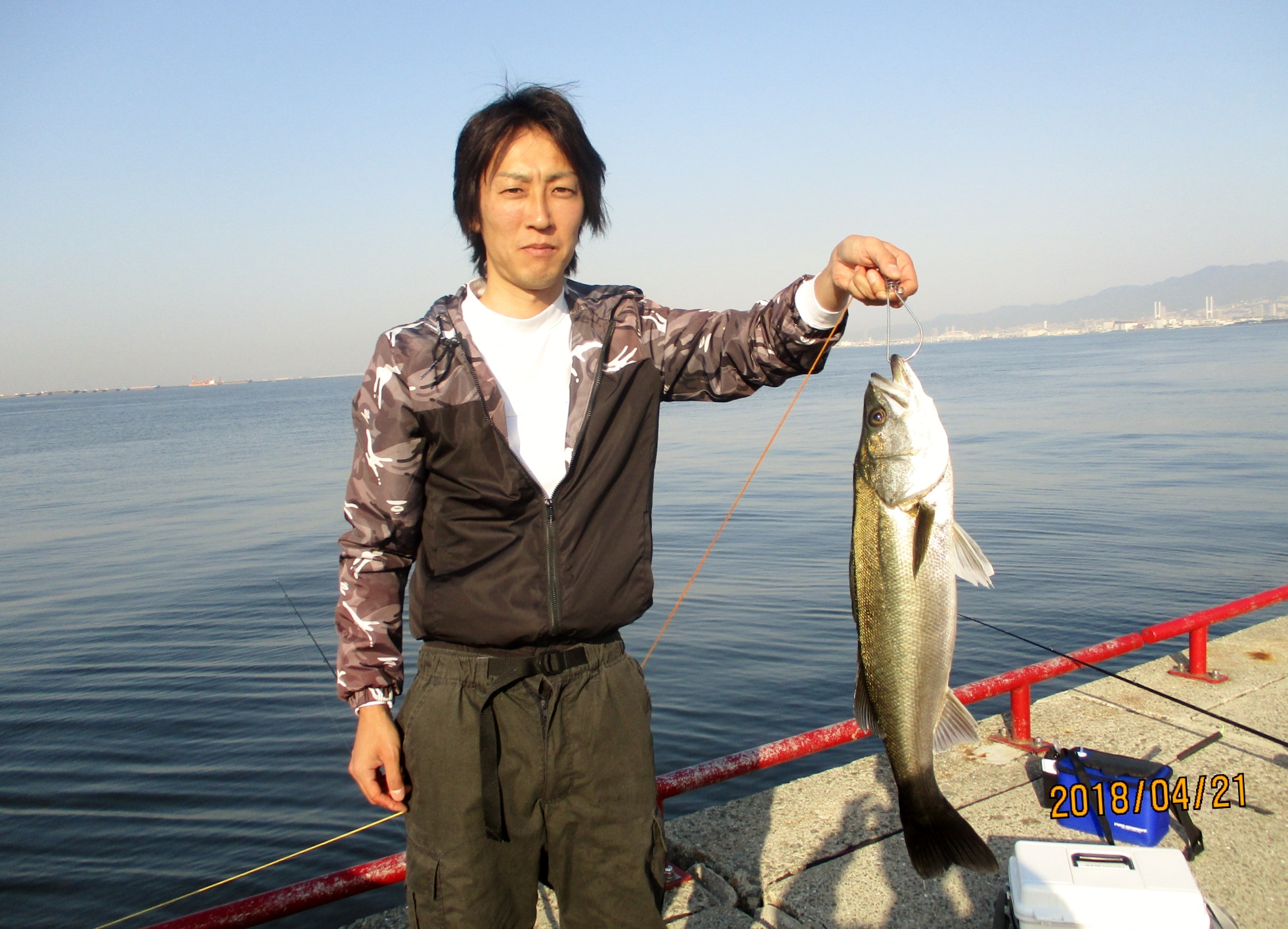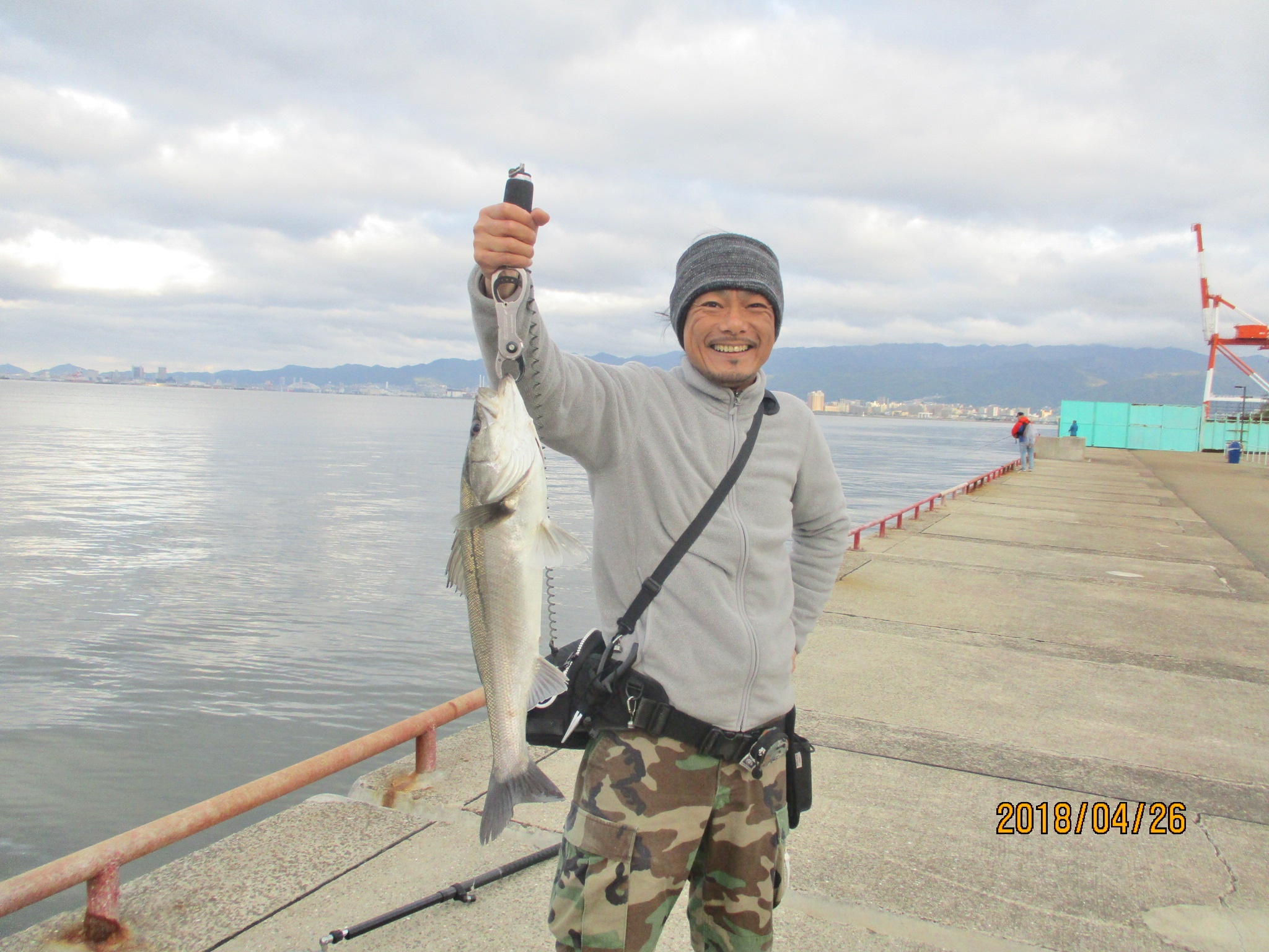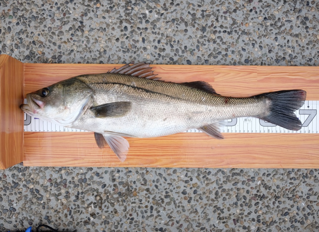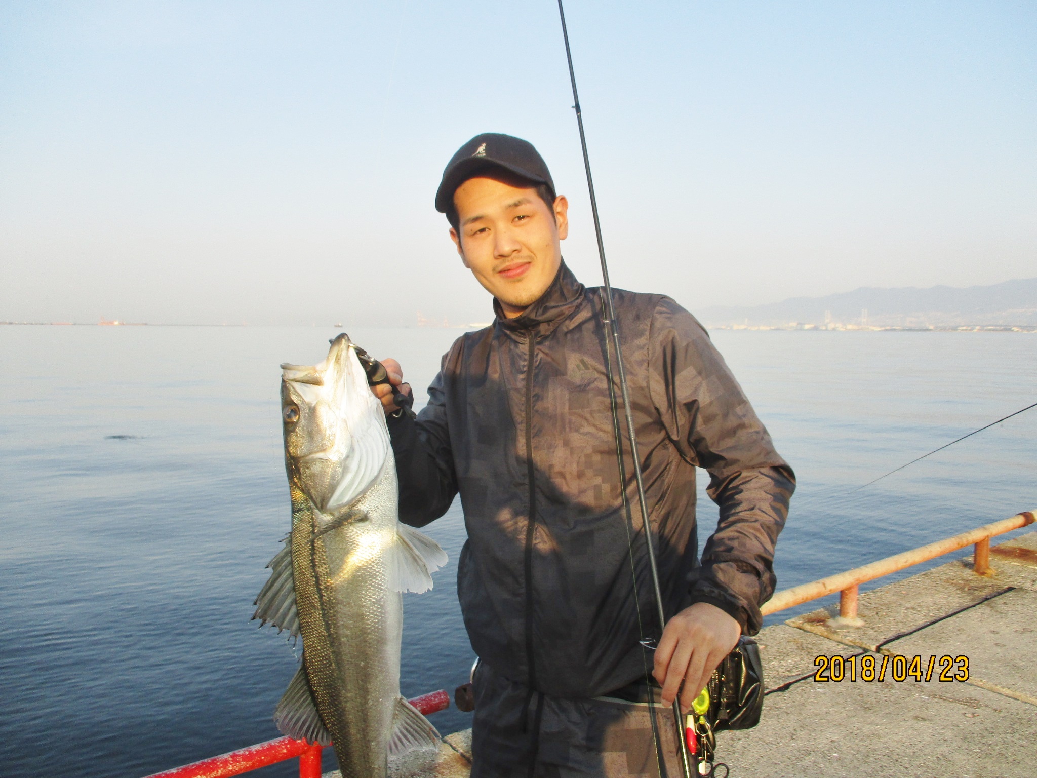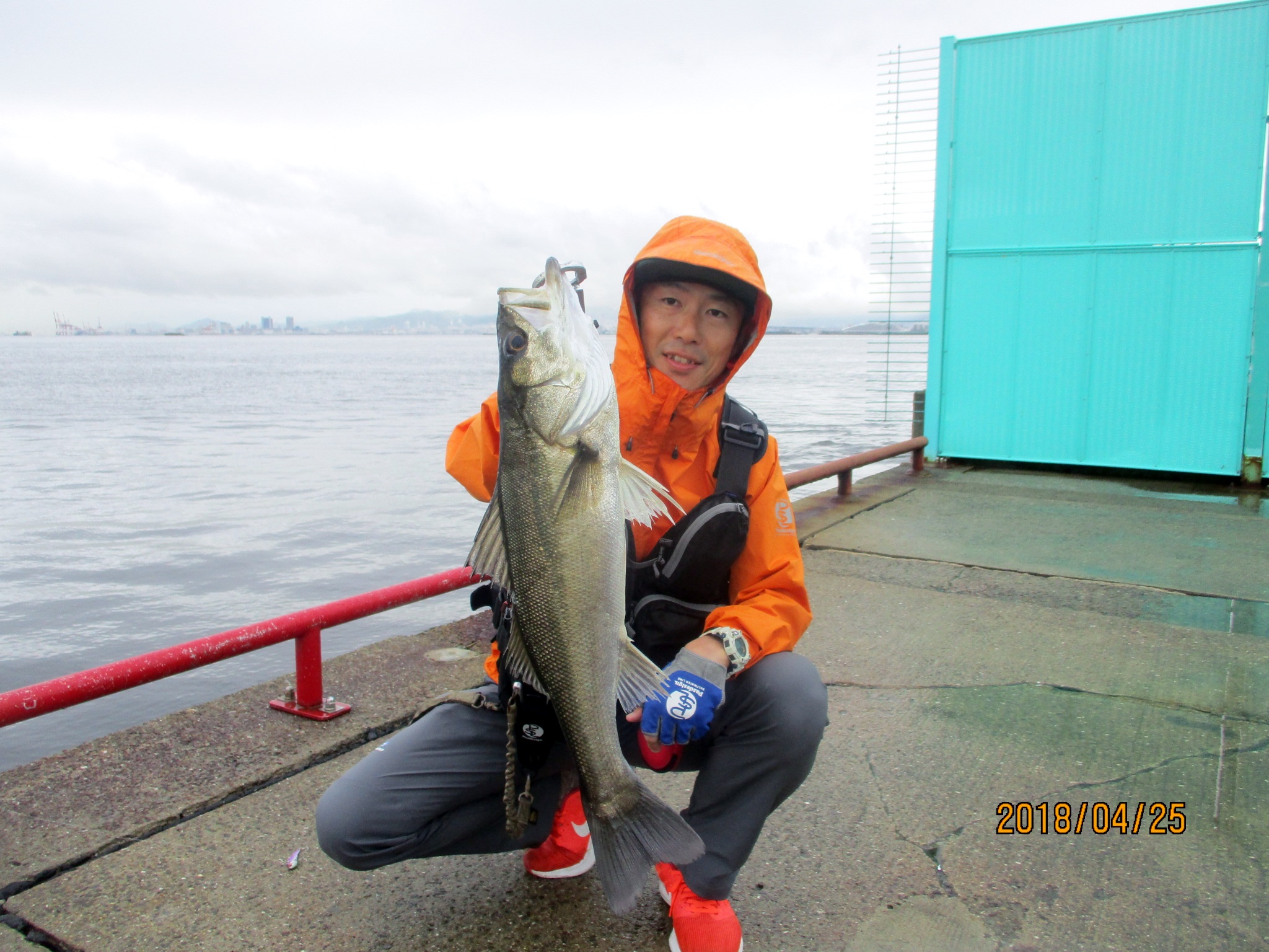 神戸の高原さん、1投目に65,5cmのスズキを、その後、50cmを追加、月間大物賞スズキの部暫定一位です。