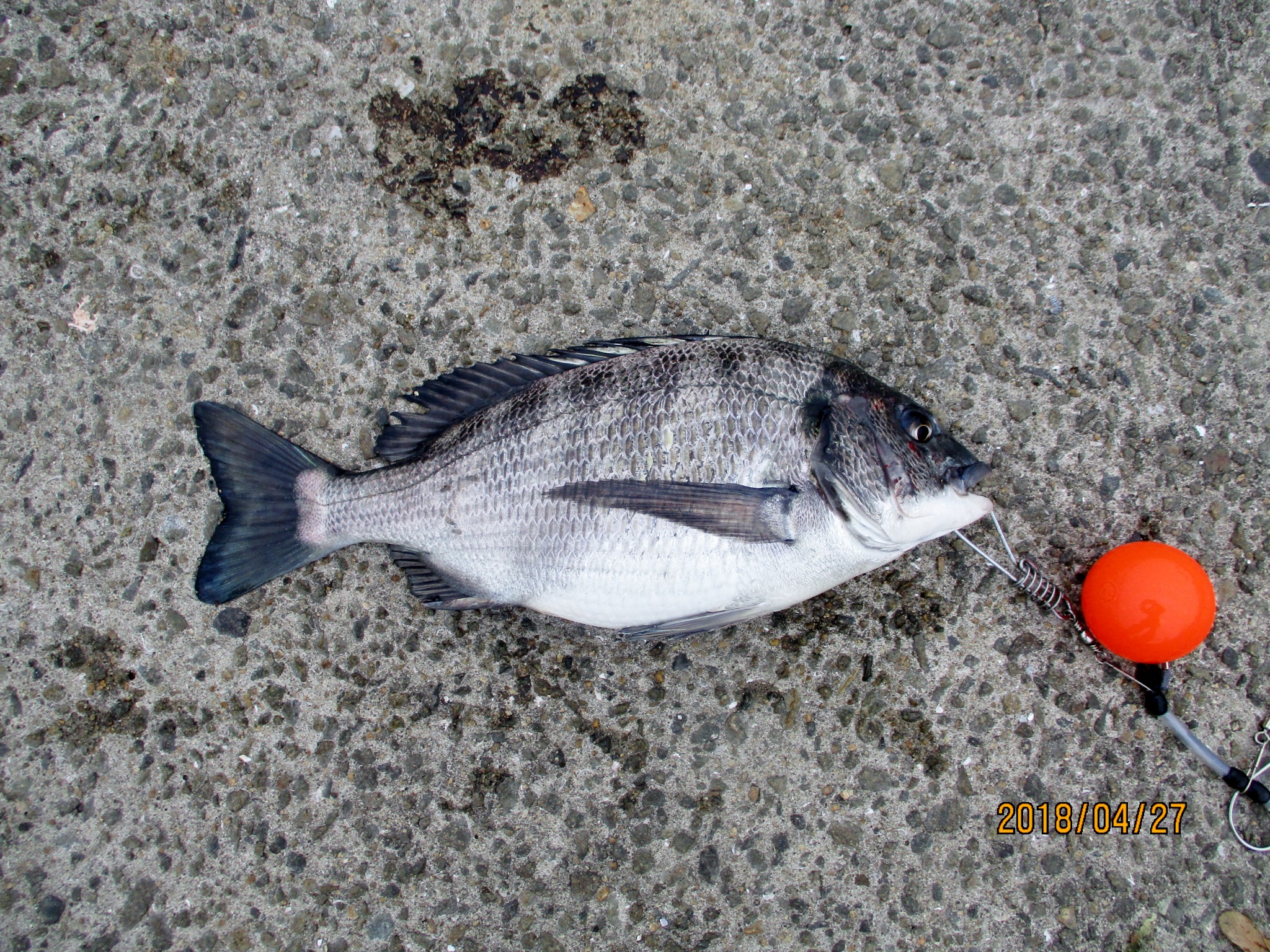 午後6時半、東端、餌青イソメウキ釣りで40.5㎝と32㎝のチヌまた18㎝前後ガシラ2匹あがりました。 -