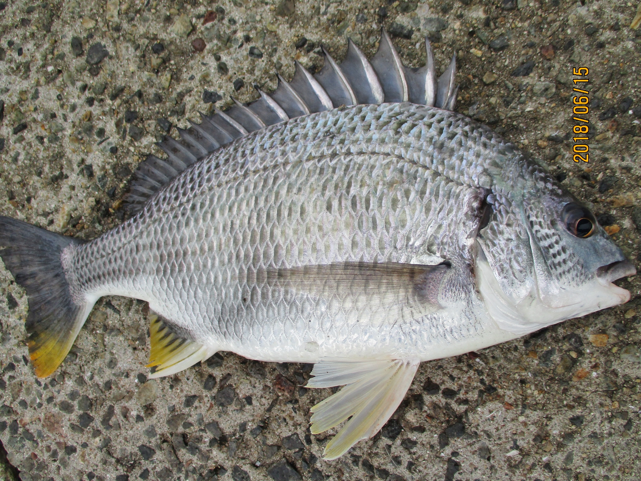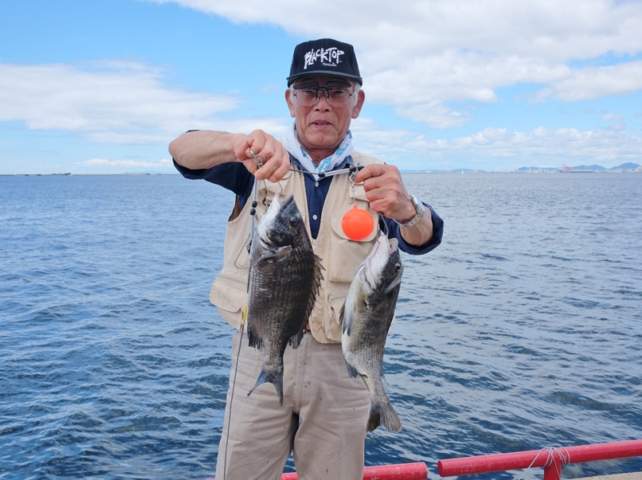 午前9時までに紀州釣り(団子)にてチヌ38~40㎝2匹の釣果。