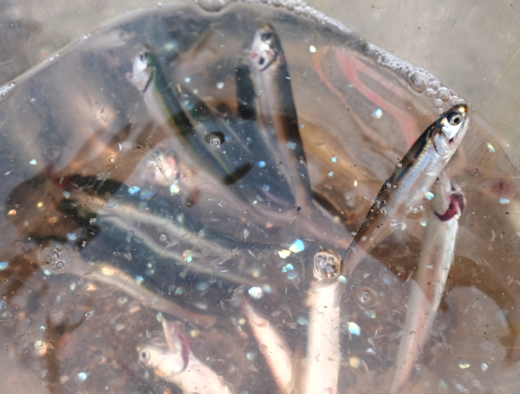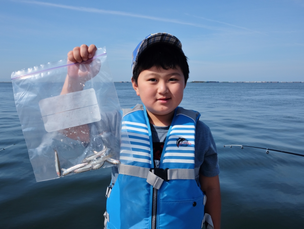 それまでの釣果は、4人でカタクチイワシ35匹でした。 -