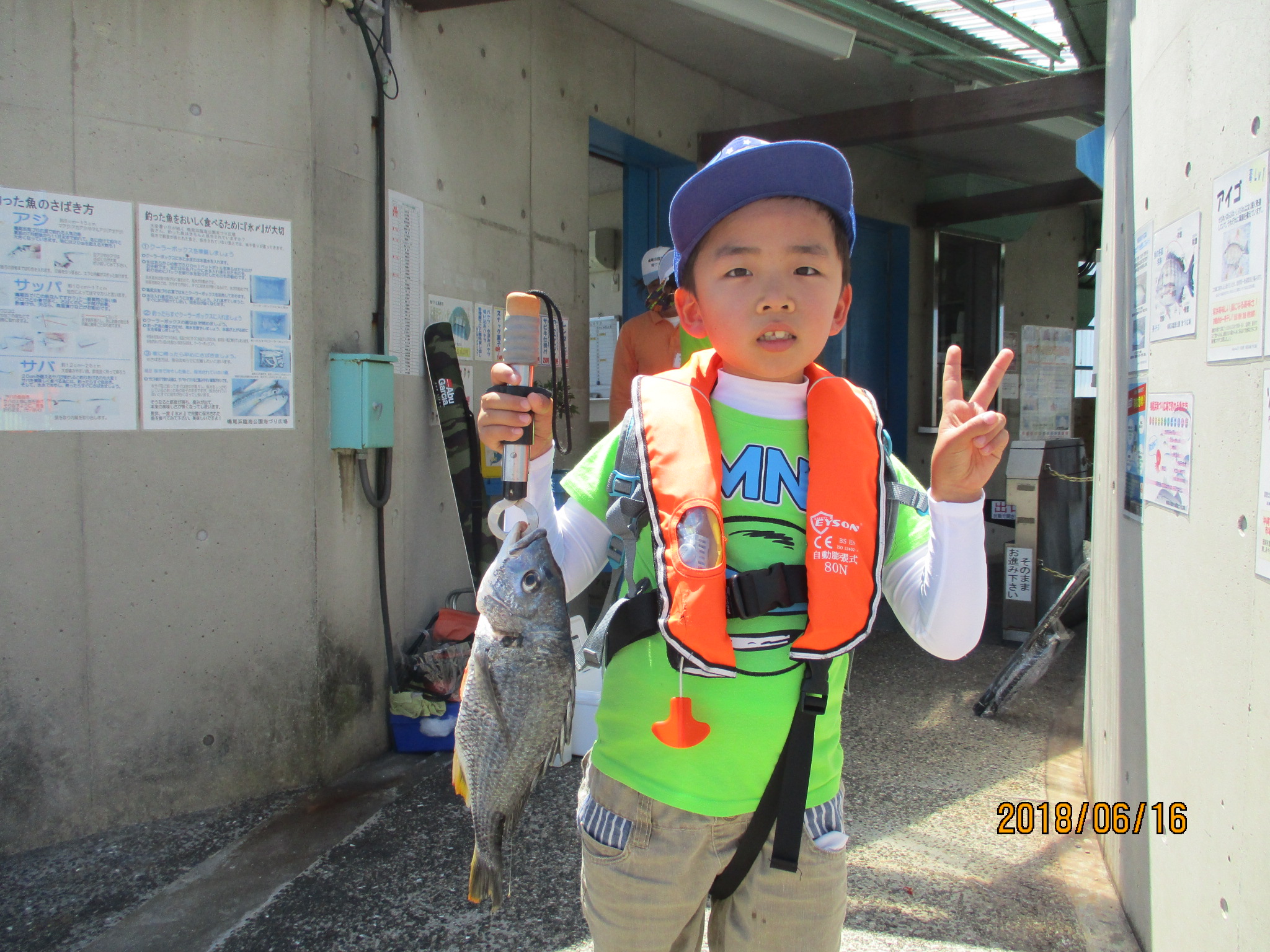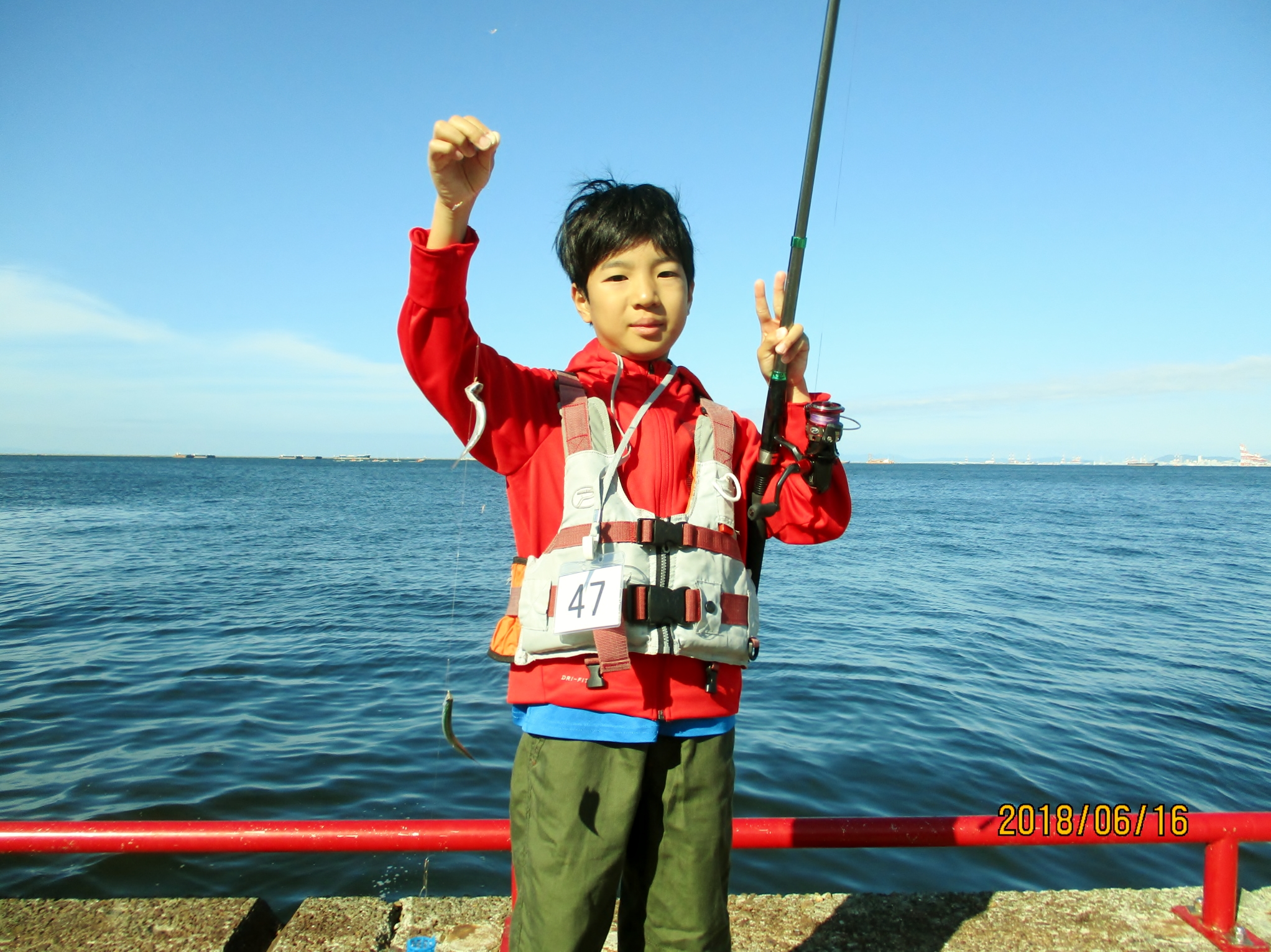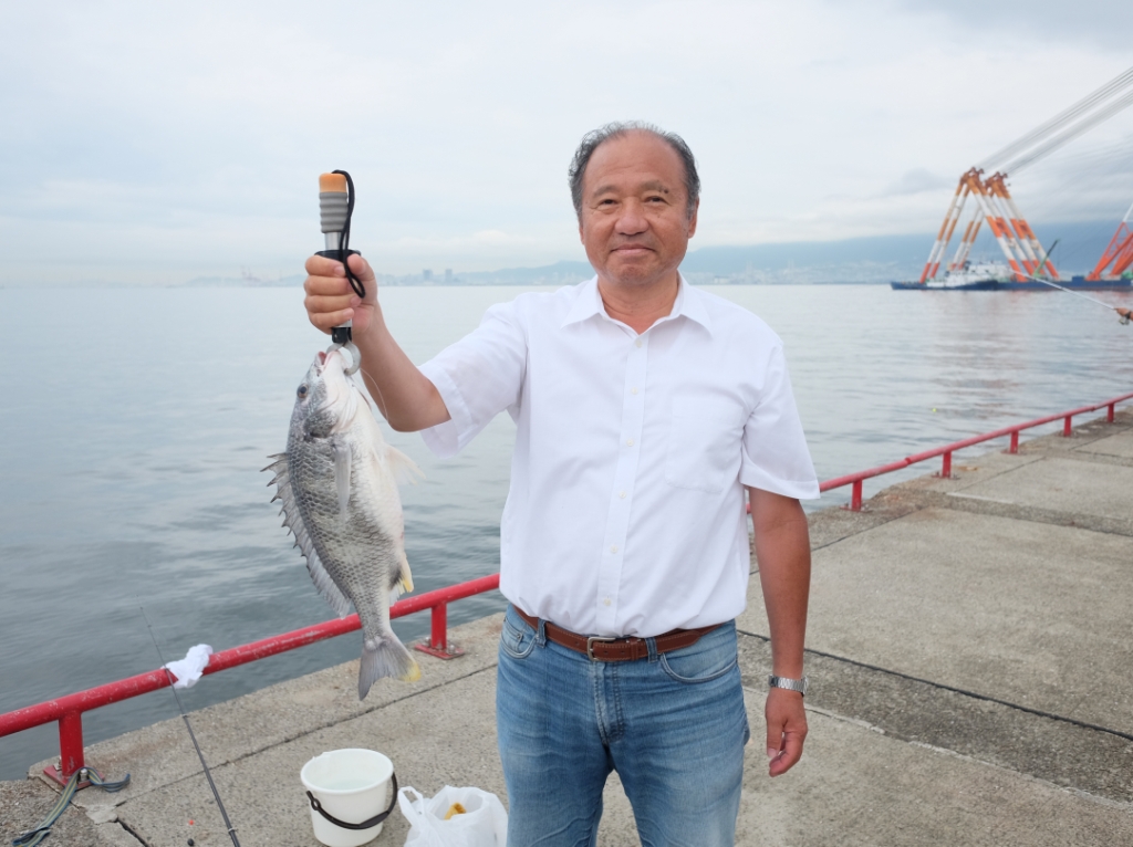 今日は、サビキ釣り大会を開催しています。昨日までのサビキ釣リの釣果は、ほとんど上がっていませんでしたが、今日は朝からカタクチイワシが多い人で50匹と釣れています。西側で、フカセ釣りの方が、キビレ38.5cm・44.2cmを釣られていました。サビキ釣りで33.2cm(月間大物賞その他部門)コノシロガ釣れました。西側エビ撒きでチヌ40cm、東側フカセ釣りチヌ38cmです。