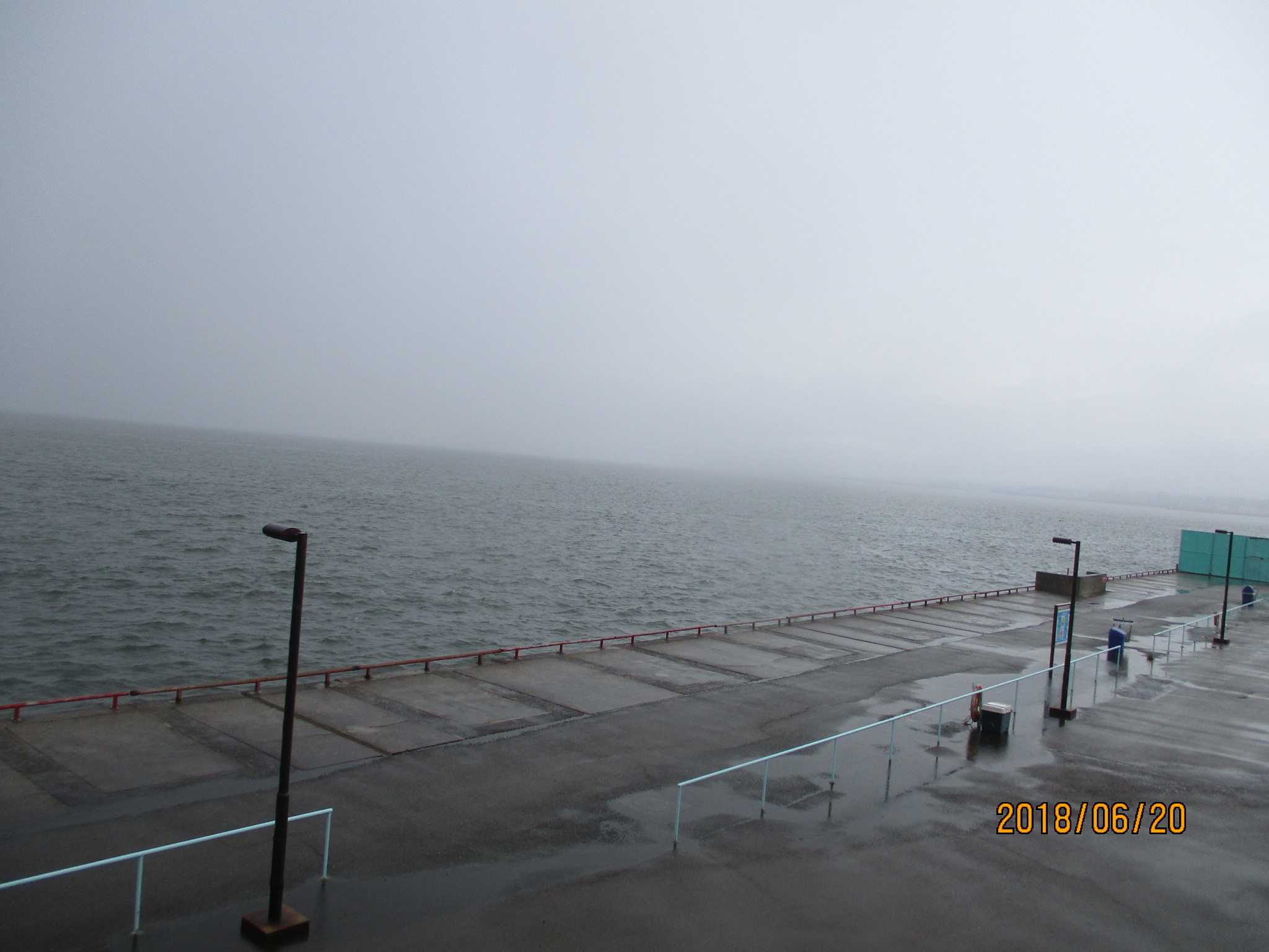 5時50分現在、北よりの風2m、さざ波です。