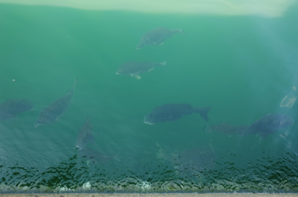 人影に気付くと逃げてゆきますが、開園後来場者の影に馴れたのか悠々と泳いでいるチヌも。見える魚は釣れないとは言うもののワンチャンス狙いたいものです。