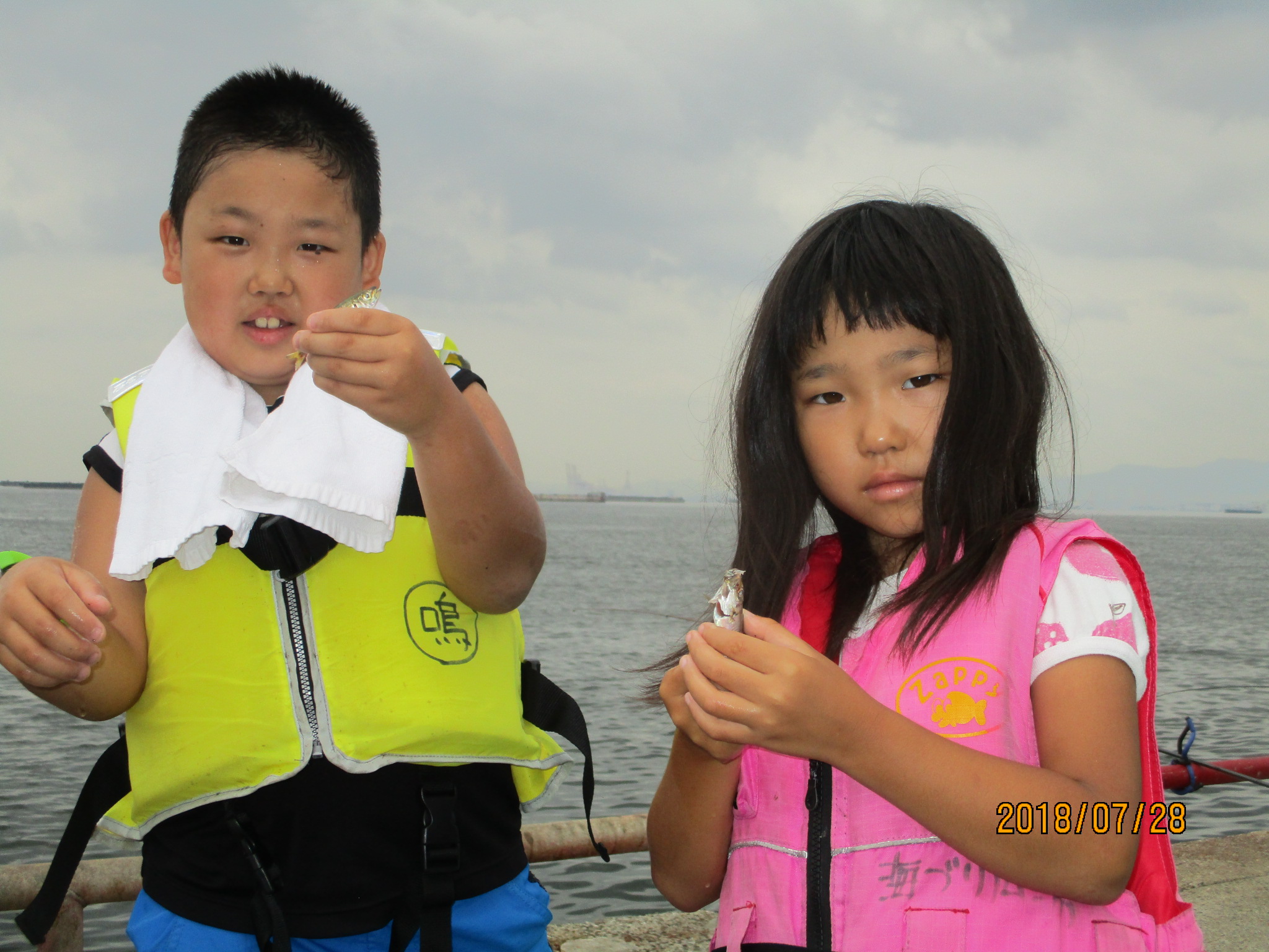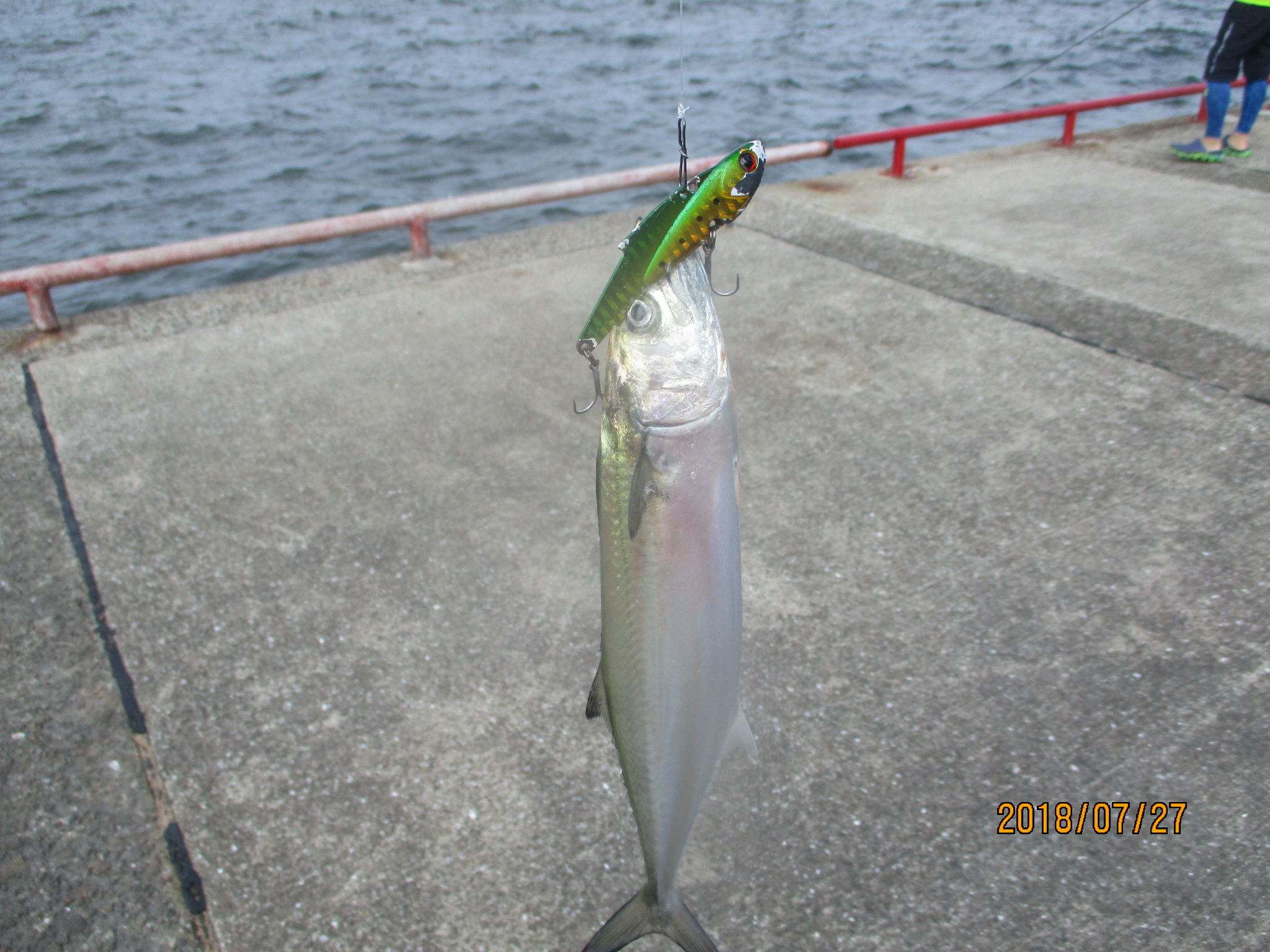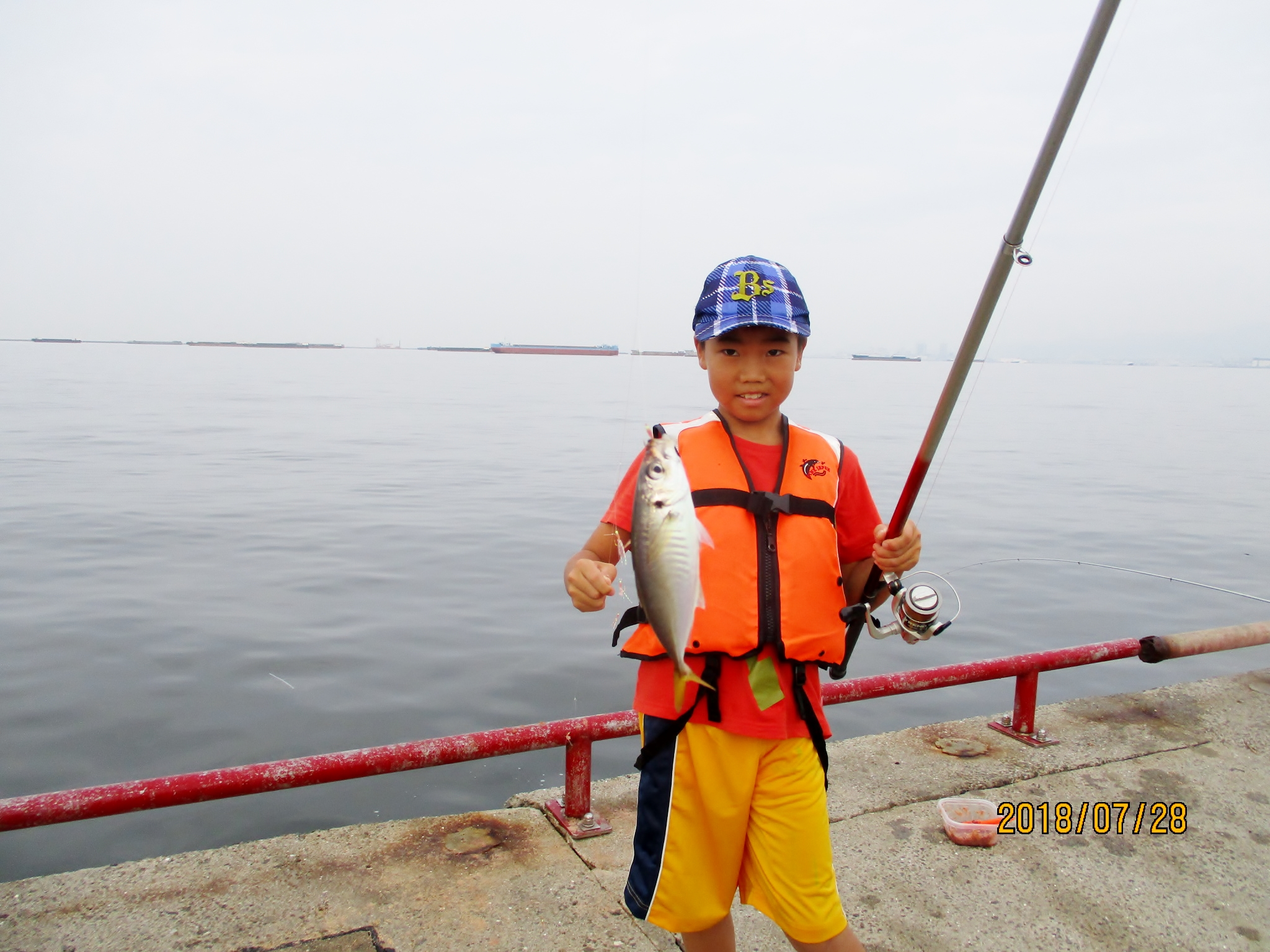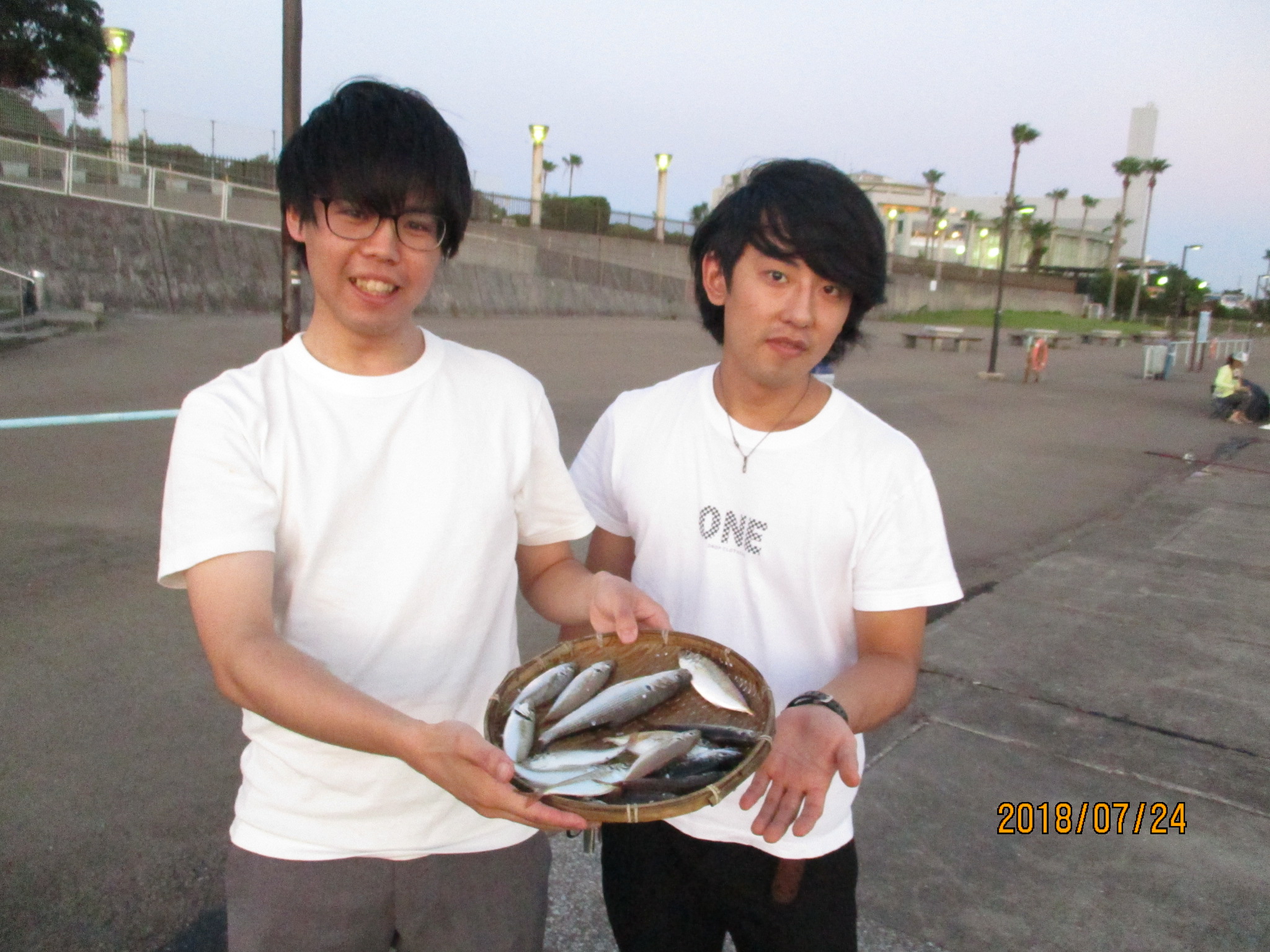 連日の猛暑の中、今朝は曇っていて気温も低めです。台風の影響なのでしょうか・・・?釣果の方も調子が良く、小アジがサビキ針に連で上がっていました。東側エビ撒き釣りで、セイゴ(小)・小チヌが先に食いついて来るみたいです。