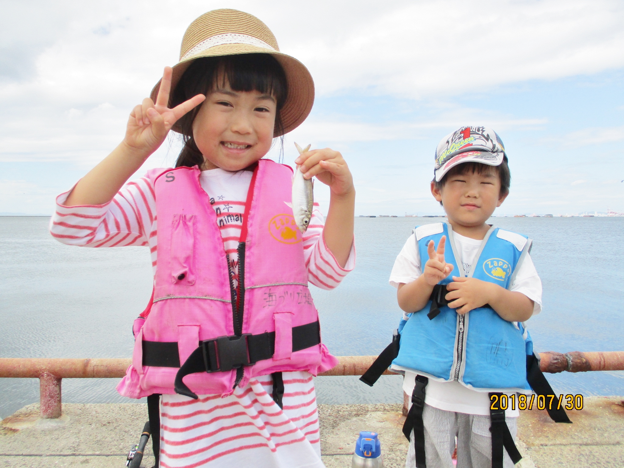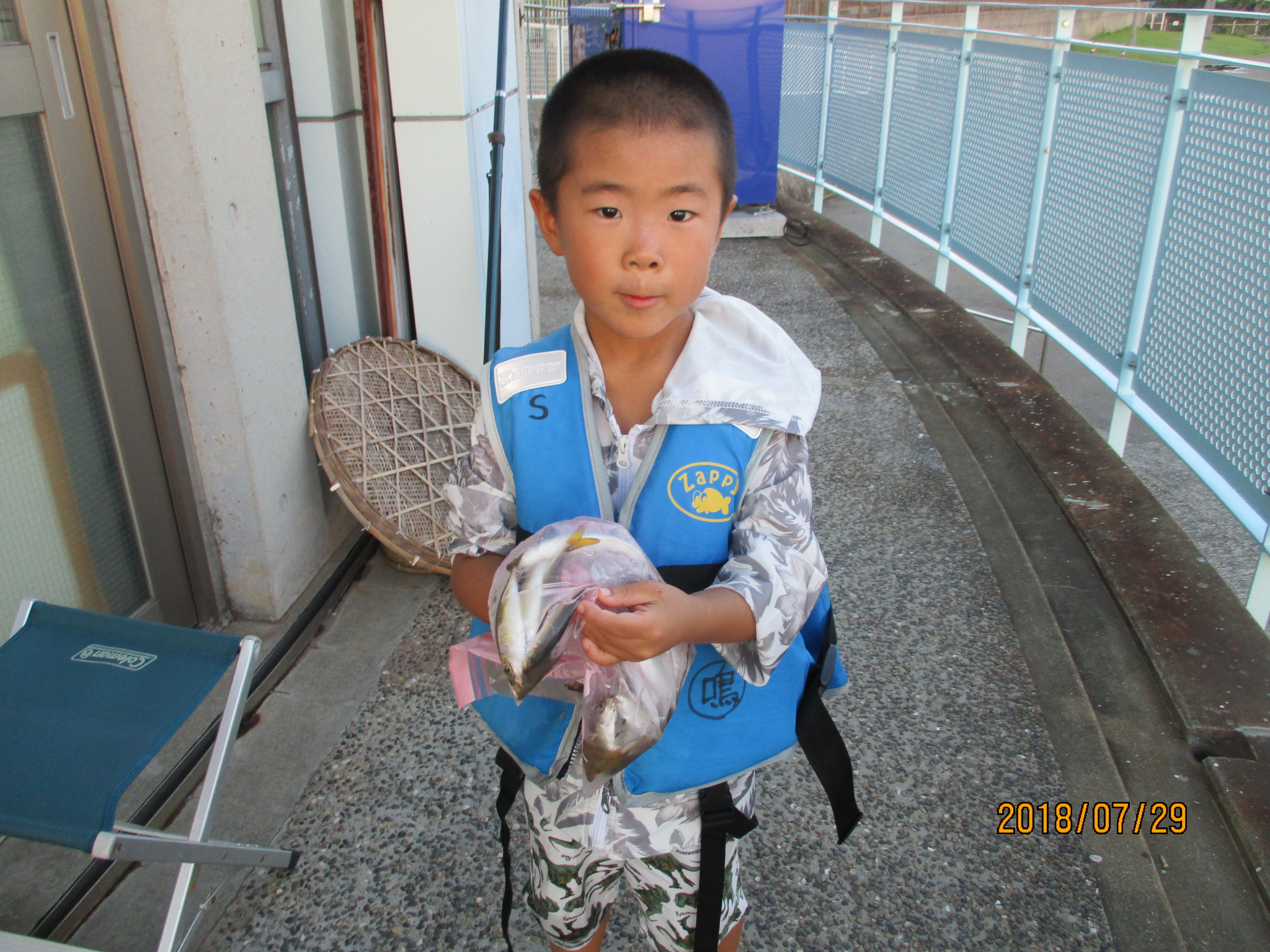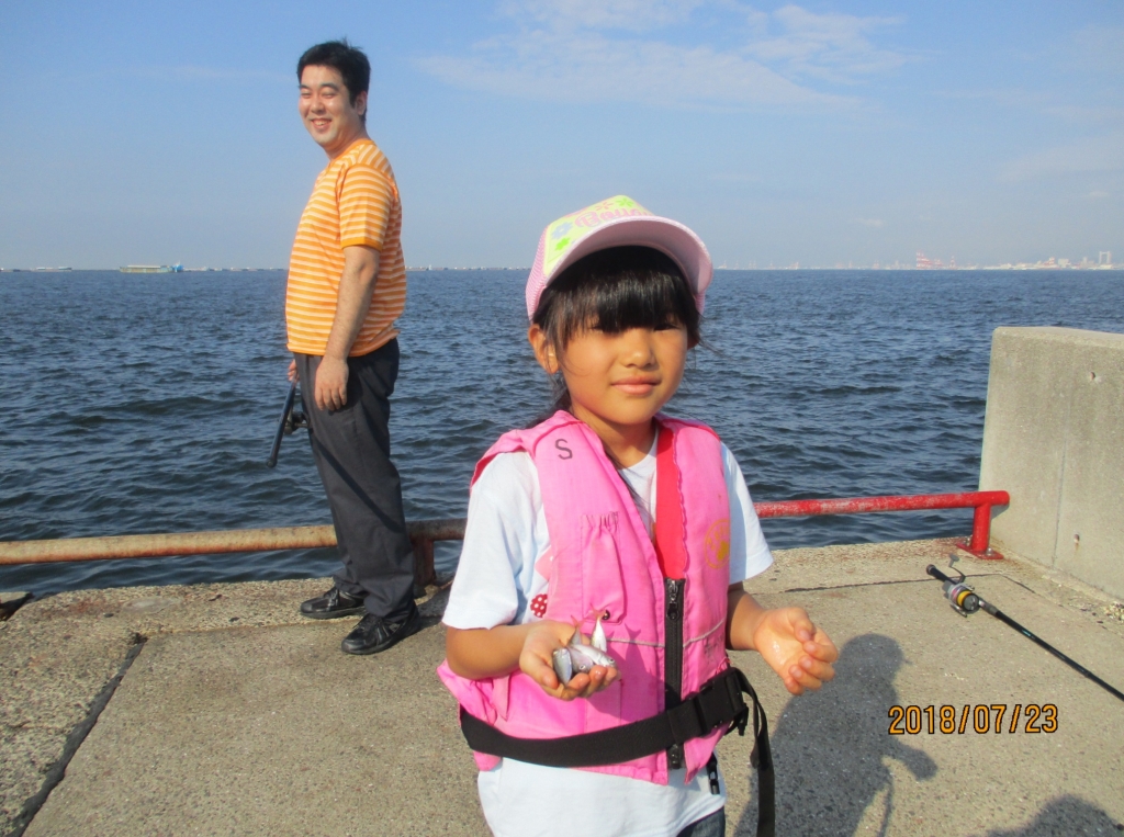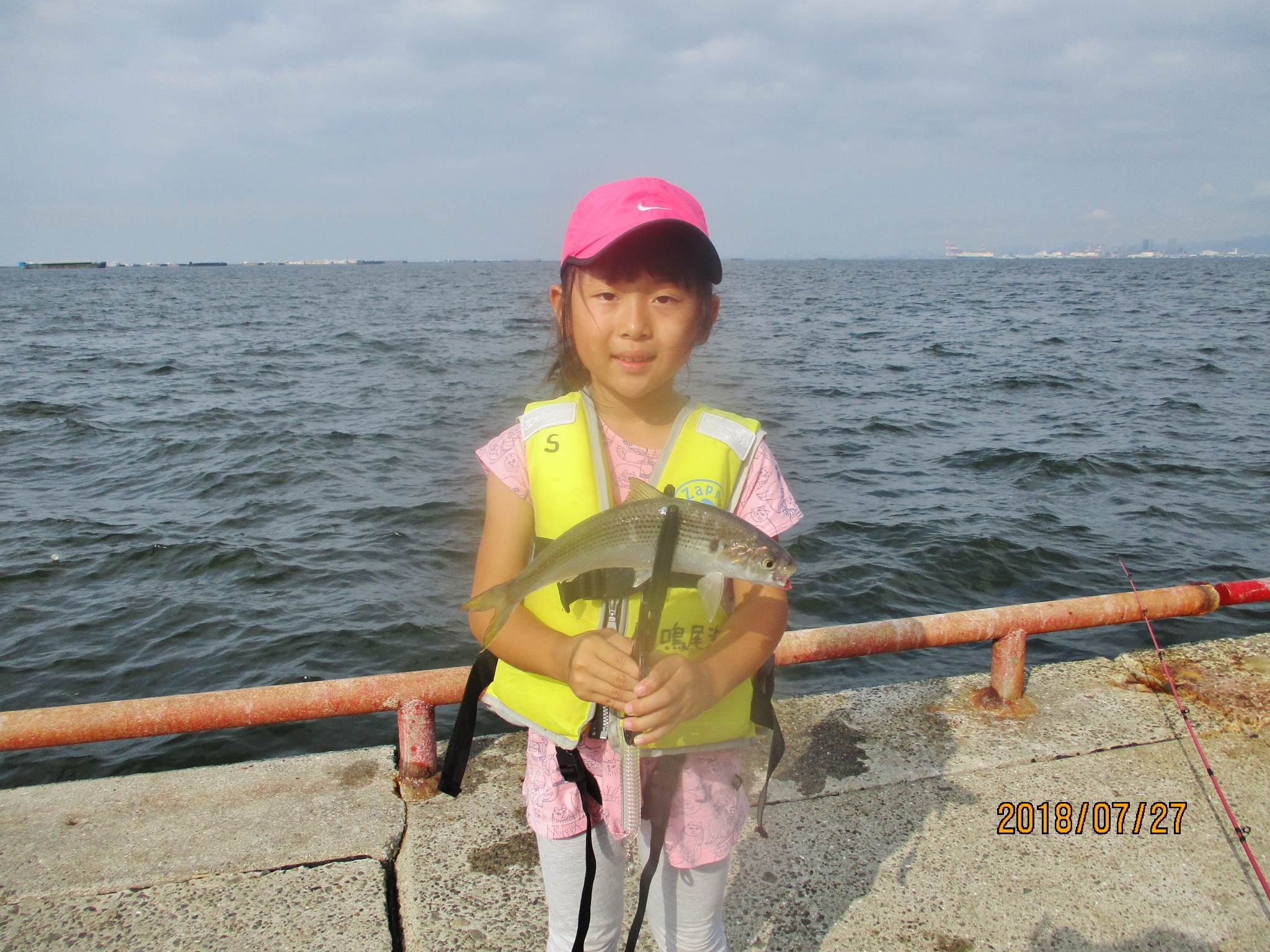 連日の猛暑の中、今朝は曇っていて気温も低めです。台風の影響なのでしょうか・・・?釣果の方も調子が良く、小アジがサビキ針に連で上がっていました。東側エビ撒き釣りで、セイゴ(小)・小チヌが先に食いついて来るみたいです。