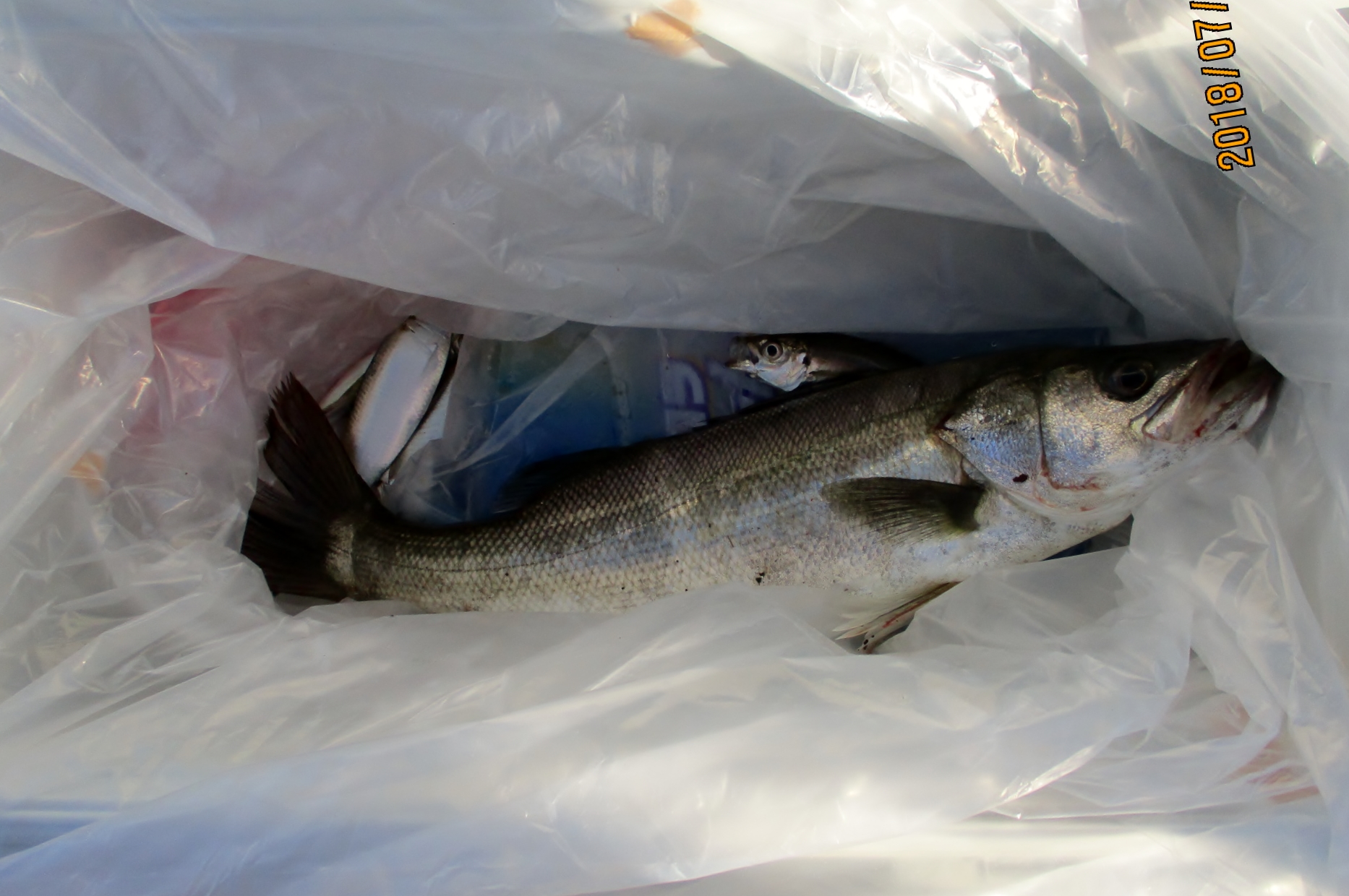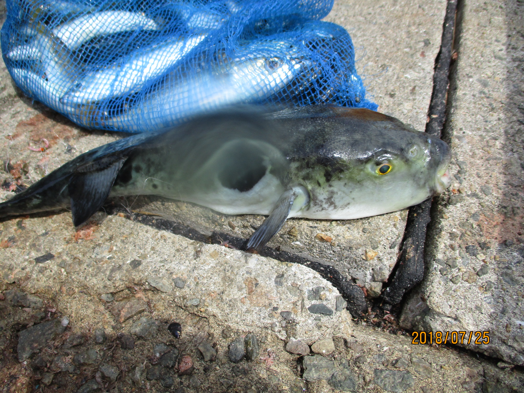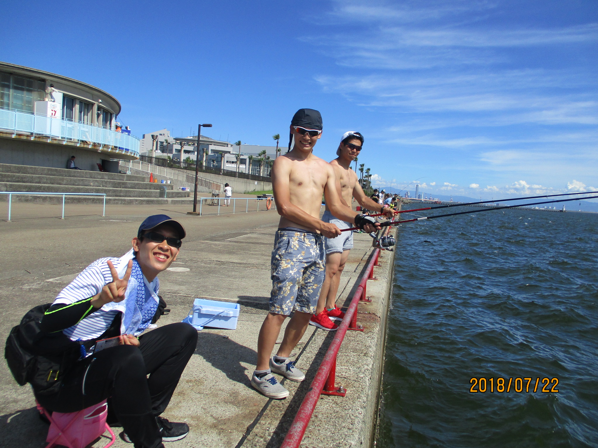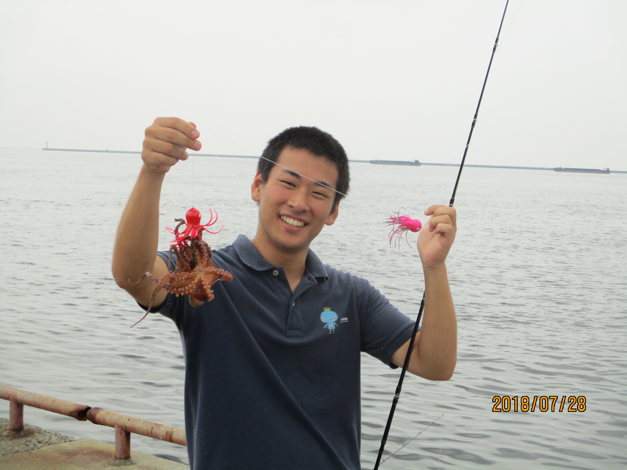 連日の猛暑の中、今朝は曇っていて気温も低めです。台風の影響なのでしょうか・・・?釣果の方も調子が良く、小アジがサビキ針に連で上がっていました。東側エビ撒き釣りで、セイゴ(小)・小チヌが先に食いついて来るみたいです。