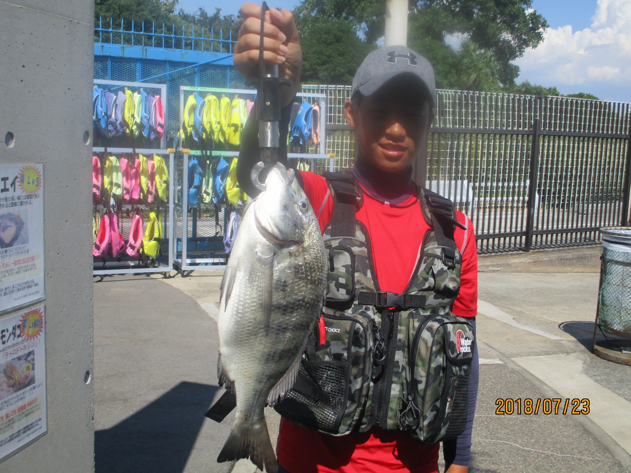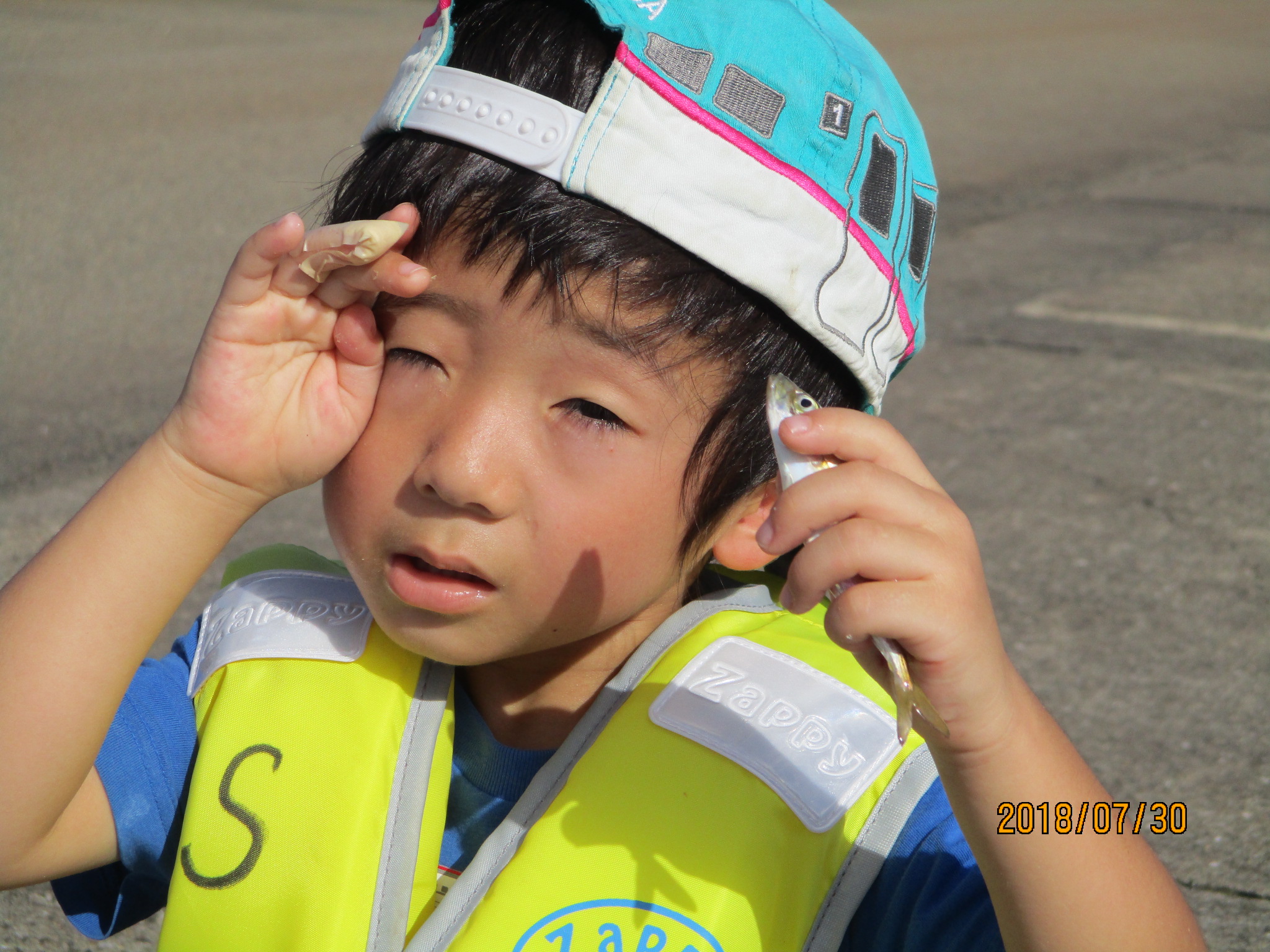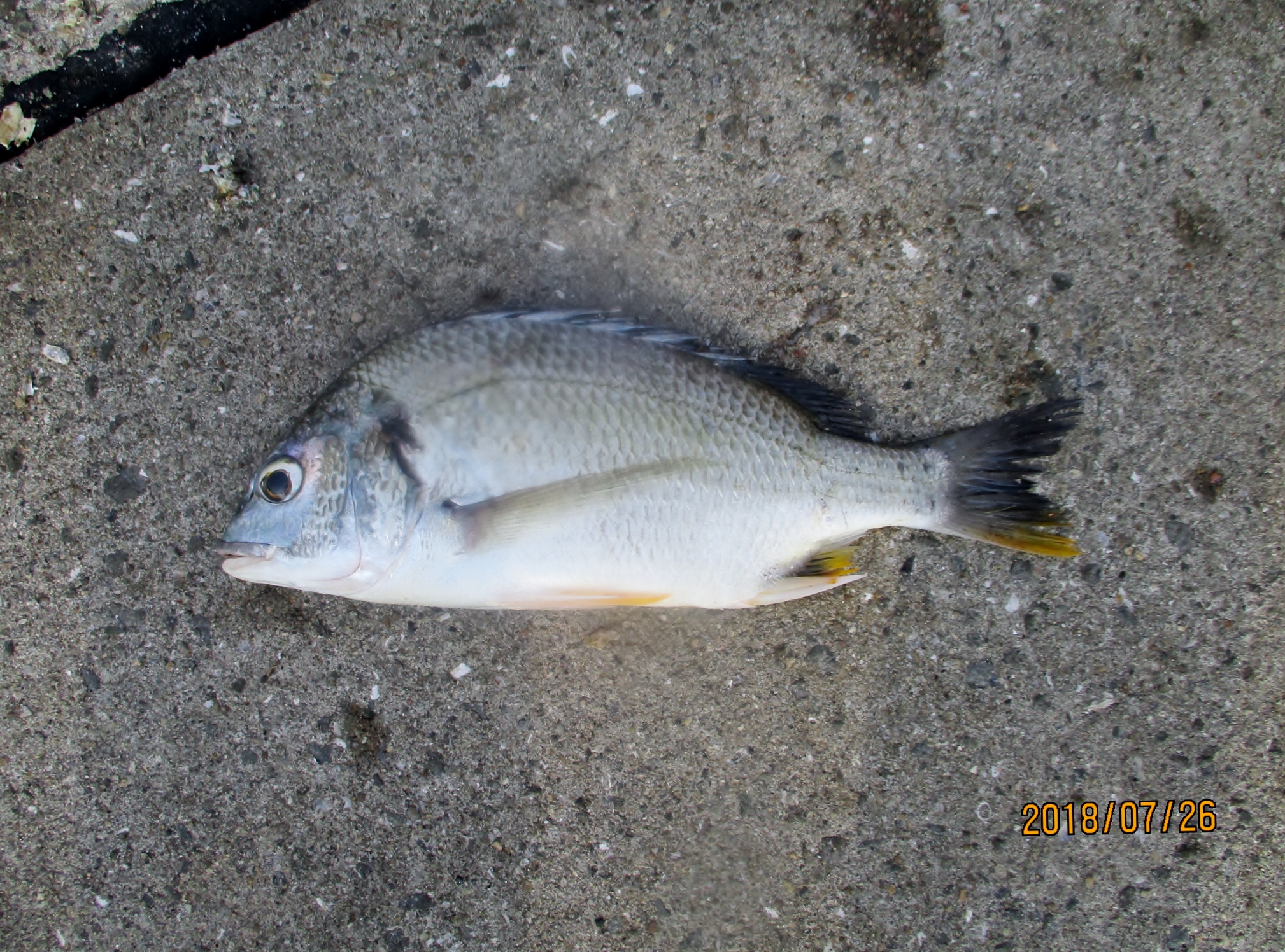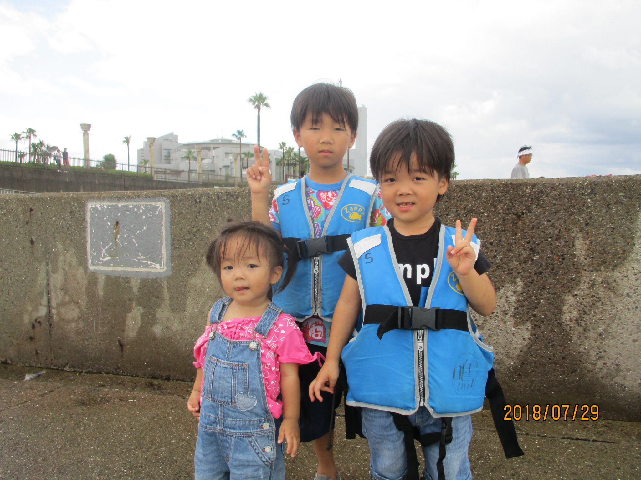 連日の猛暑の中、今朝は曇っていて気温も低めです。台風の影響なのでしょうか・・・?釣果の方も調子が良く、小アジがサビキ針に連で上がっていました。東側エビ撒き釣りで、セイゴ(小)・小チヌが先に食いついて来るみたいです。
