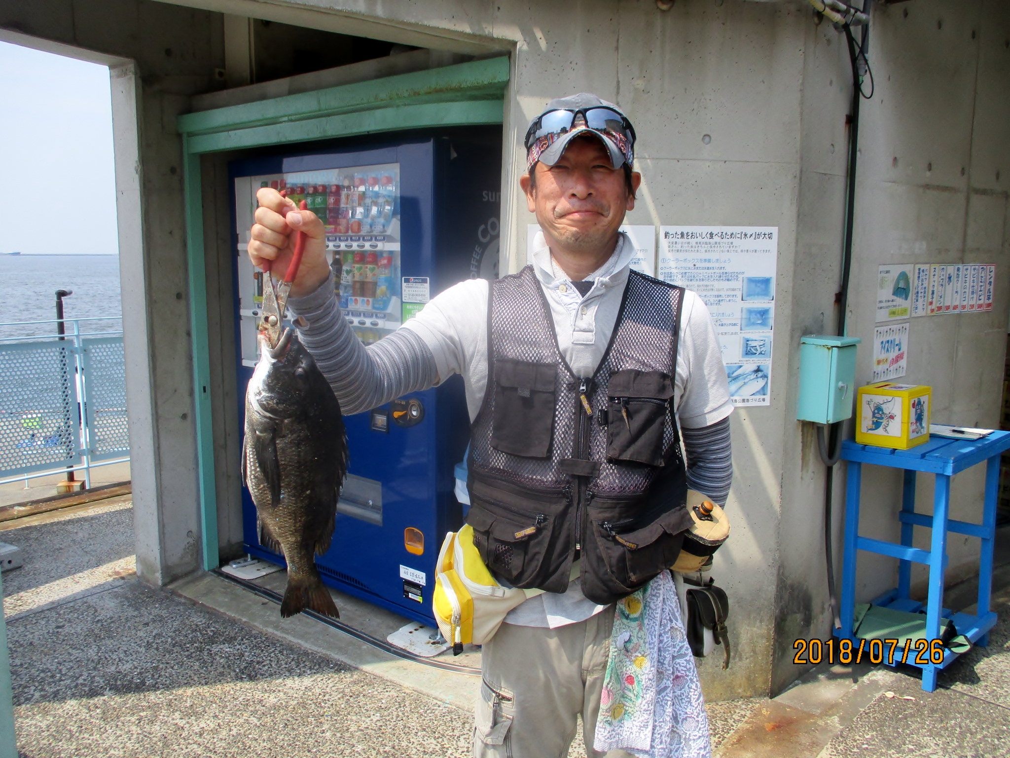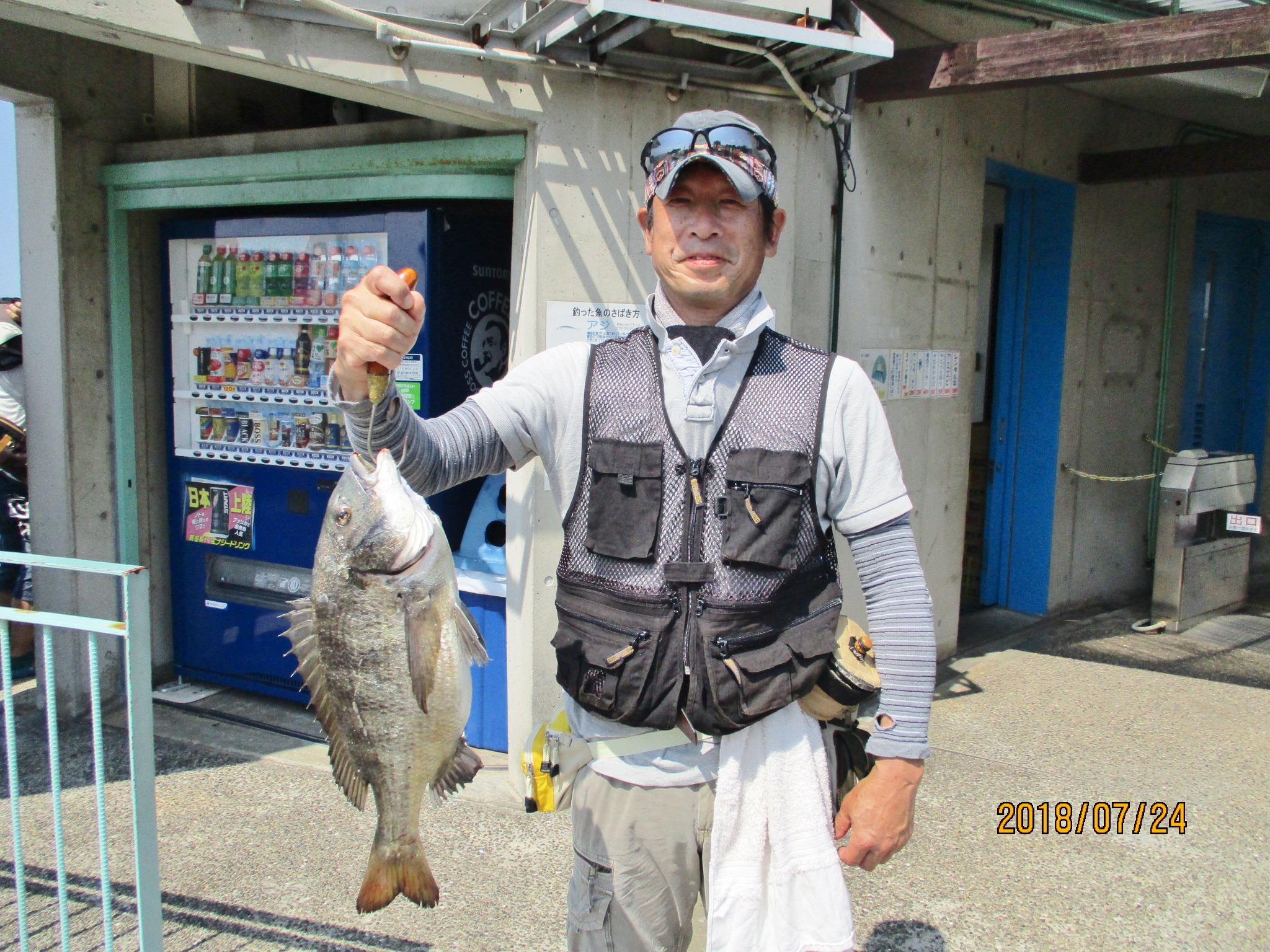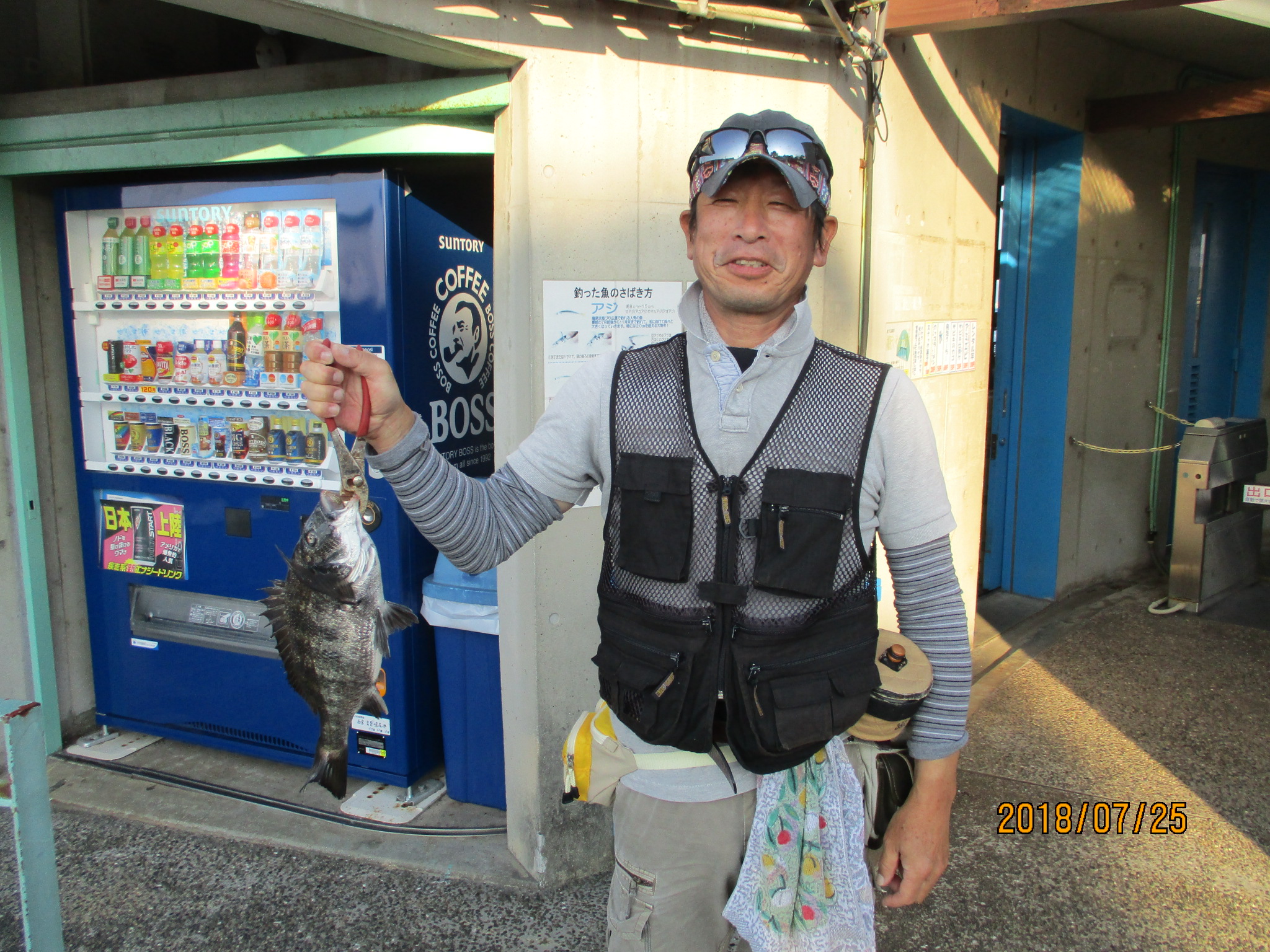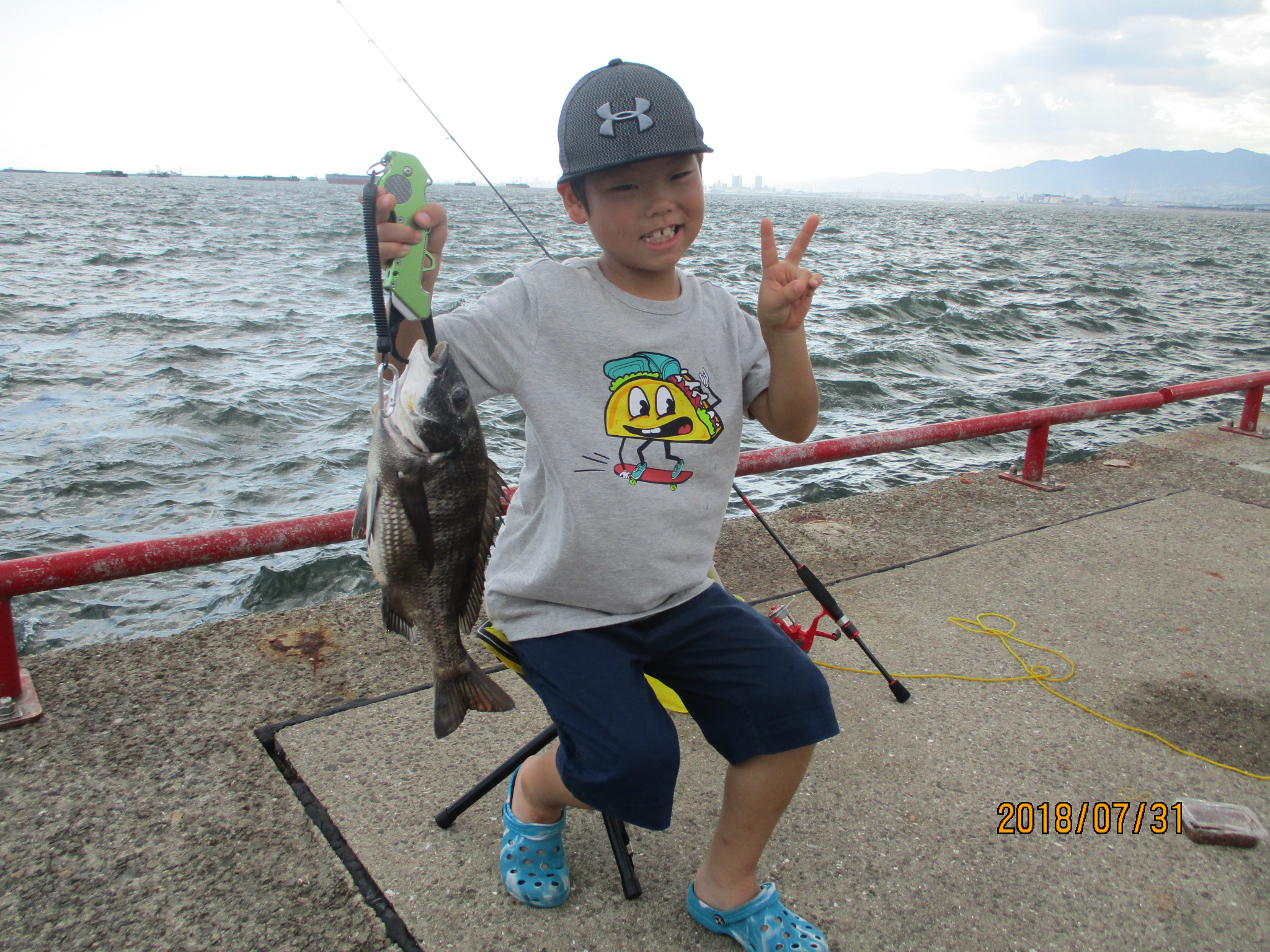 昨日に引き続きサビキ釣りの釣果は、豆アジ・小アジ数匹・小サバ数匹と悪いです。東側で、キビレ33cmとチヌ25cmとエビ撒きで上がりました。今日のタコは、4人の釣り人が挑戦し、計3匹と不漁でした。10時ごろ落とし込みでチヌ42cmが上がり、西宮市の濱田様3日連続の登場です。