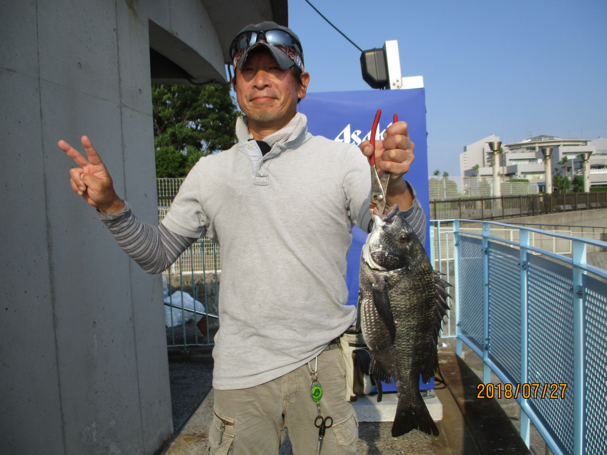 20時頃に東端でシラサエビを餌にチヌ45㎝が釣れました。皆さん暑い中、頑張ってくれました・・・