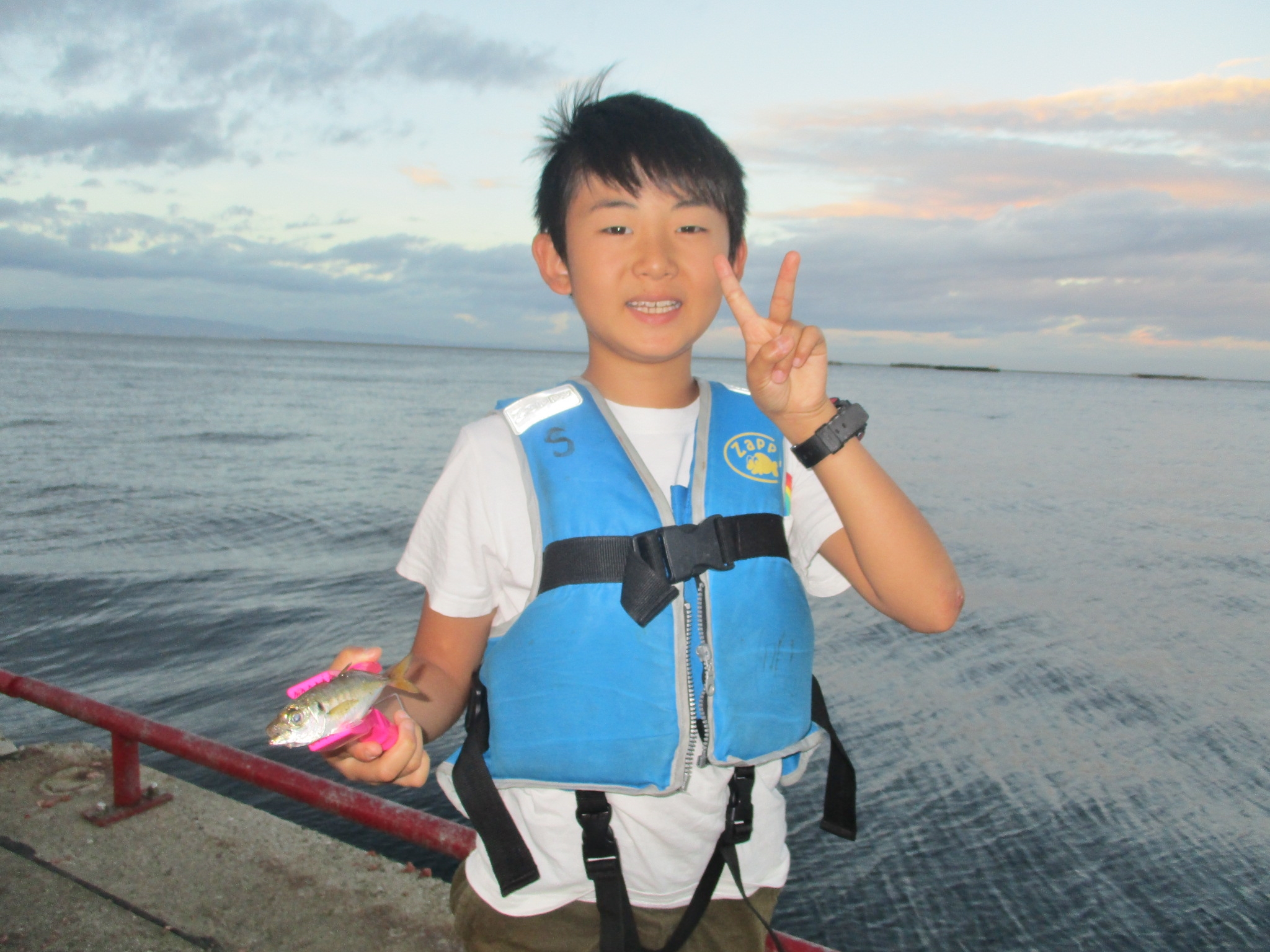 14時以降は釣果もいまいちで、17時頃から、サッパが釣れる位です。波が高くてサビキ釣りには不利になってきました