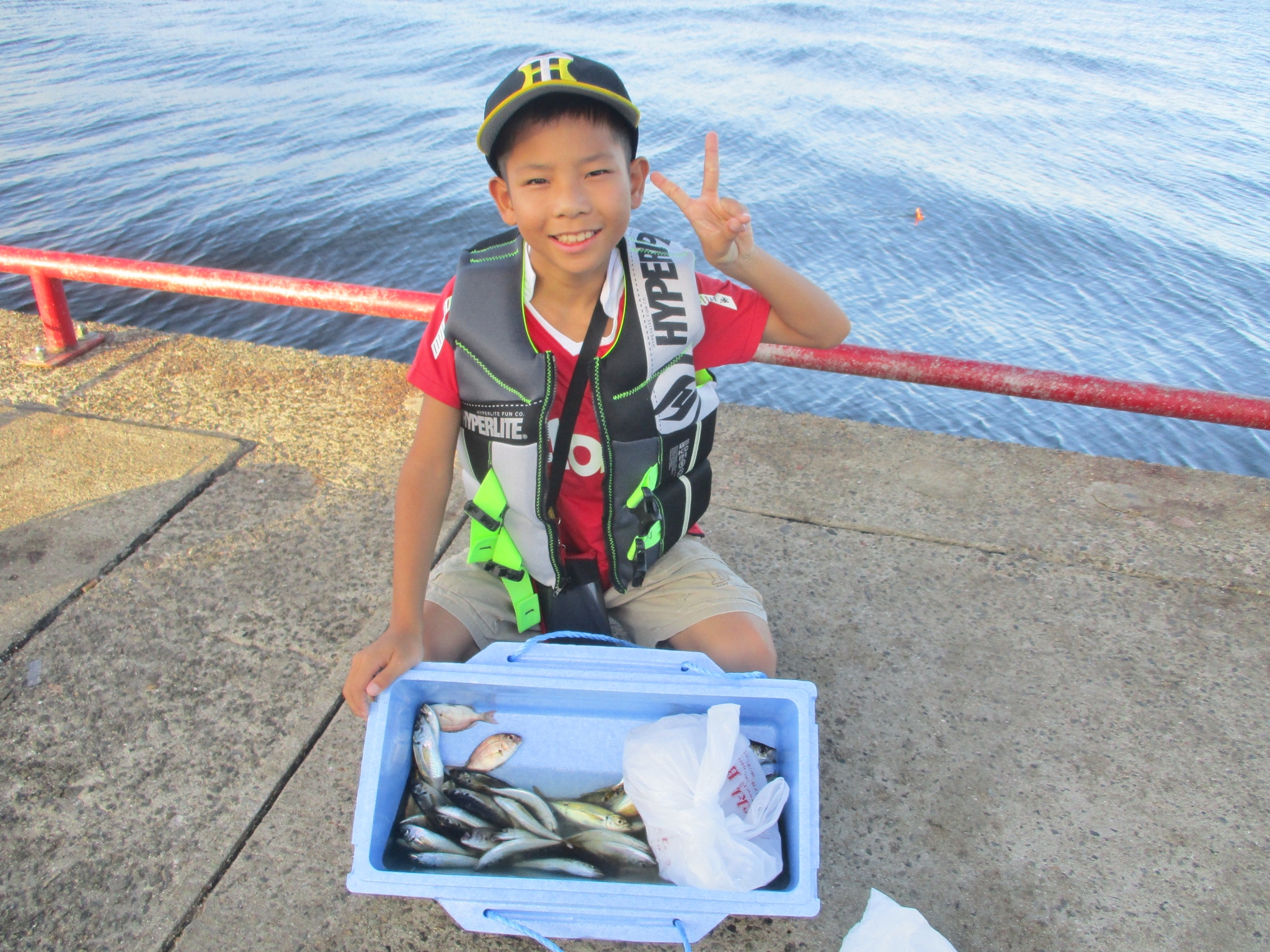 サビキ釣りは、台風以降、アジが釣れなくなり、カタクチイワシがつれ出しました。サヨリも3人で15匹、これから期待できそうです。
