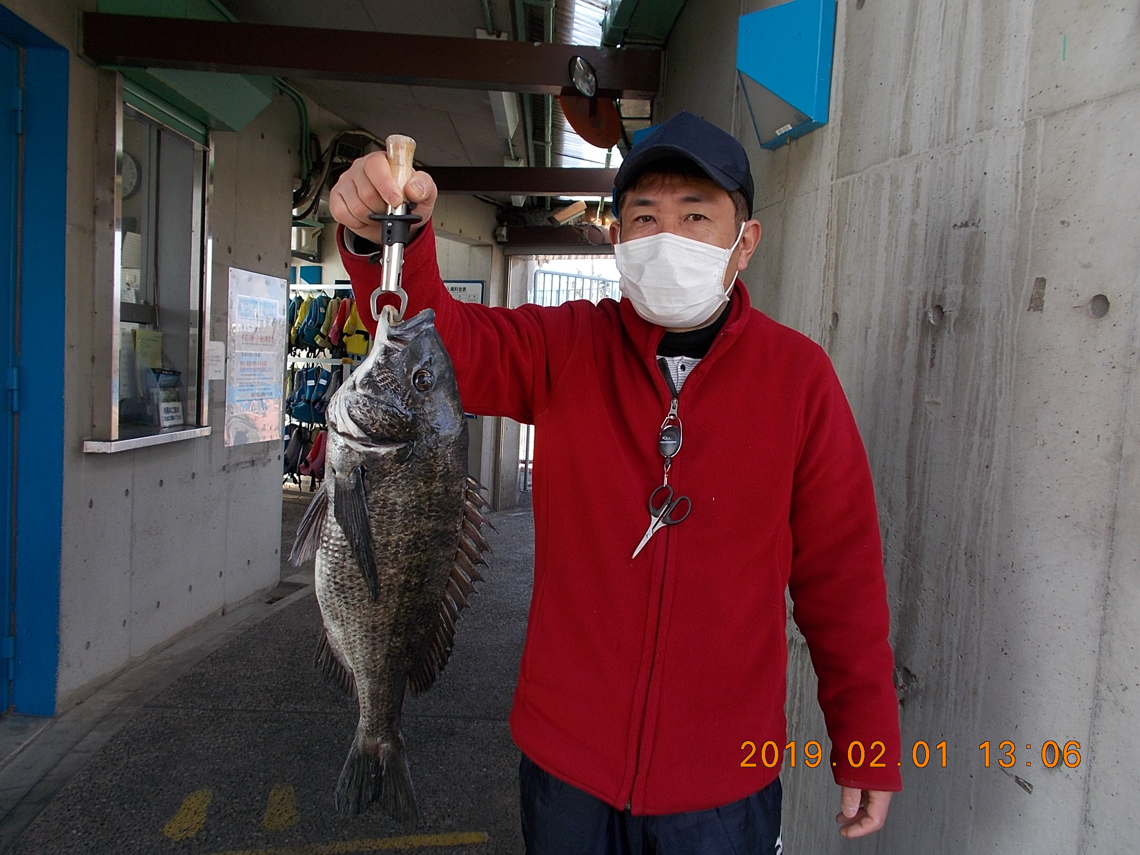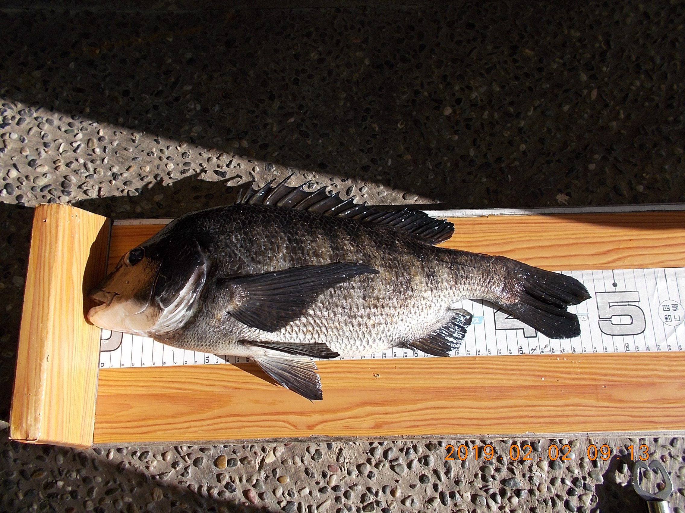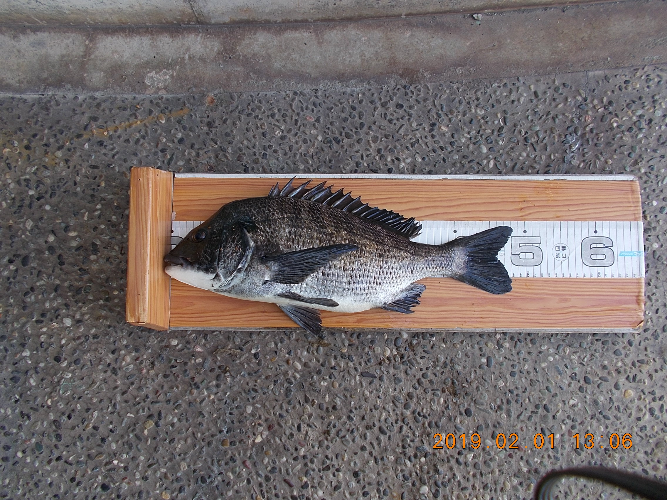 13時頃にあきらめていたその時初めてのあたりがあり2月度最初のチヌの部48,4cm暫定一位を釣りあげられましたエサはオキアミ、フカセ釣りでした。