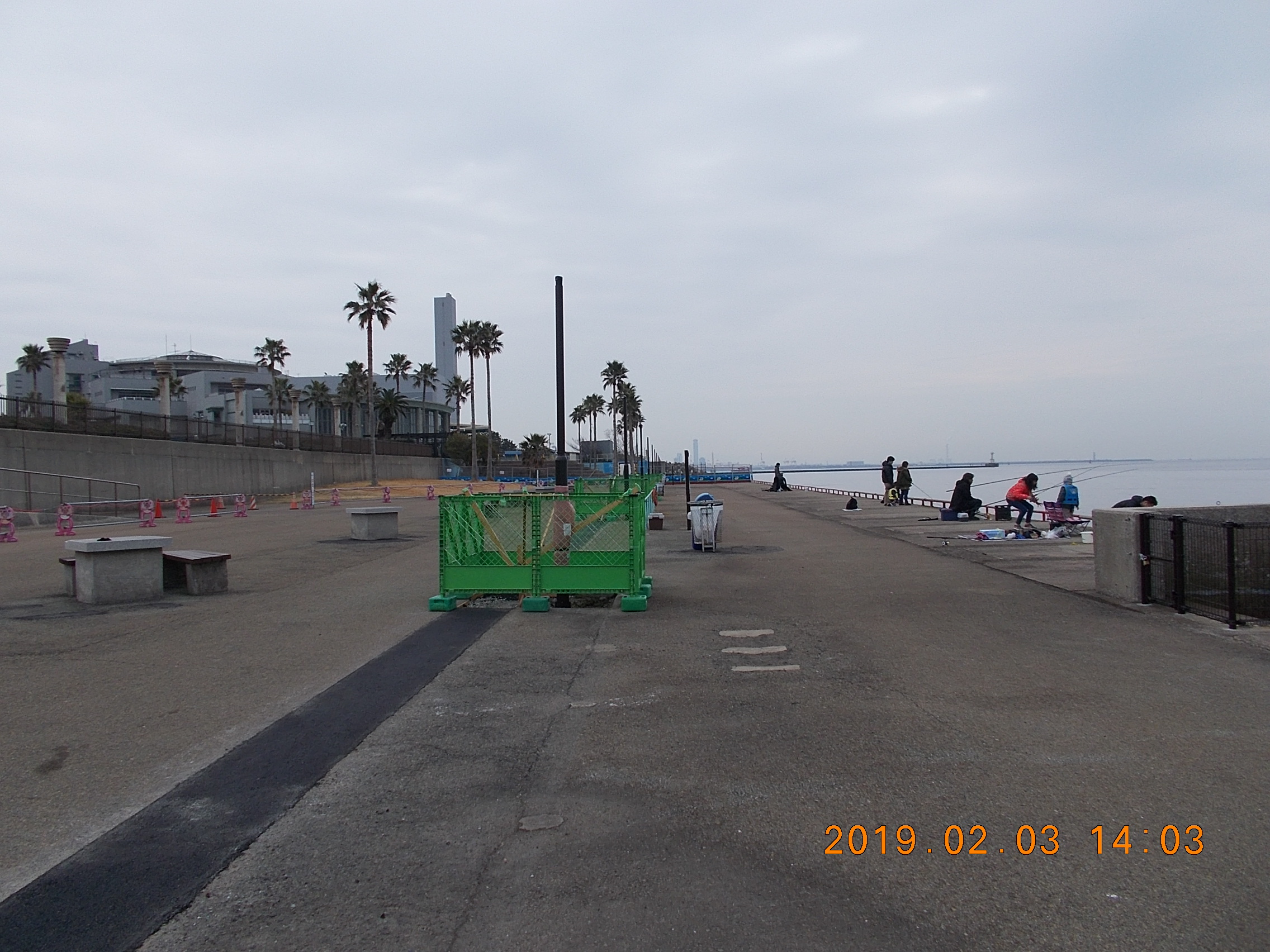 午後3時現在、天気快晴海面おだやか。3名のかた竿を出されています。なかなかアタリが出ませんでしたが3時半ごろ東で西宮の濱田様オキアミでチヌ40cmあげられました。