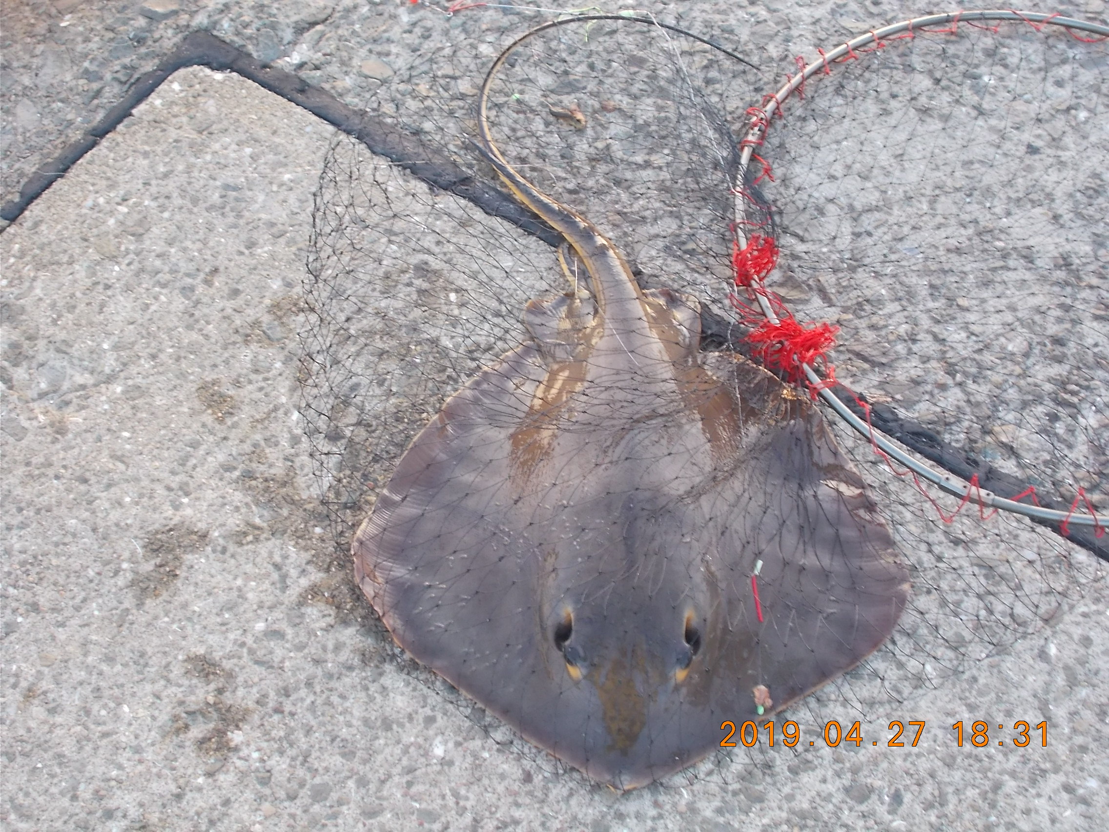 昼2時からは、17時頃にサバが3匹、赤エイ1匹釣れました。風も波も強く釣り