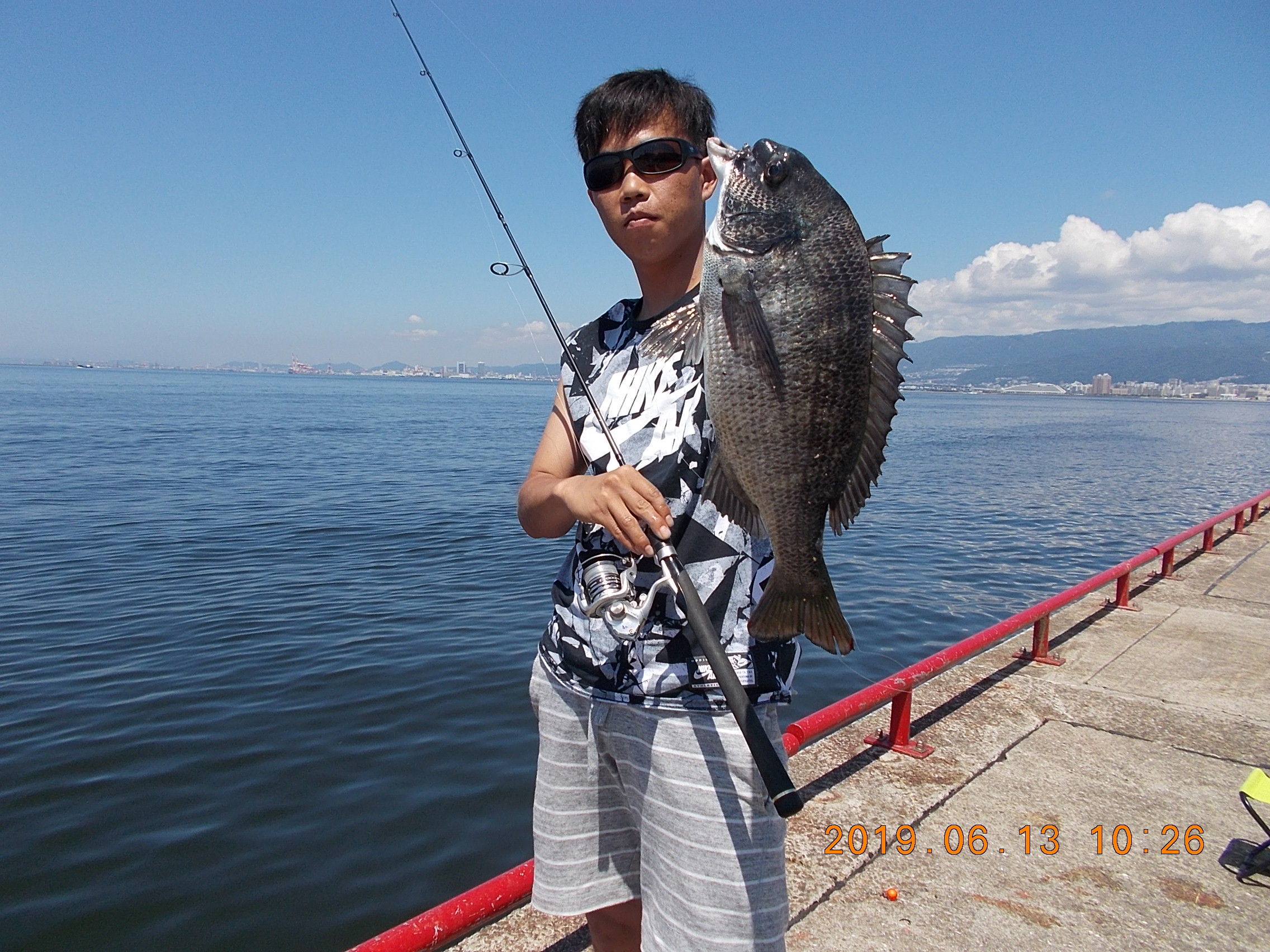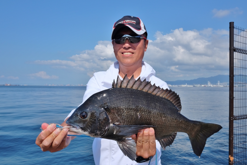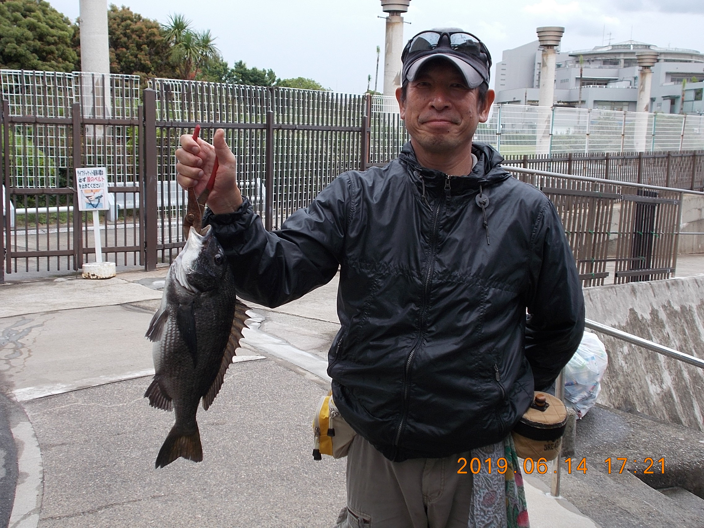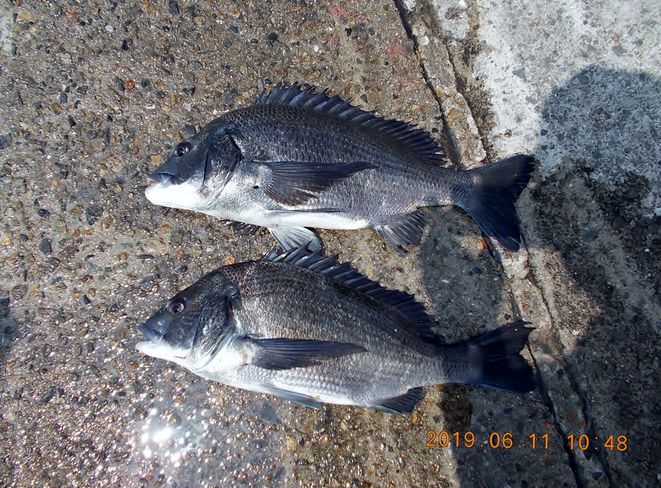 午後2時半現在、南西の風2~3m晴れ、海面おだやか。半分以上はサビキの方。大きいウキで4~5mサビキを飛ばしている方もちらほらでサッパもしくは豆アジがぽつぽつ。西端の釣り人は午後だけでチヌ8枚あげられました(写真)餌オキアミ。5時半を過ぎ豆アジが多くなってきました。