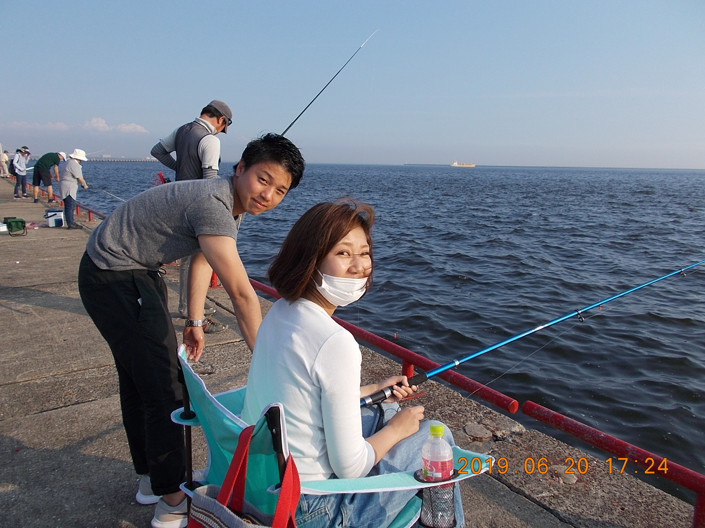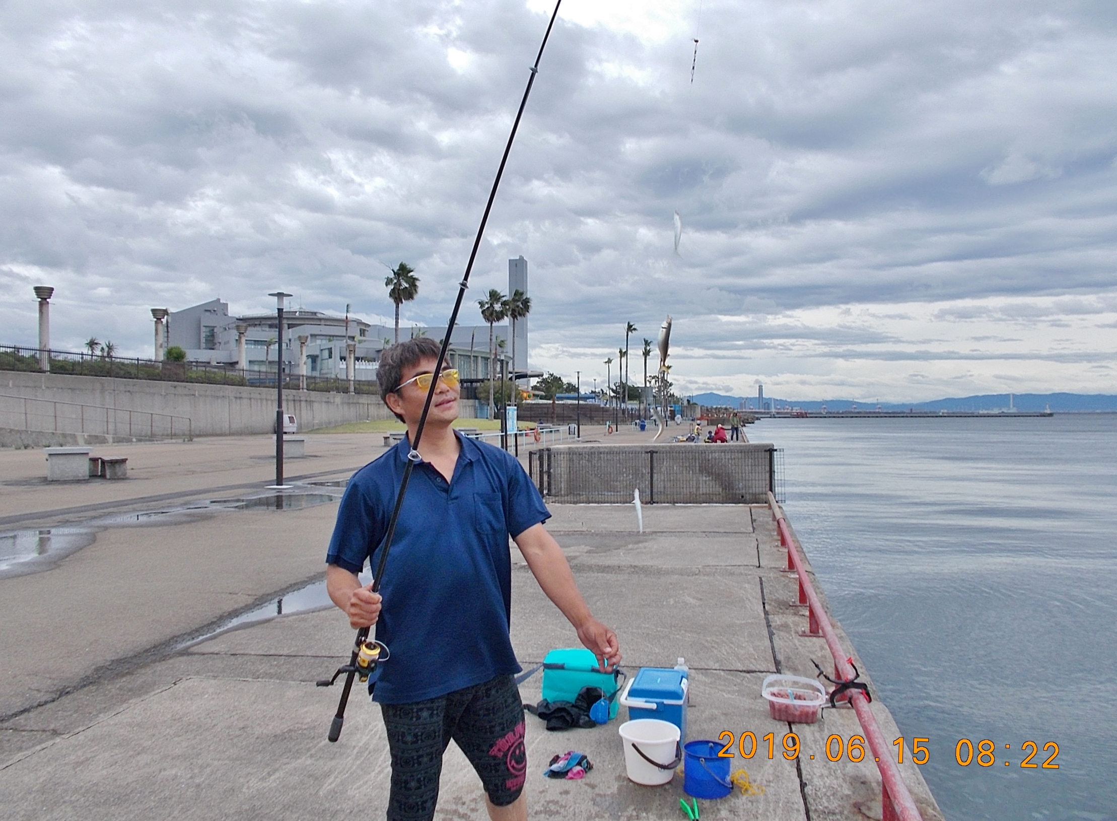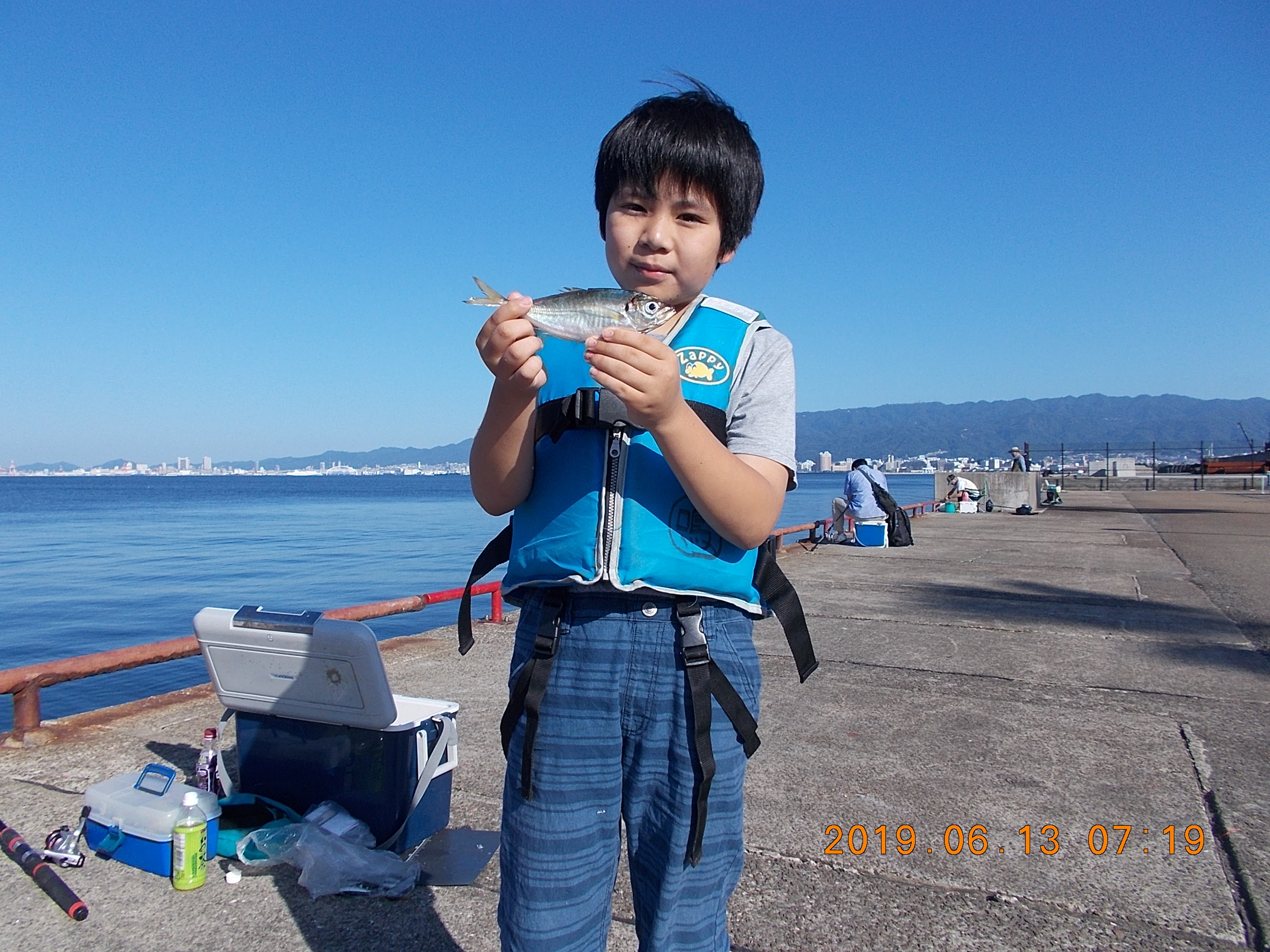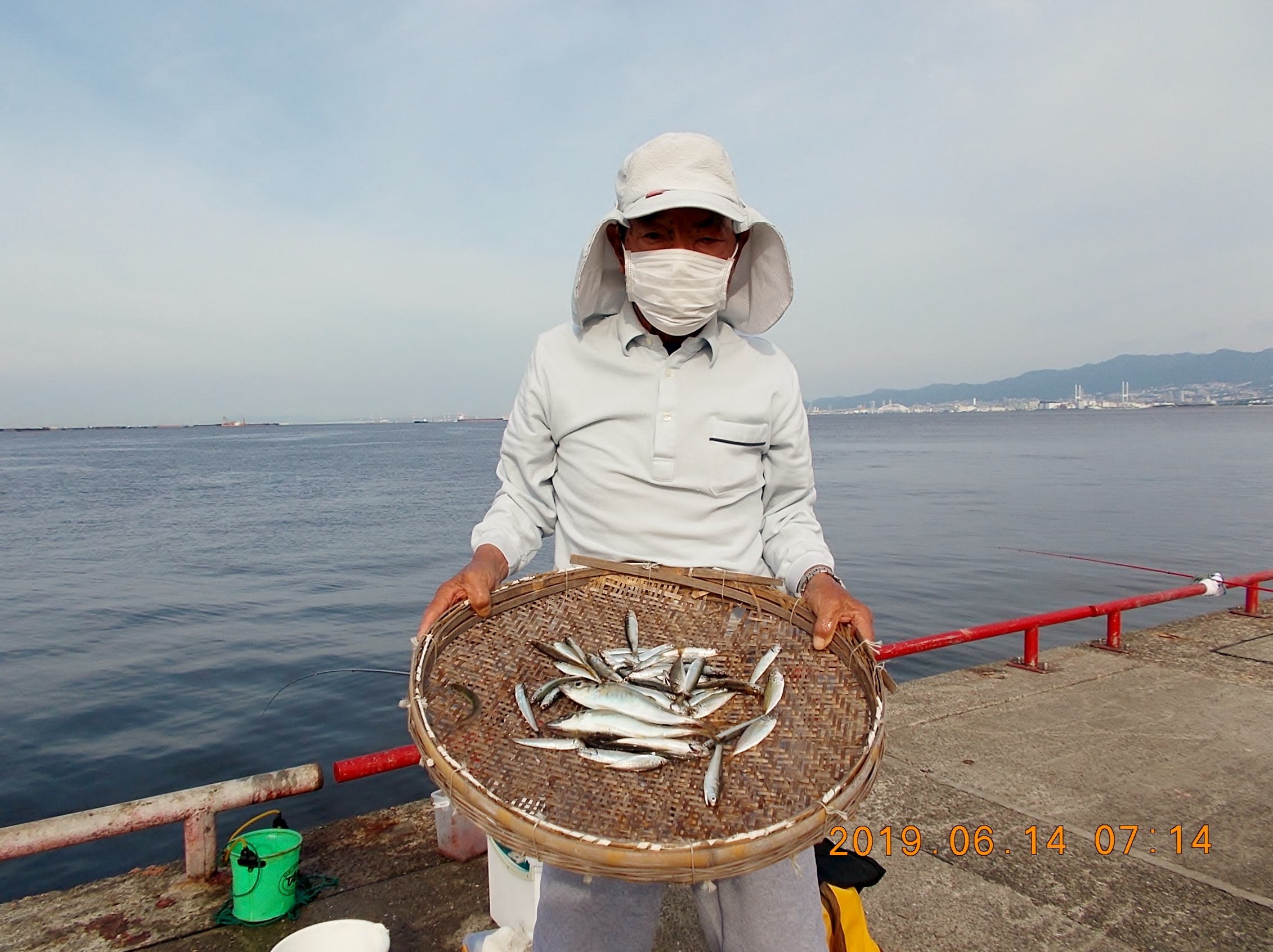 昨日の荒れ模様が嘘のような好天でのスタートになりました。開園直後は中央付近でサビキ仕掛けの釣り人にマアジやマイワシが良く釣れています。振り替え休日の子供達も来園しています。今日は9時頃まで東から西端までサビキに色々な魚が釣れていました。