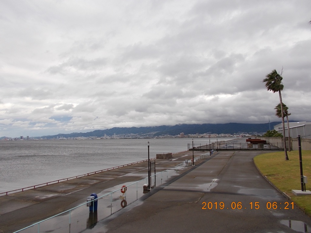 開園時、弱い西風、波静か。大変ジメッとした朝です。