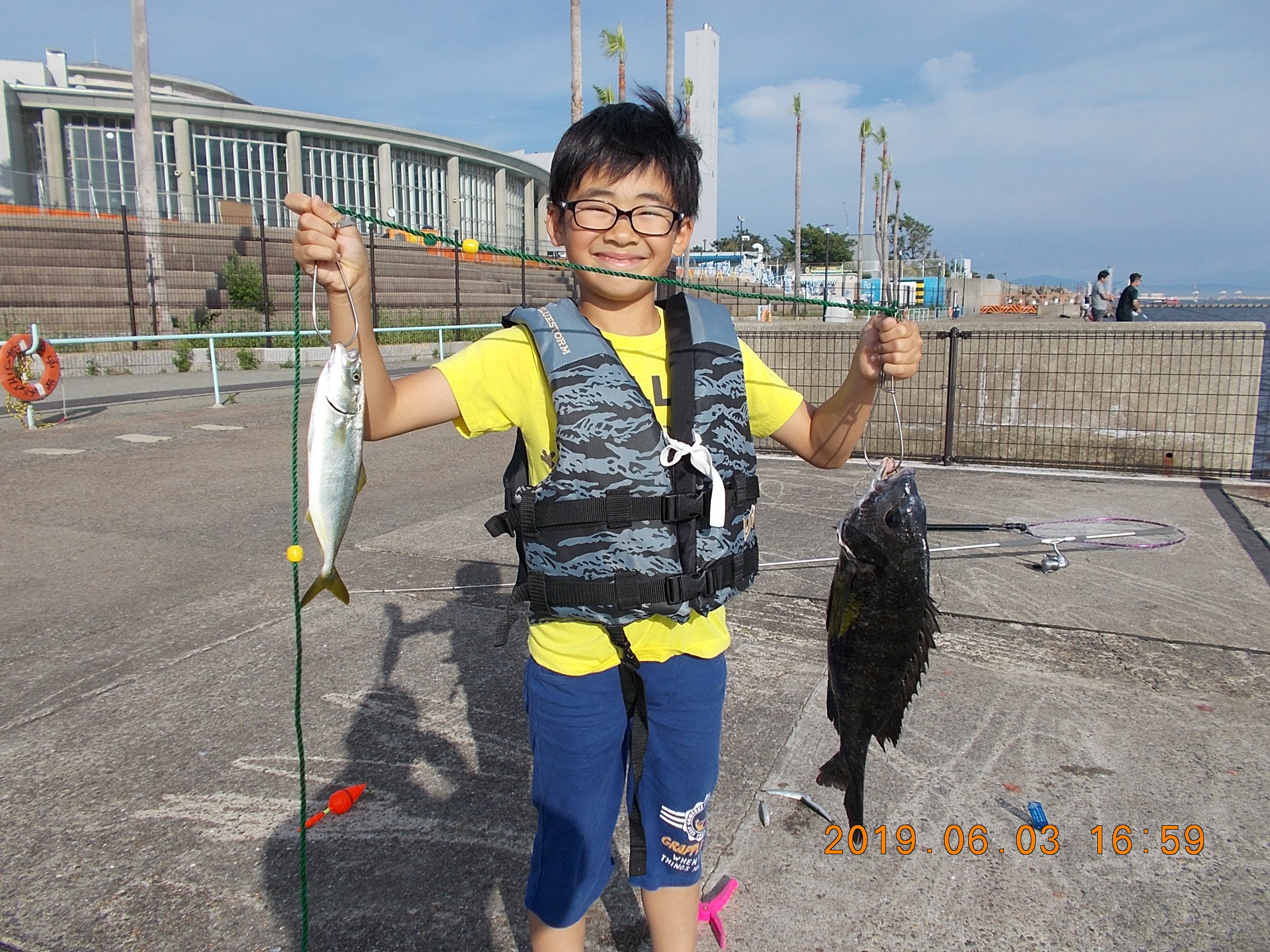 ズボ釣り餌シラサにて、スズキ69㎝、チヌ40と45㎝の釣果。開園後すぐの釣果だったようです。フカセ釣りでも10時から昼までにチヌが2匹。