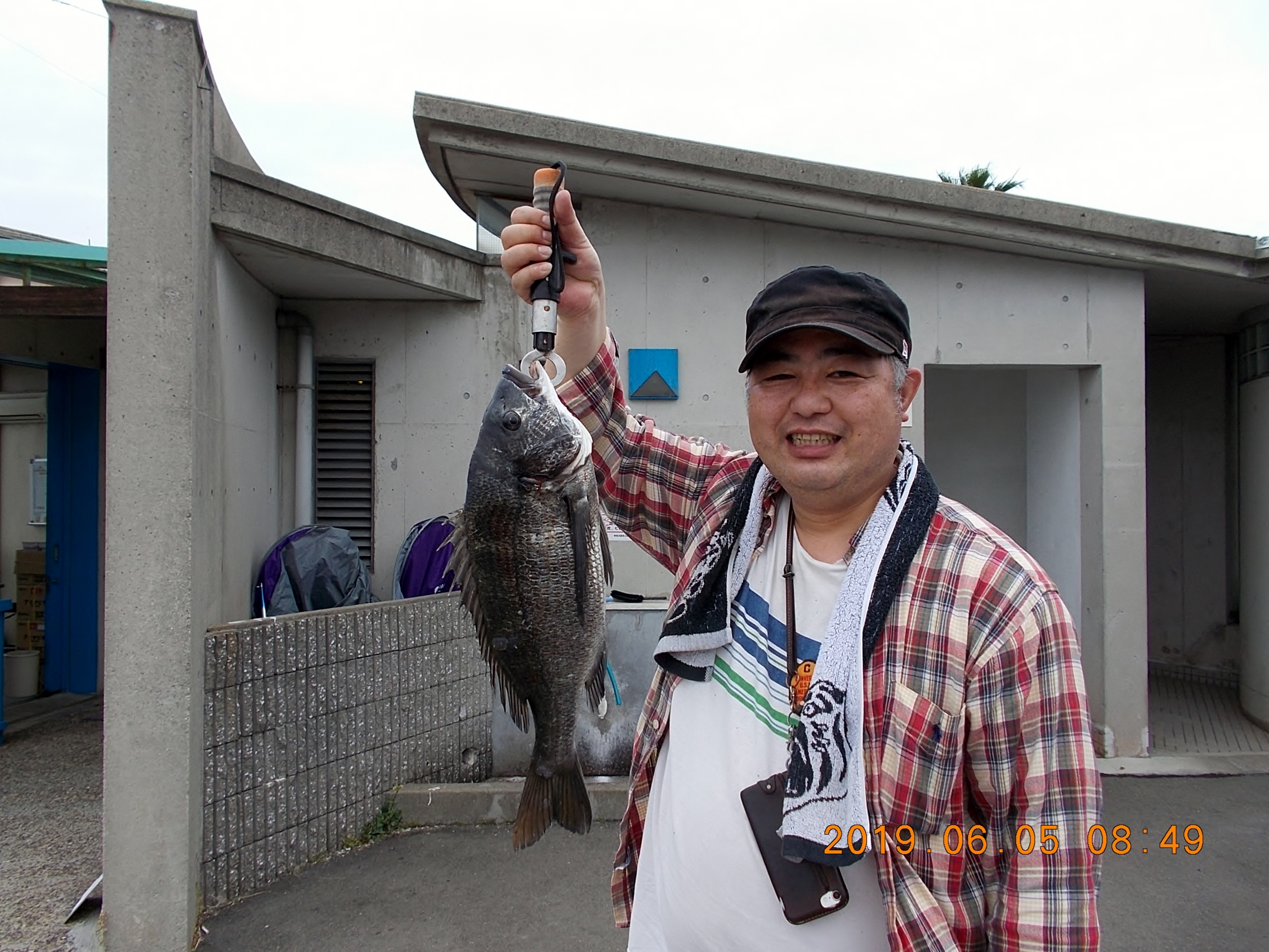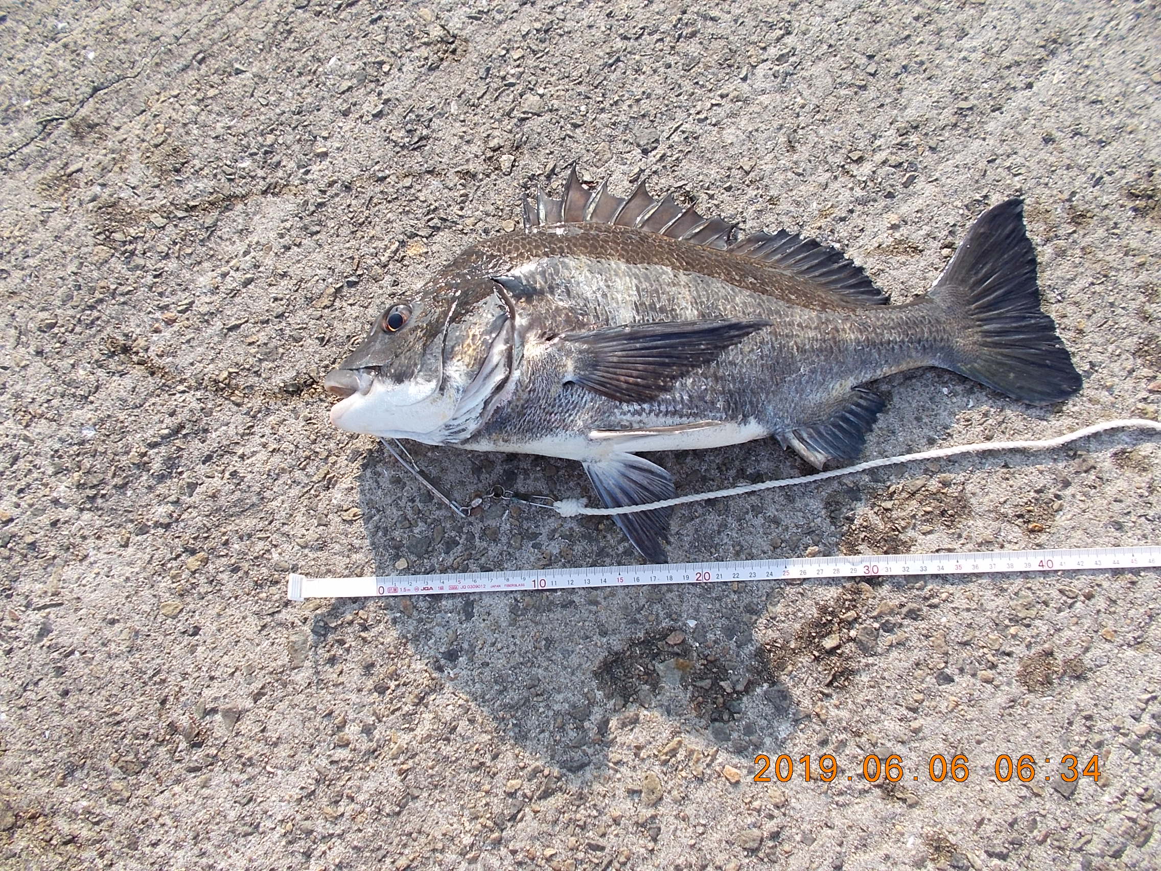西宮市の濱田様が、落とし込みにて、餌イガイでチヌ49㎝を釣られました。