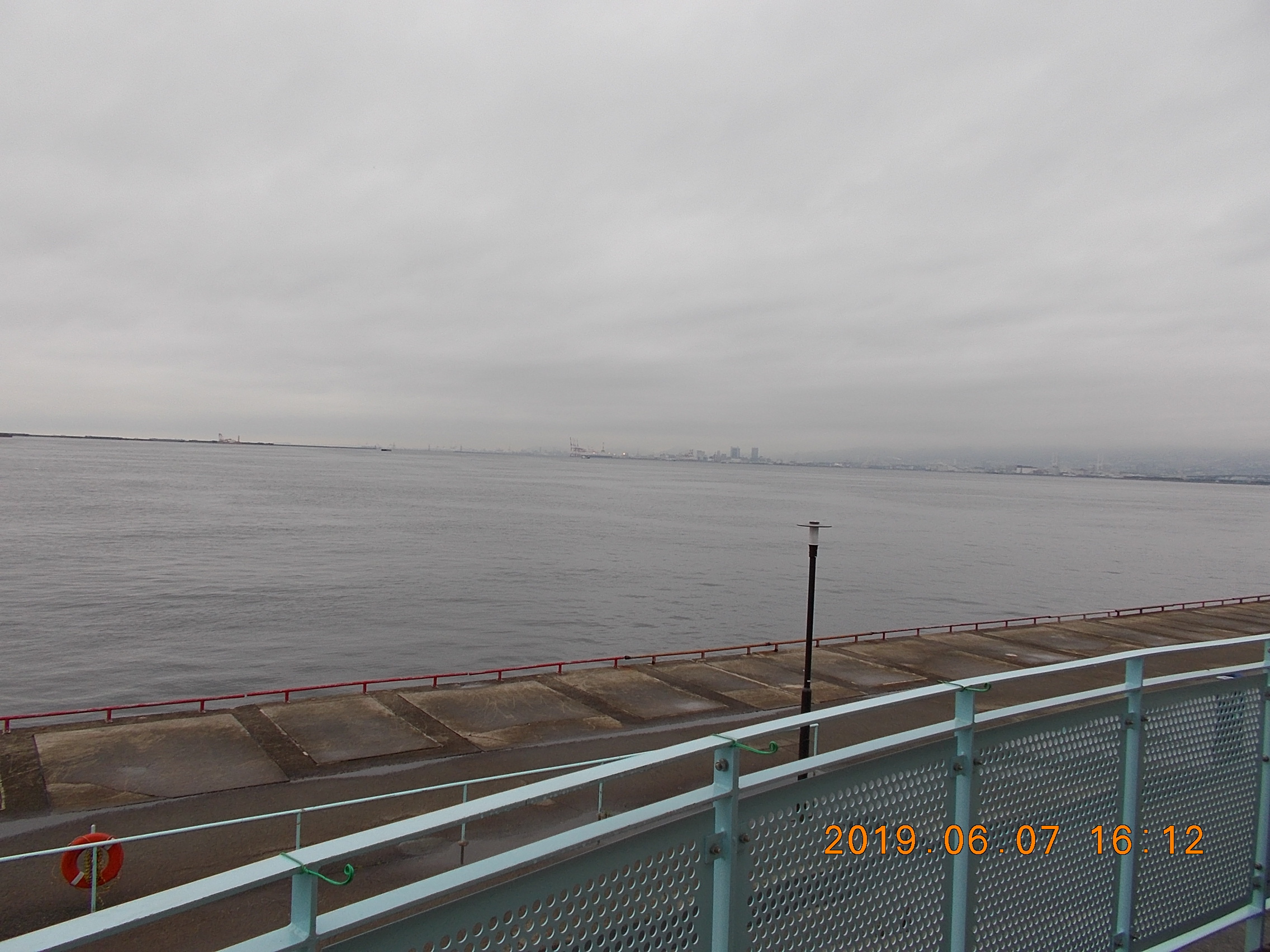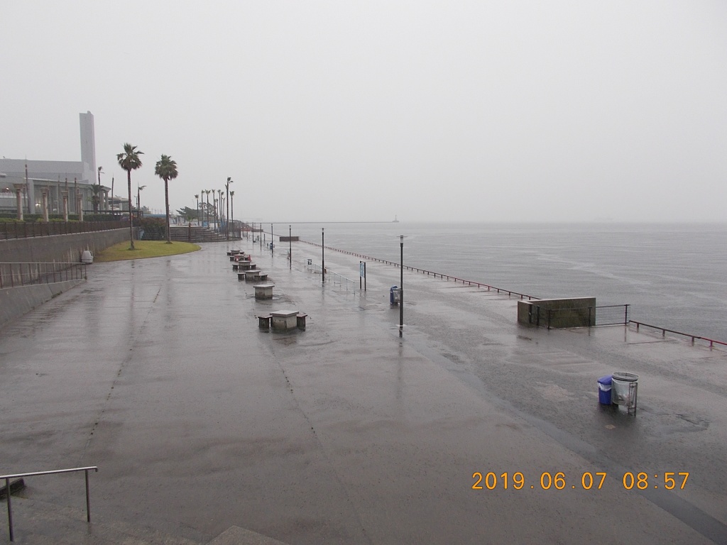 5時半には南西の風6~7m。ポートアイランド以西は雨が本格的に降っているようで真っ白で何も見えません。