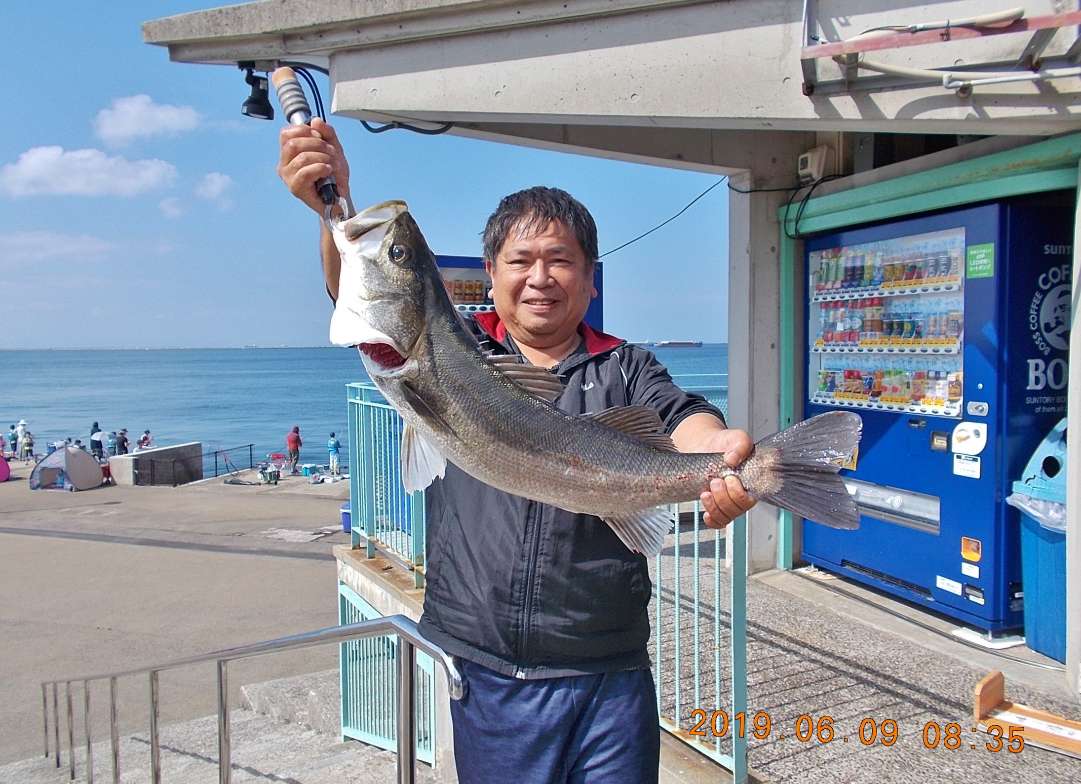 午後2時半現在、午前中吹いていた強風がうそのような静かな海面。ただ釣れ具合も止まってしまい何もあがっていません。場内混雑のなか午後に入場された方々はちょっとお気の毒。夕方に期待しましょう。