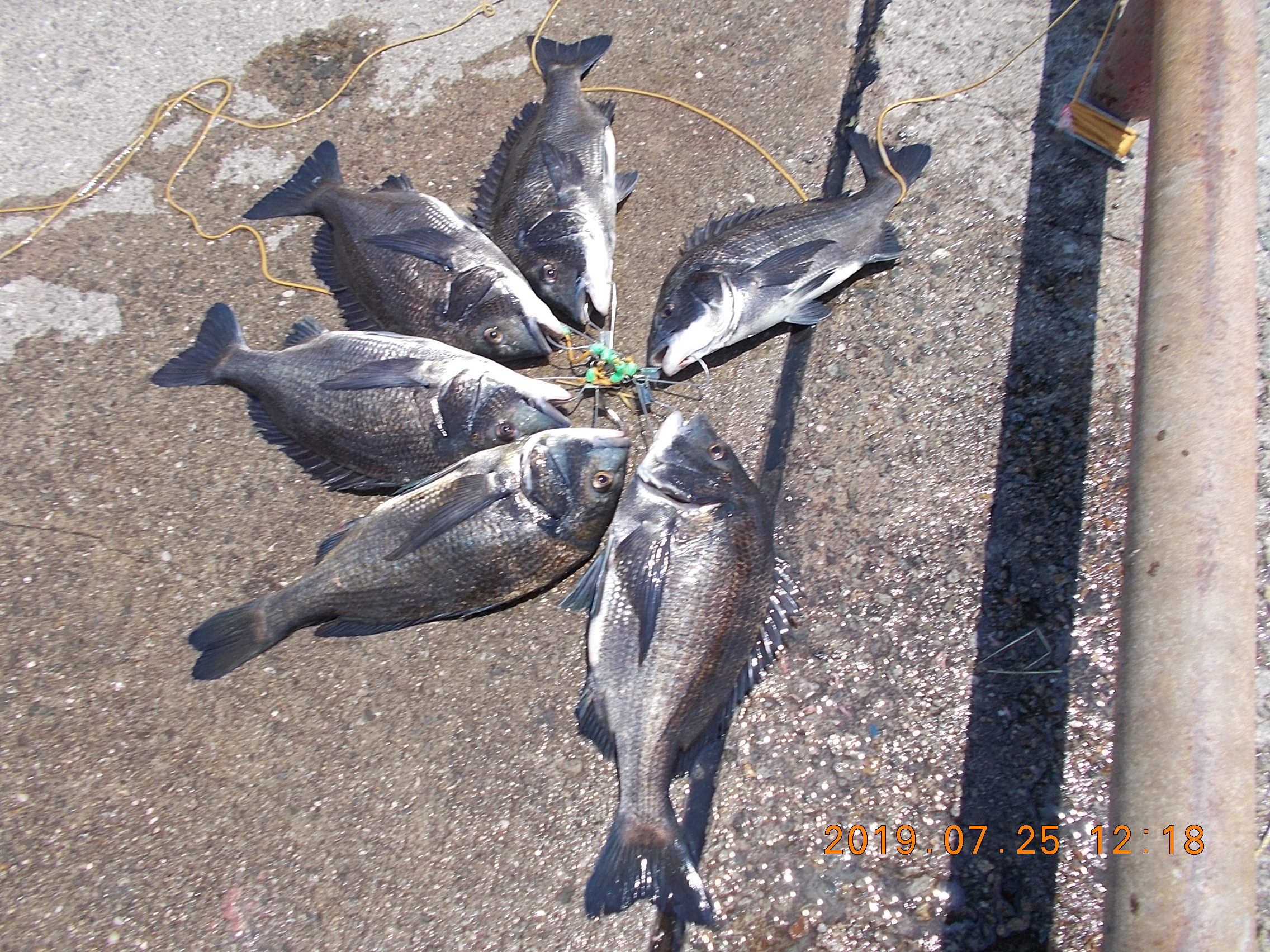 今朝もサビキ釣りの釣果は、余り良くないみたいです。小アジが少しとサッパ・ツバス位でした。東側で、サビキ釣りの竿にチヌ50cmの大物が釣れました