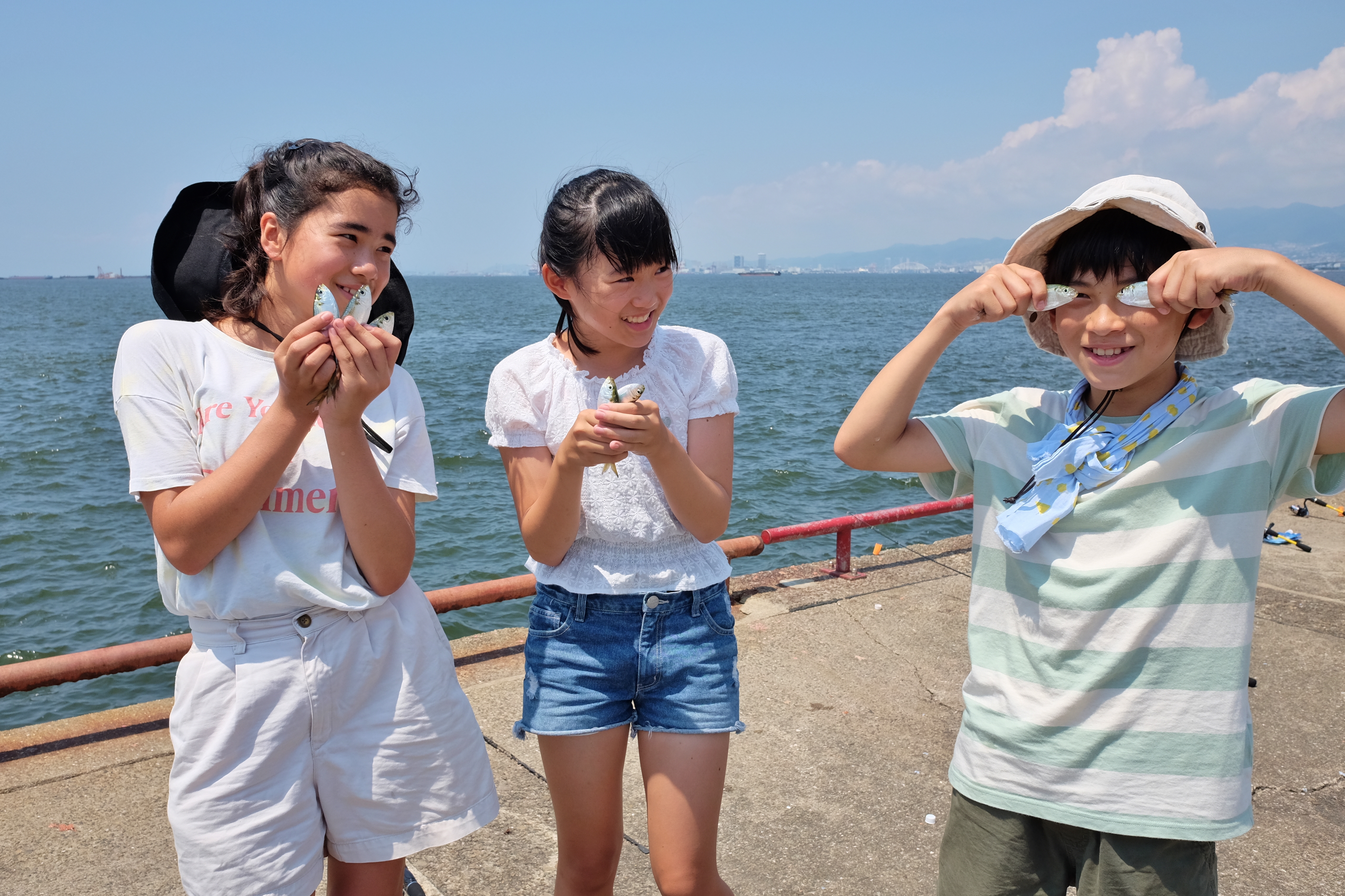 教室3日間は大変暑く、熱中症に気をつけながらサビキ釣り教室を行いました。