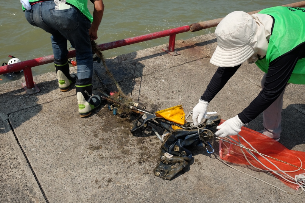 ボランティアのダイバーさんと日本釣振興会のご協力で海中の清掃を行いました。