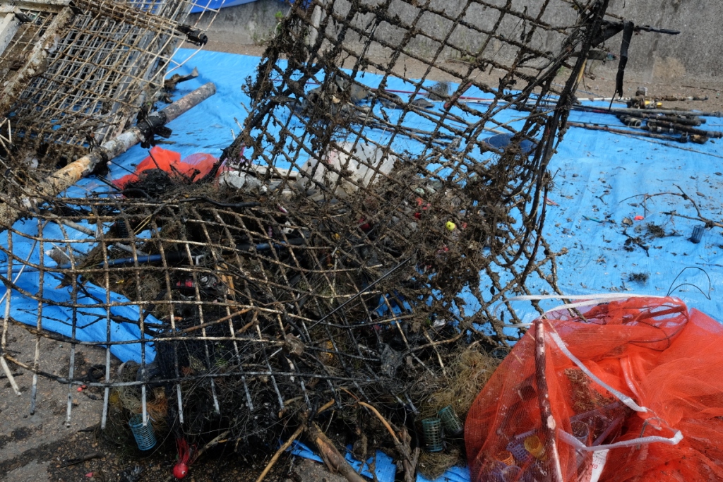 ダイバーさんのお話によると、海底は全く視界が無く、手に当たる物を引き上げる作業になったとの事で、海が澄んでいたら大変な量のゴミが上がったのではないか?とおっしゃっていました。