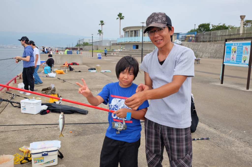 昨日に引き続き、朝からアジ・マイワシ・サバが入れ食い状態で釣れています。お盆休み最終日の日曜日、ファミリーが多く、子供さんが大喜びです。