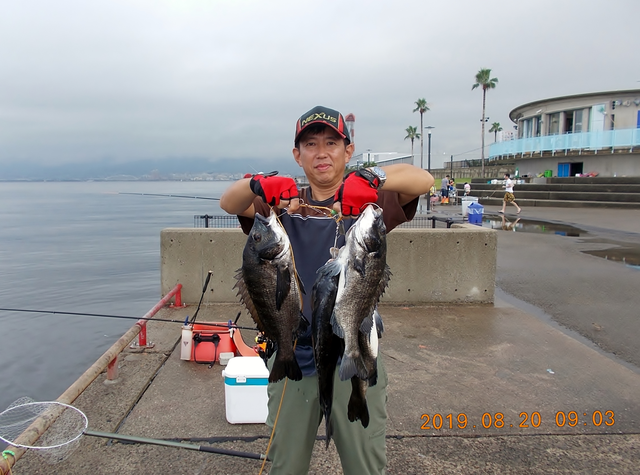 朝からサビキ釣りが絶好調です。アジ・サバが連で釣れています。ところが、6時頃から雨が降ったりやんだりで、釣り場はバタバタ状態、このまま釣れてくれれば良いのに?8時現在、まだまだアジ・サバは釣れています。中央付近でフカセ釣りの常連さんが、早くもチヌ4匹と上げられています。10時30分頃にチヌ52.0cmガ上がり、月間大物賞にエントリーです。