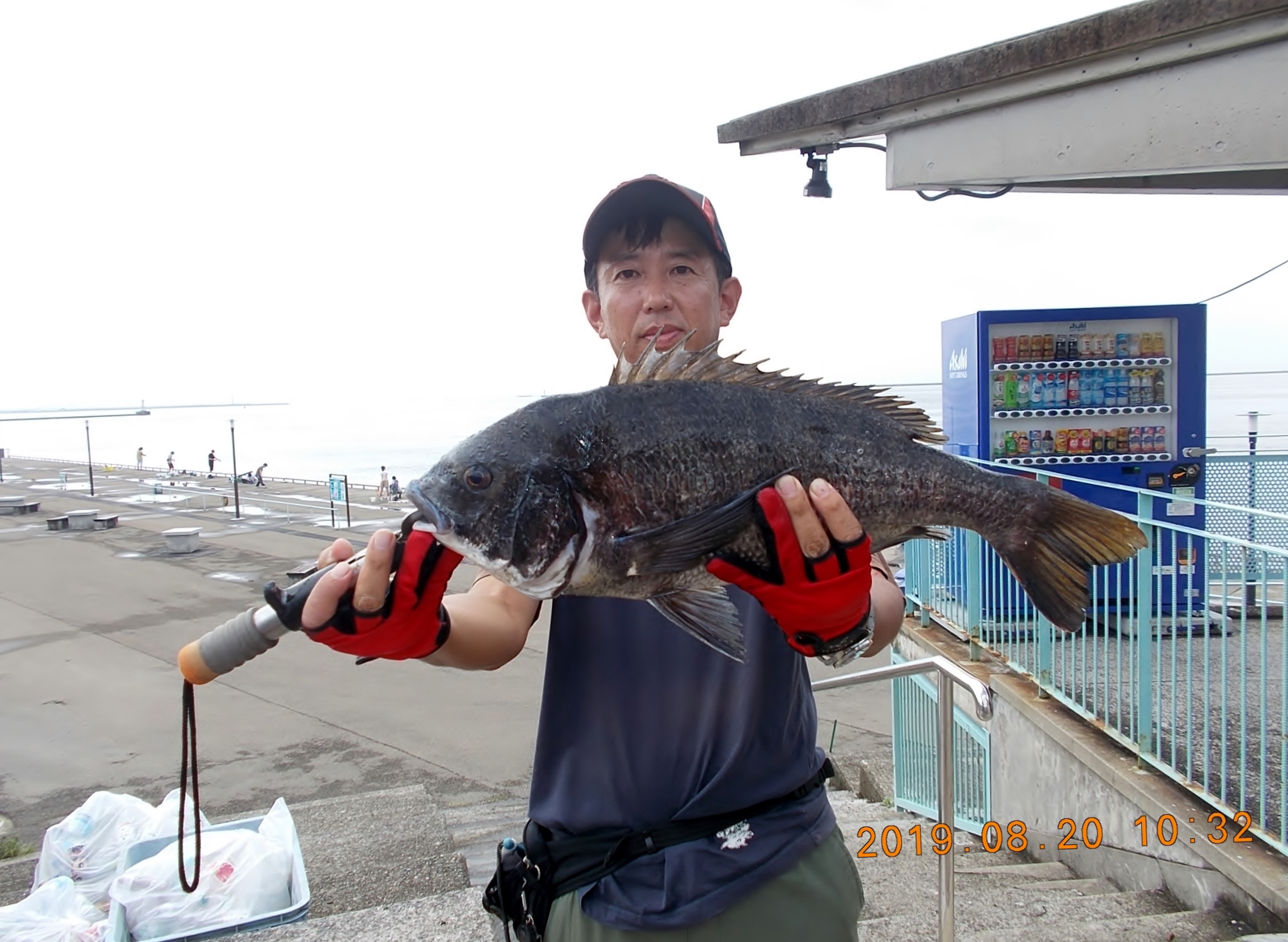 14時頃にお越しの金村様ですが、2時間ほどでチヌを5匹ゲットされ、その中でも月間大物賞チヌの部54.5㎝をエントリーされました。紀州釣りで餌オキアミとコーンだそうです。
