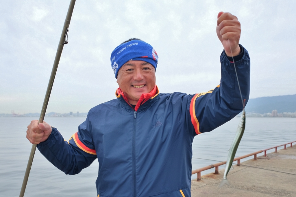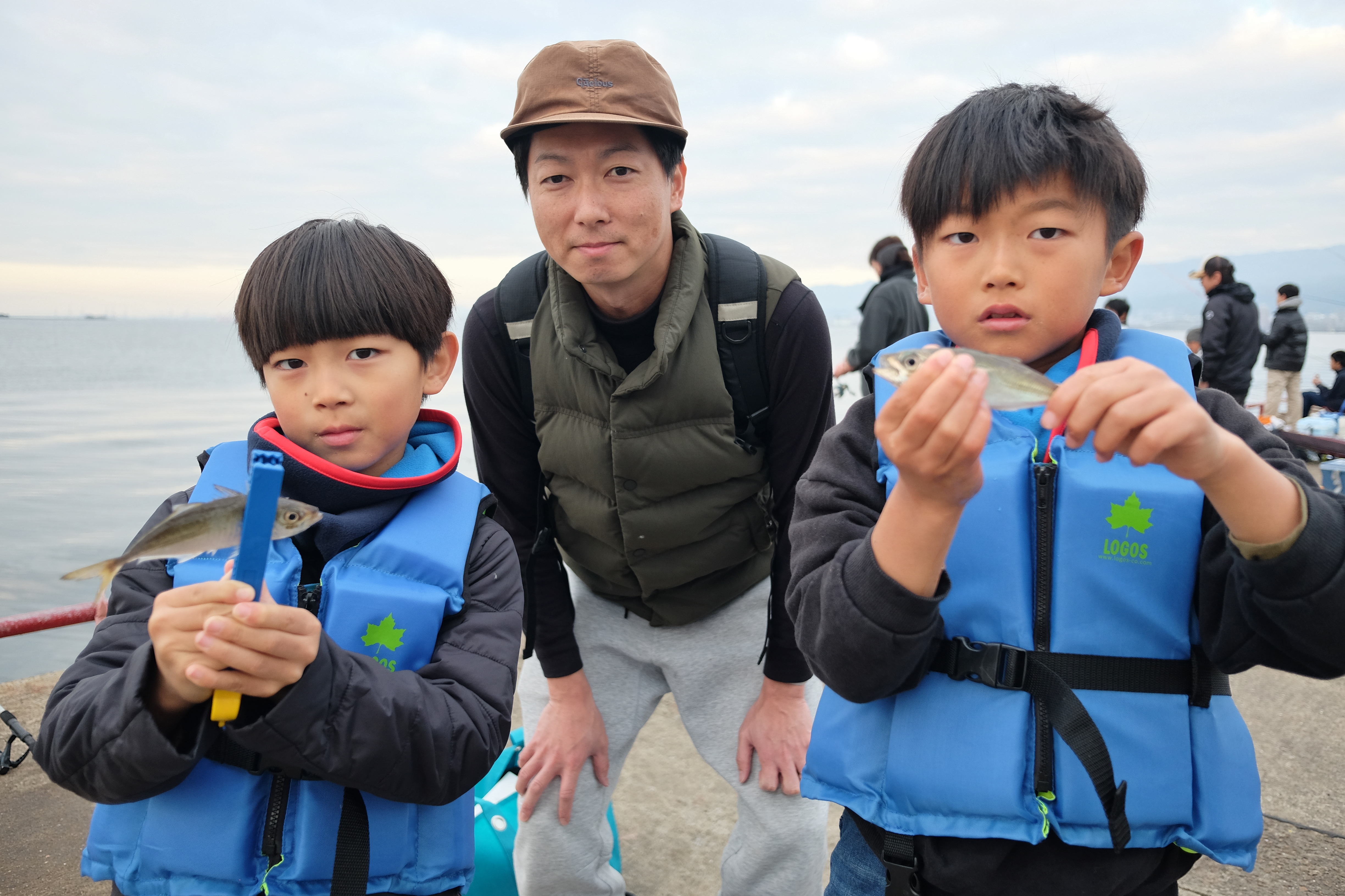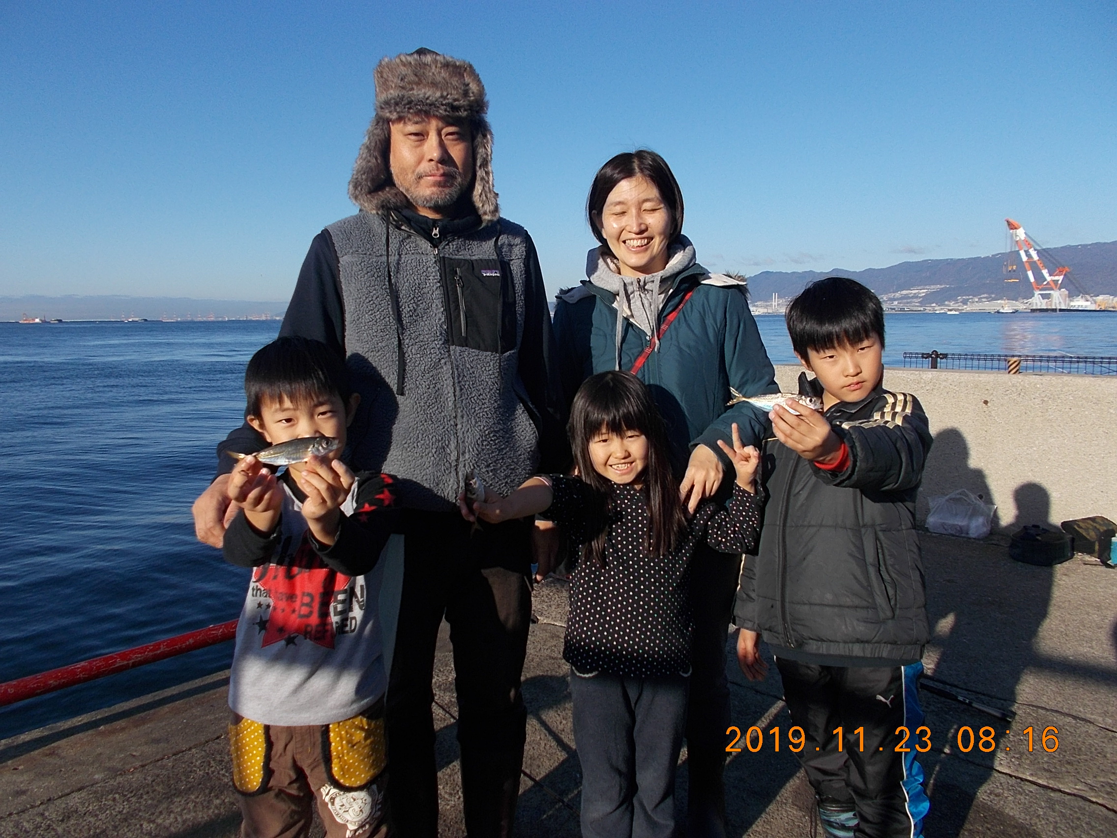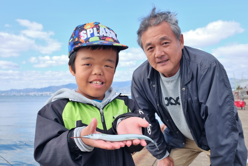 朝、残念ながらアジの釣果は全くと言っていいほど反応なし…、サビキ釣りで1匹、紀州釣りで1匹という結果。この冷たい北風で真冬の海そのものの様相になってしまいました。サヨリの釣果も1匹との事です。