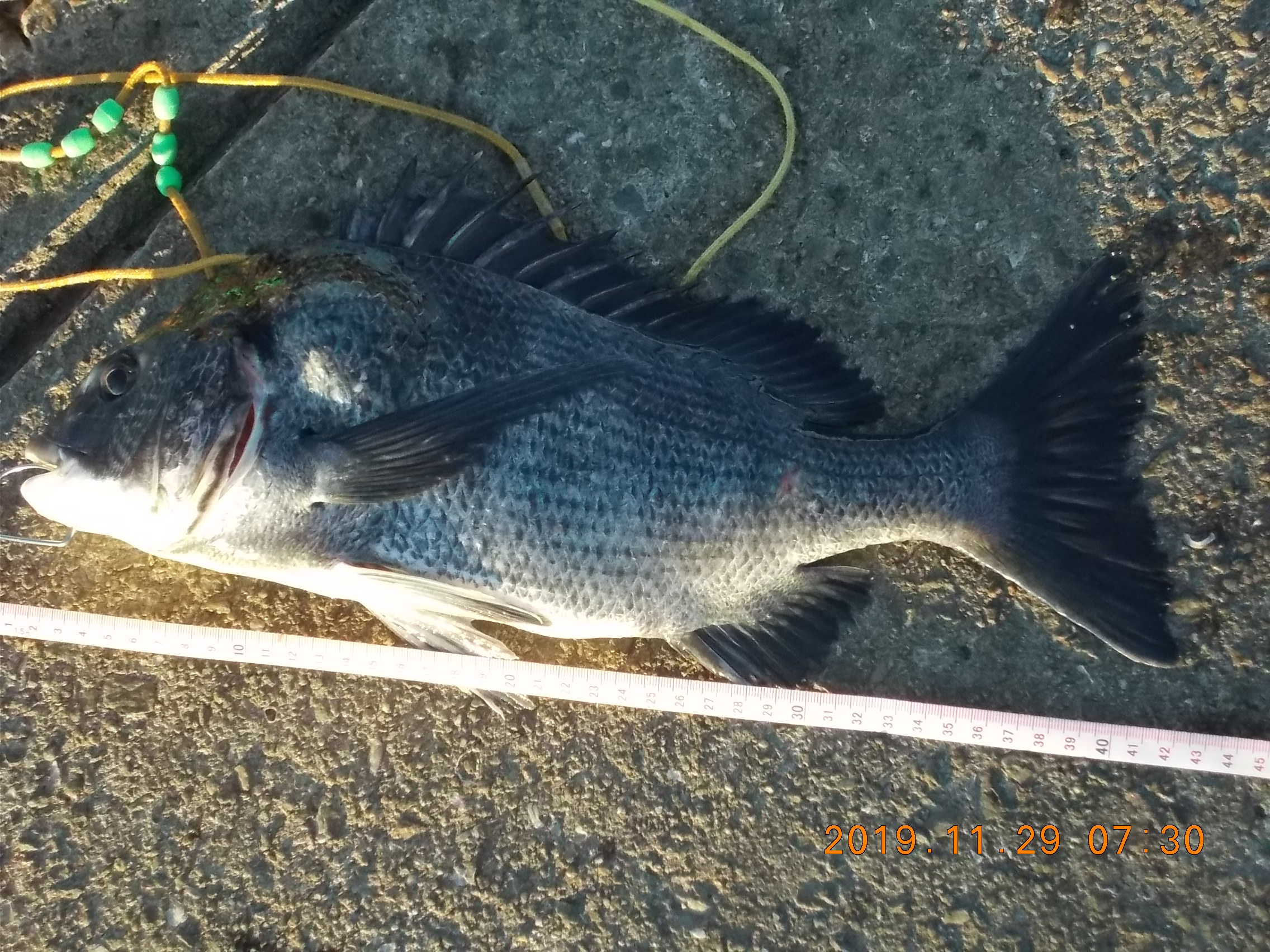 昼頃に来られた上林様2時間程で45cmのチヌを2匹ゲットされています。ズボ釣りで餌オキアミとコーンでした。