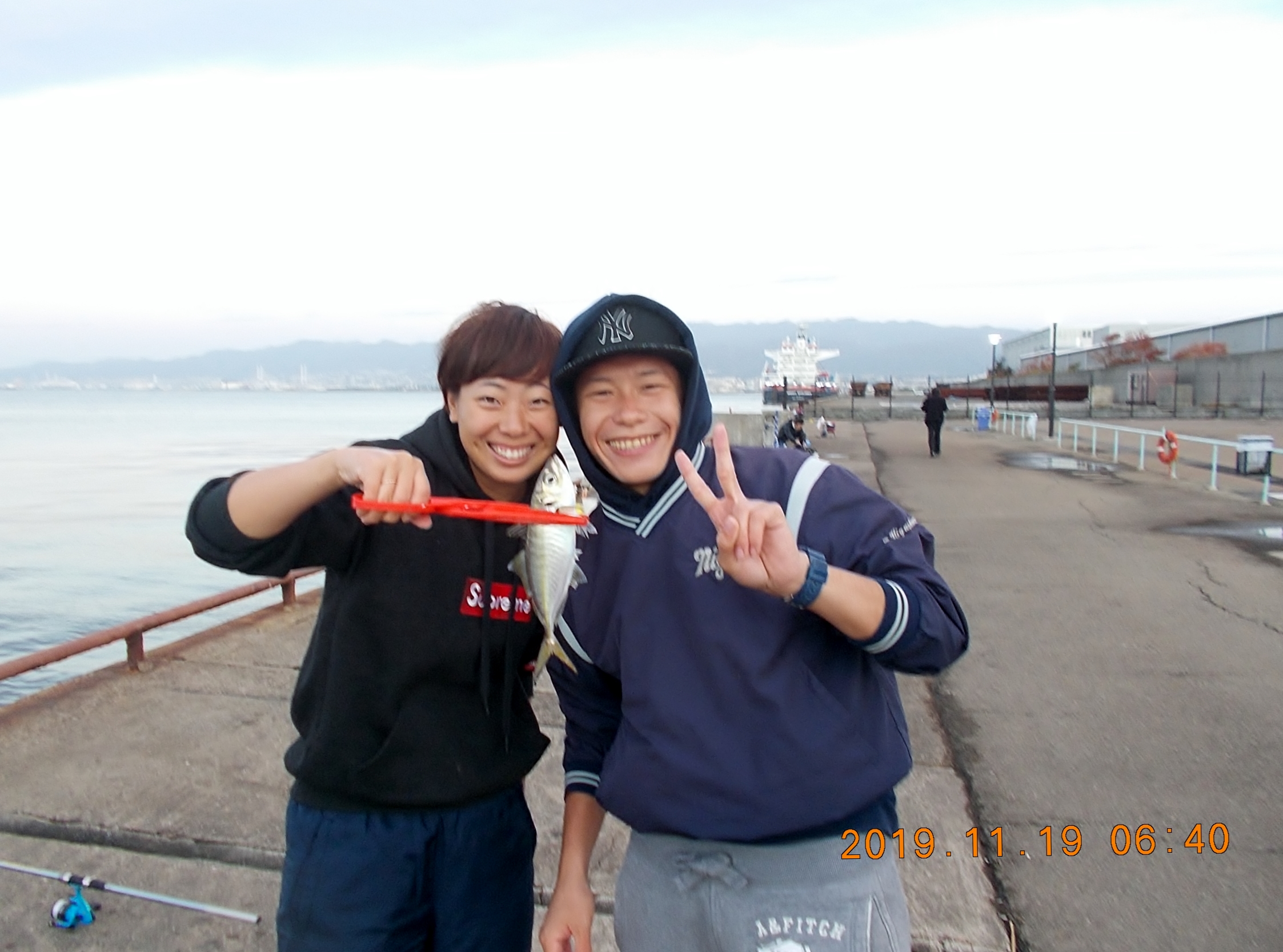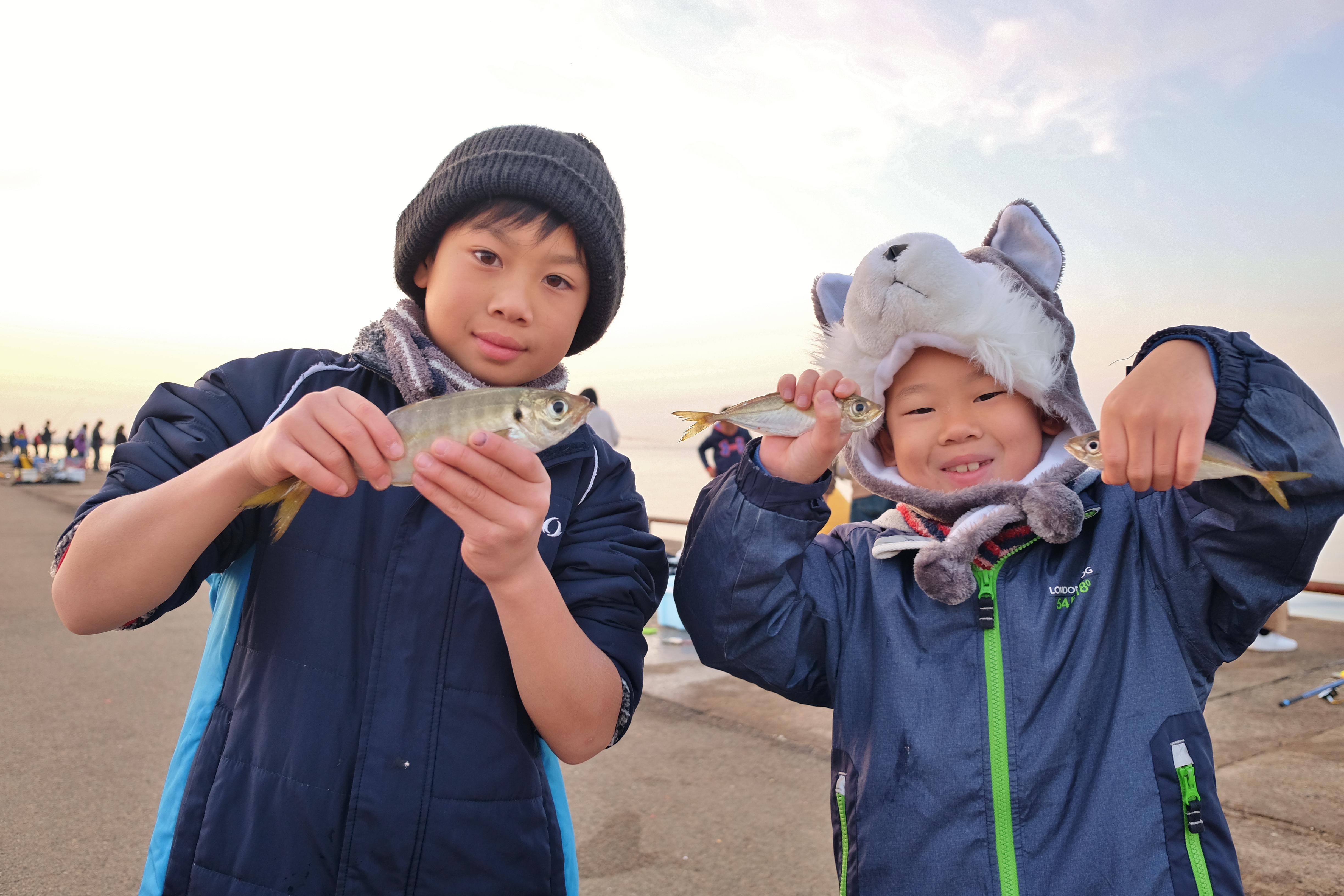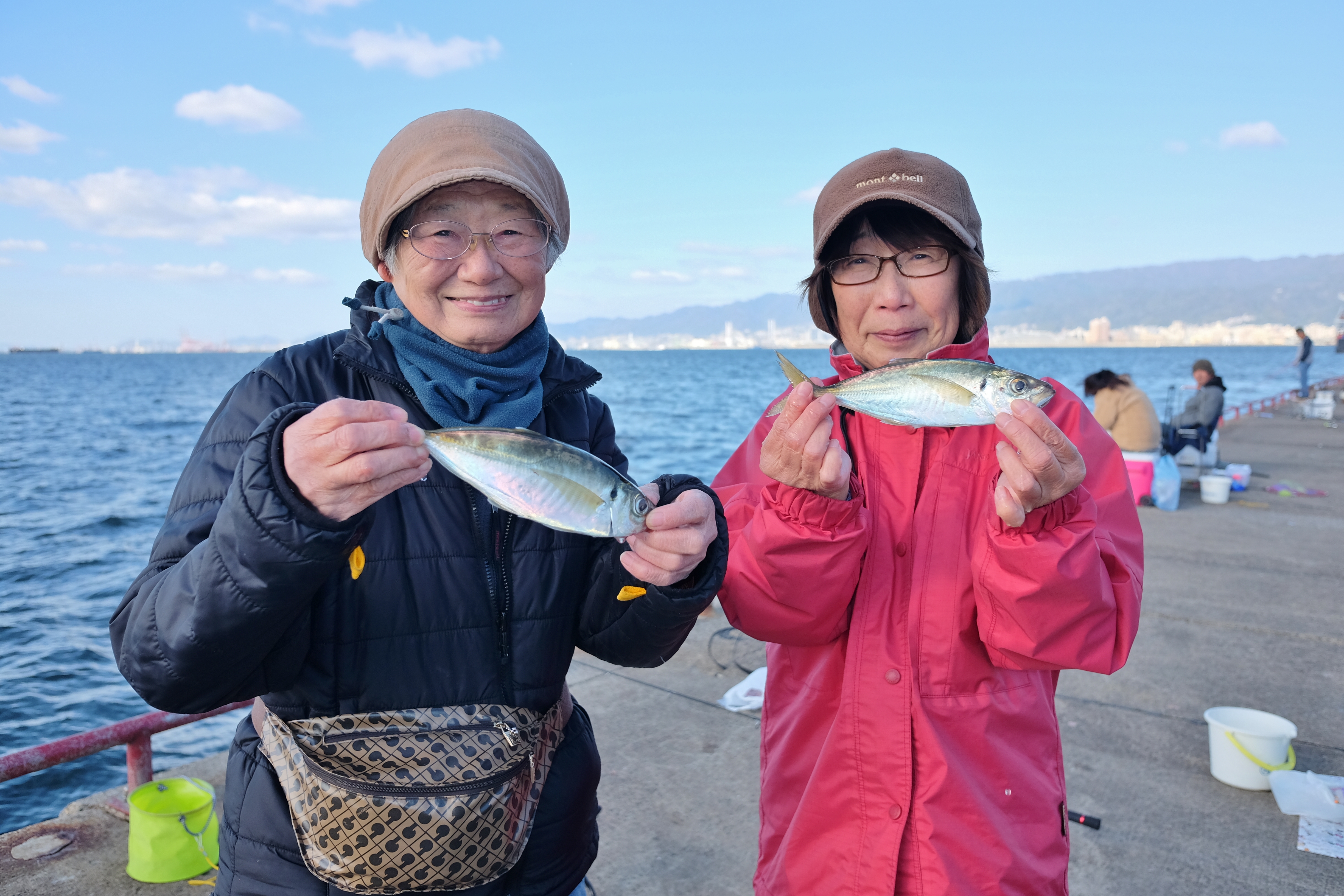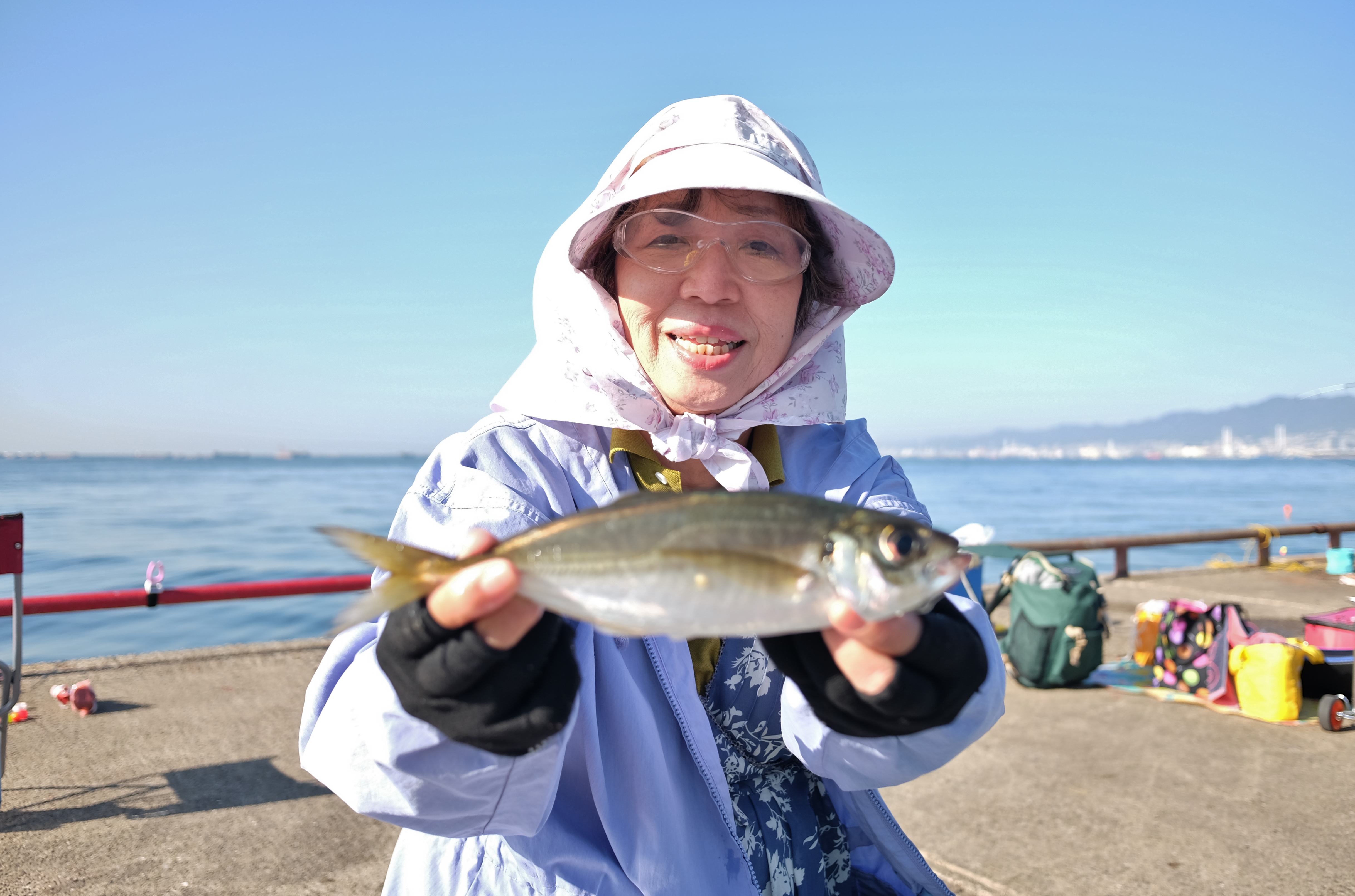 今日はアジの釣果よりも先にカタクチイワシが釣れ出し、アジが釣れる底まで仕掛けを落としたいけれどカタクチが邪魔をし、アジの釣果が昨日より少ない状況になってしまいました。朝と夕刻のアジの時合いには、しっかり餌をカゴに入れ底を狙って下さいね。