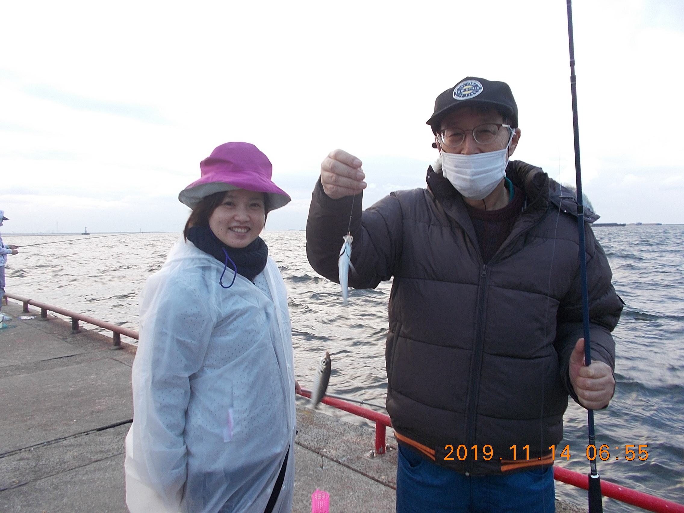 14時からの釣果は、波が高く風がきついので水しぶきを浴びながらサビキつりをなさっています。