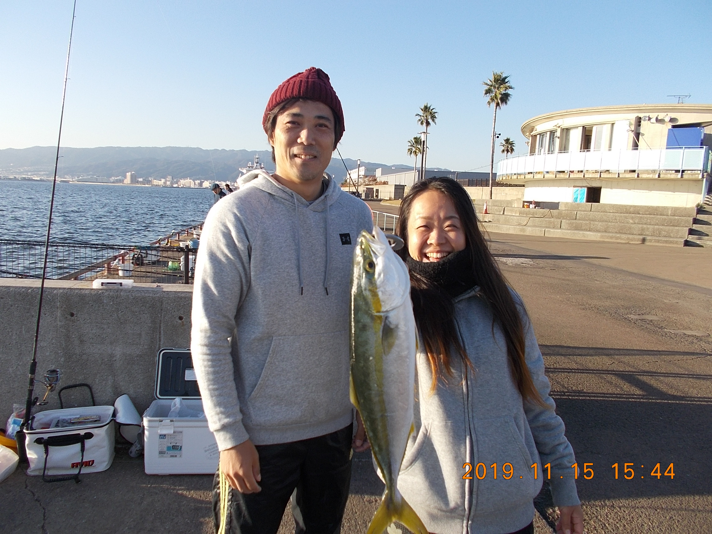 お昼以降は16時頃まで何も釣れていませんでしたが、16時30分頃にアジ、カタクチイワシ等が釣れ出しましたが、東側の方はあまり釣果は出ていません、管理棟の前あたりが良さそうです。