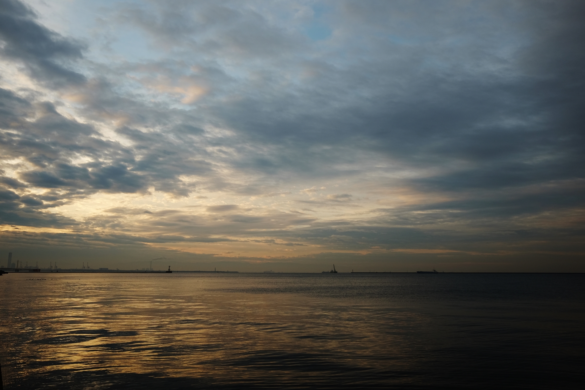 夜の間降っていた雨も朝には上がり、穏かな鳴尾浜です。
