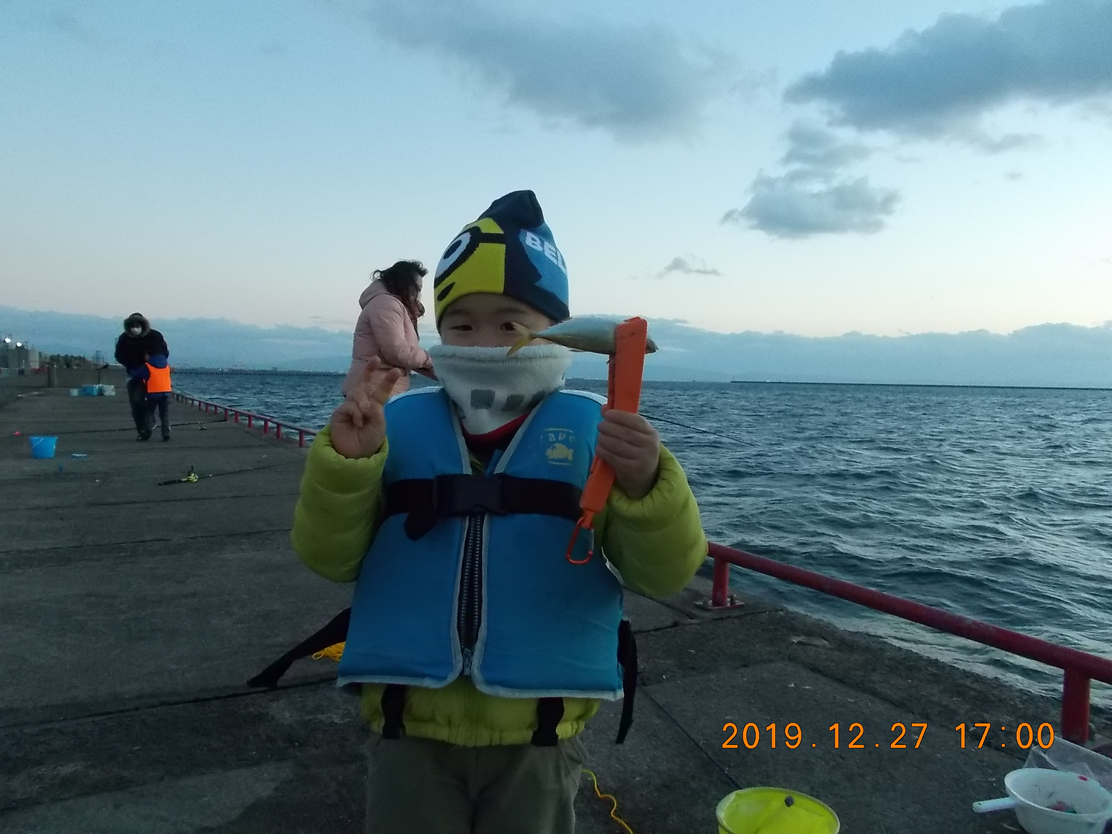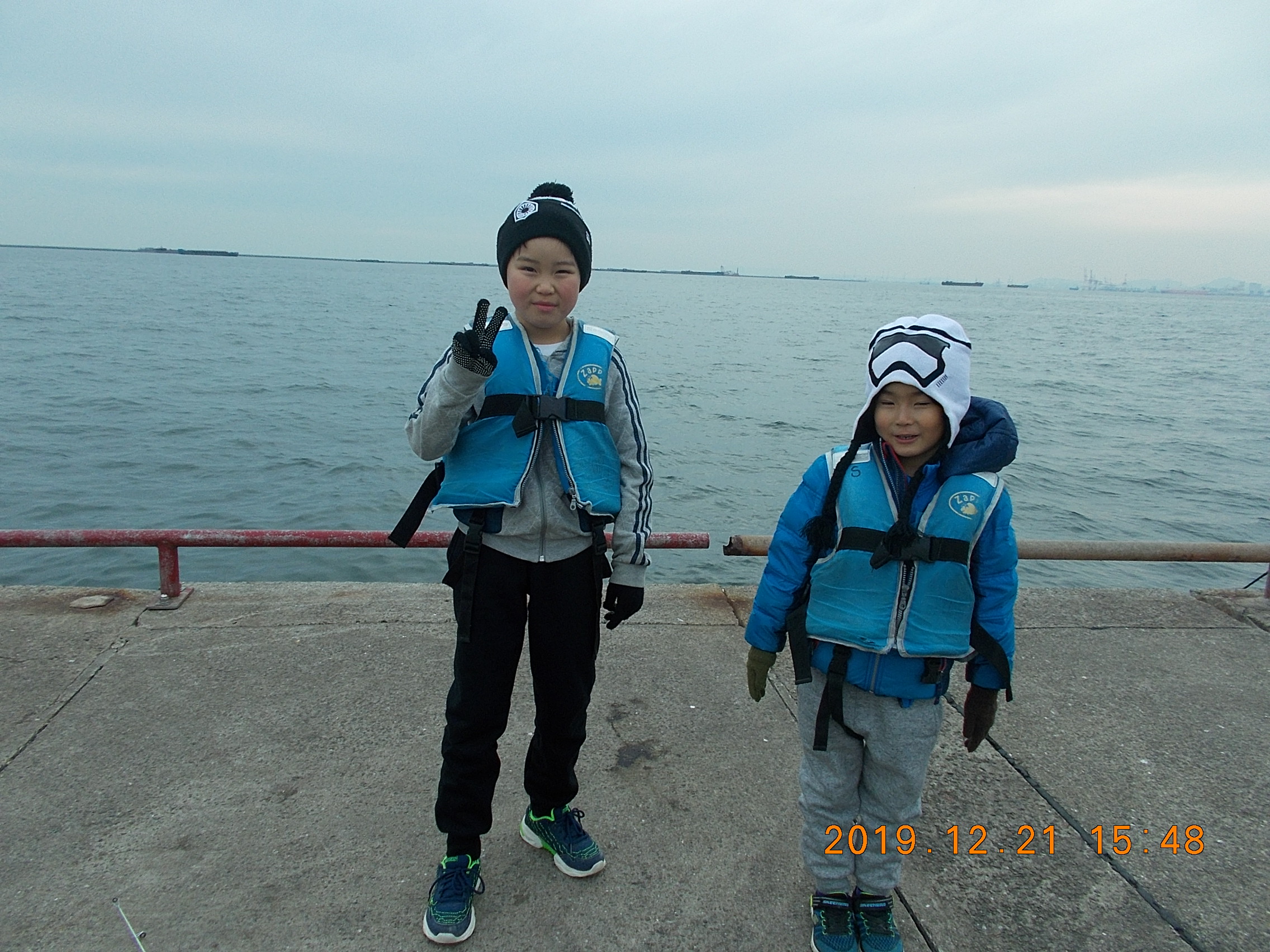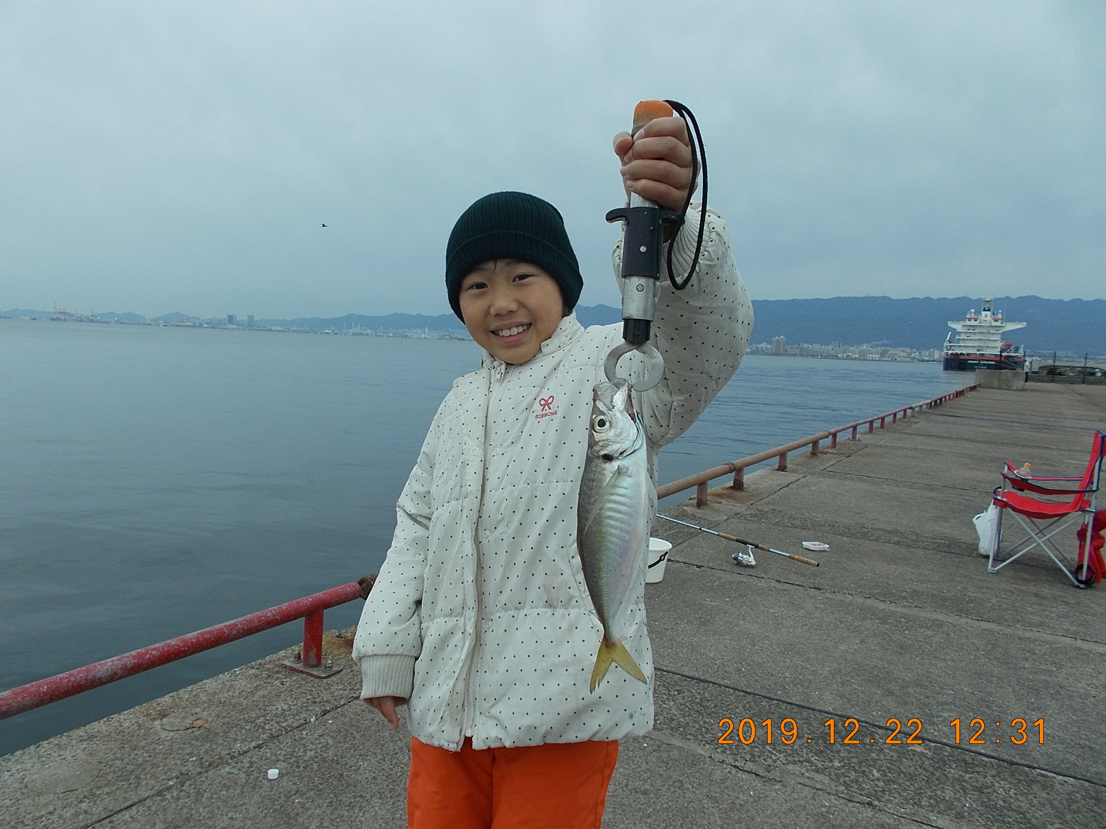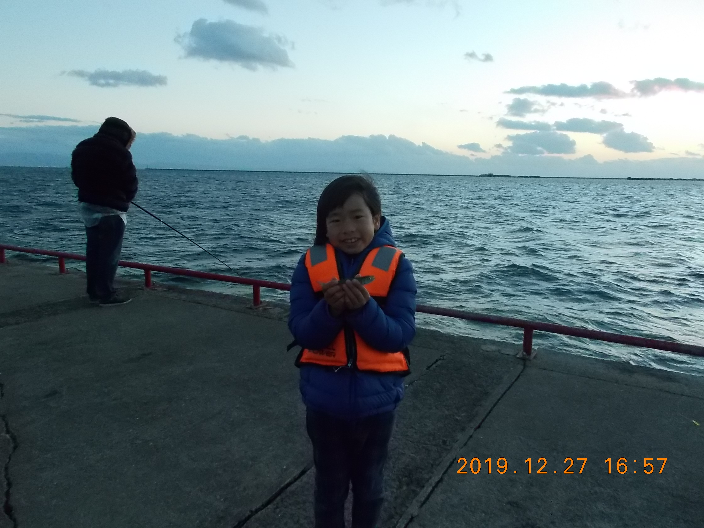 午後3時現在、西の風0.5m、うす曇り、海面おだやか、気温12.0℃。今日から正月休暇に入ったのかご家族連れが多く場内賑わっています。午後の釣果は小アジ少々など。