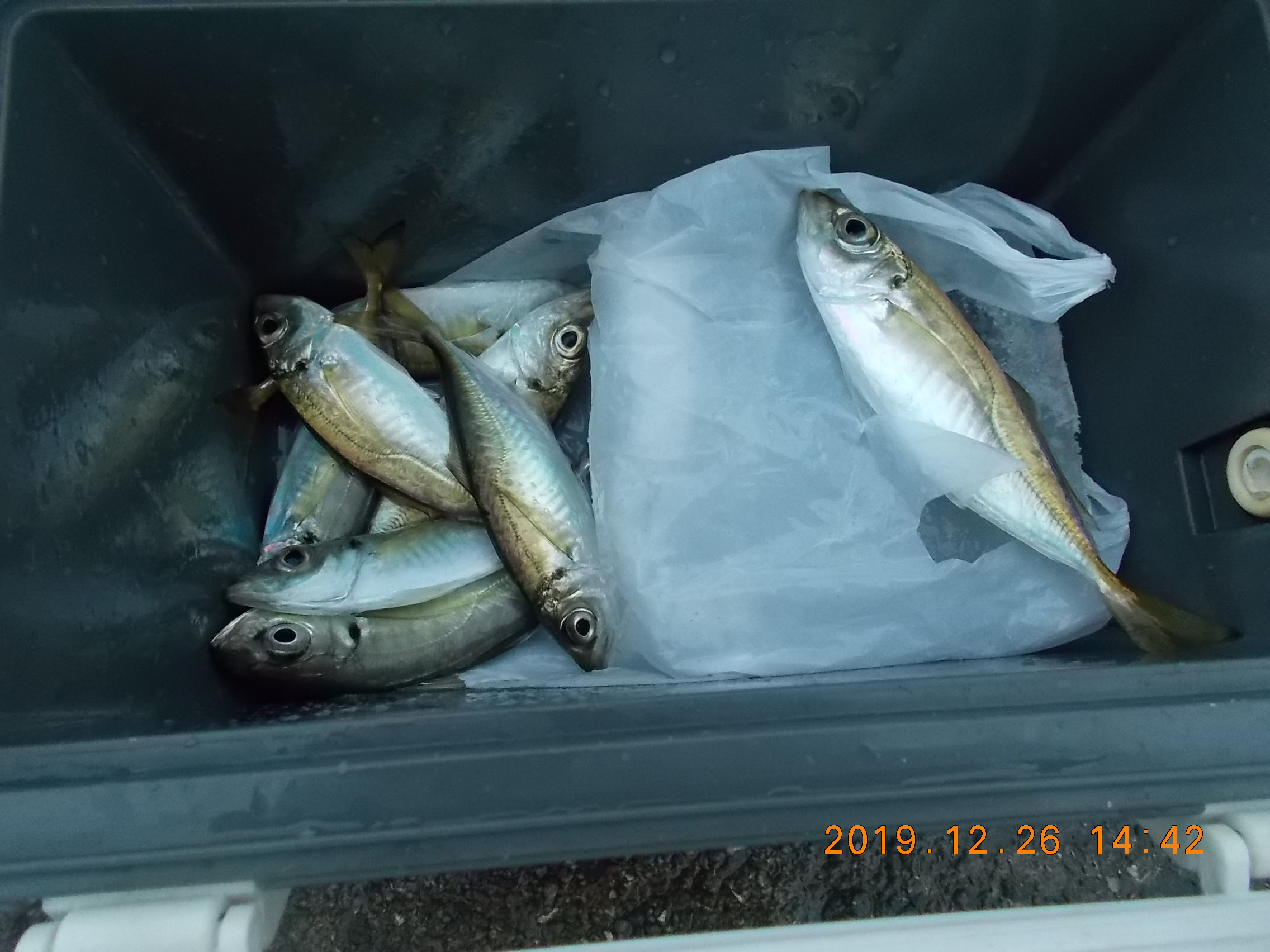 日の出が徐々に遅くなり明日22日が冬至となります。開園時にやっとライトが要らない程の明るさ。早朝のアジの時合いが徐々に遅くなって来ているようで、開園から30分間の短い時間でしたがアジの釣果がありました。