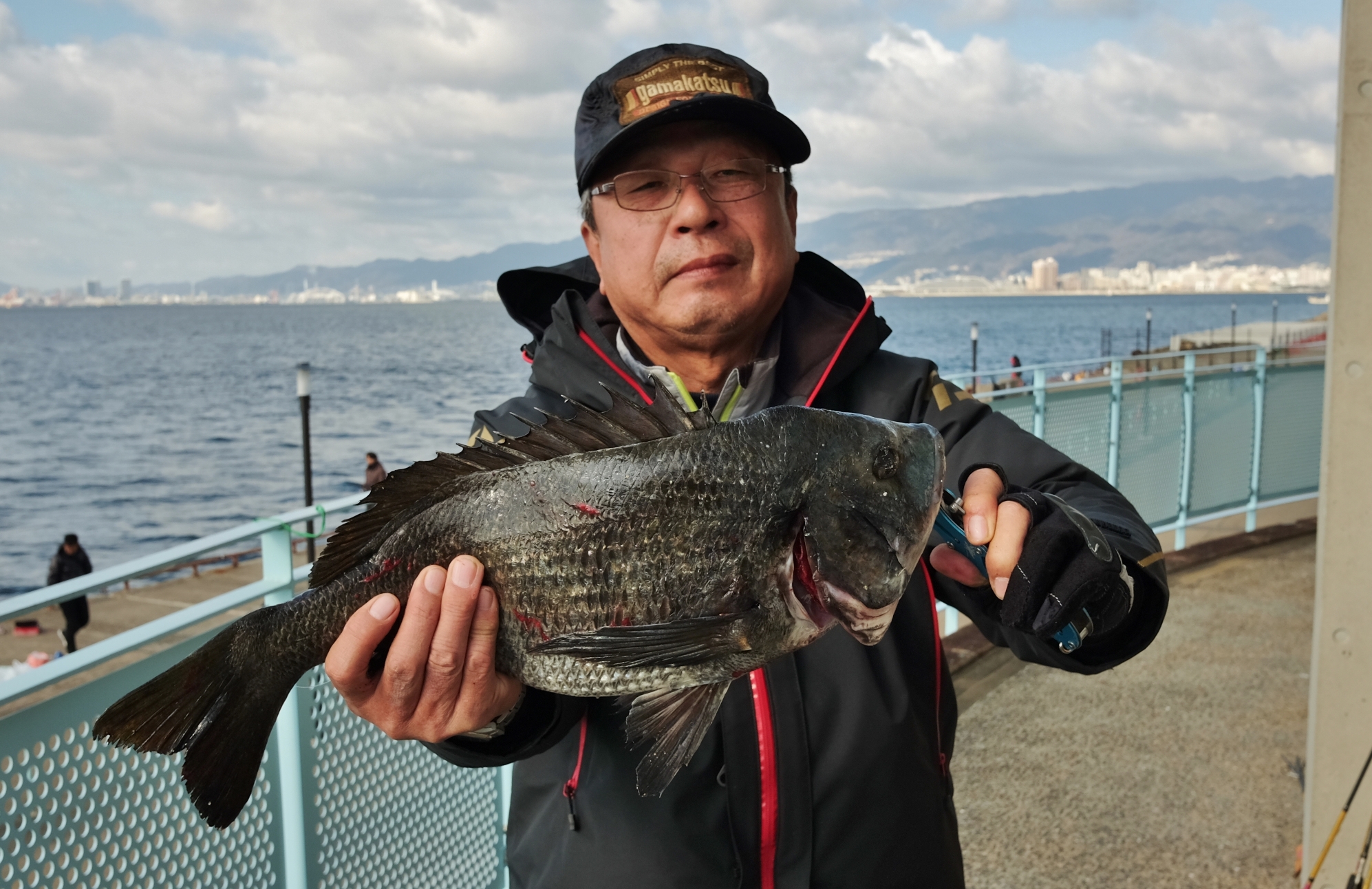 フカセ釣りは、早朝開園から30分程経った頃にキビレが上がり、その後すぐにチヌ2匹を追加されましたが、以降アタリが無くなってしまったそうです。他の方も早朝にアタリはあったけれど釣果に繋がらず。11時に47㎝のチヌの釣果が中央付近でありましたが、またアタリが無くなってしまったそうです。
