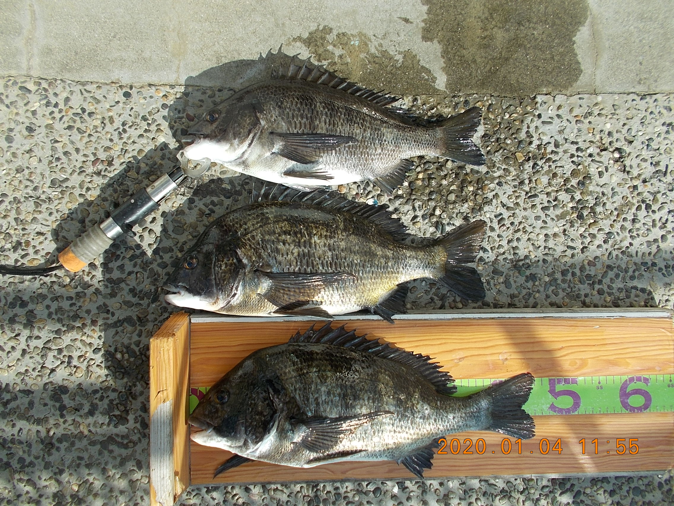 午前中の釣果はフカセ釣りでチヌ3匹、キビレ1匹、シラサのズボ釣りでハネ1匹の釣果。