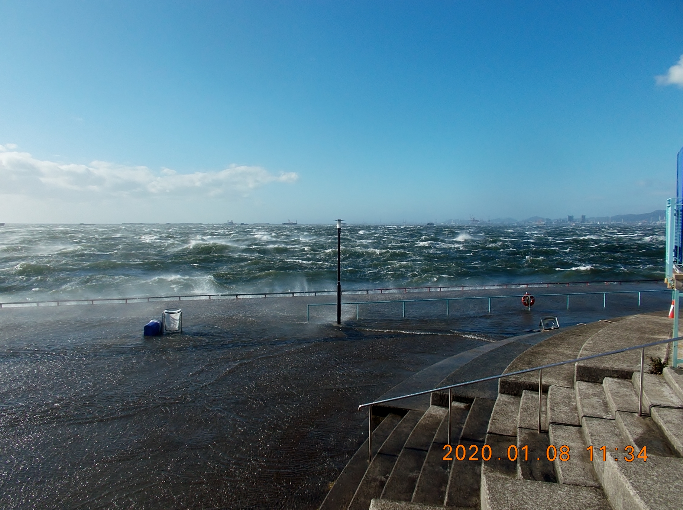 現在、阪神・淡路に暴風・波浪警報が発令されていますので、海づり広場は臨時に休場をしています。状況が回復次第開場致します。