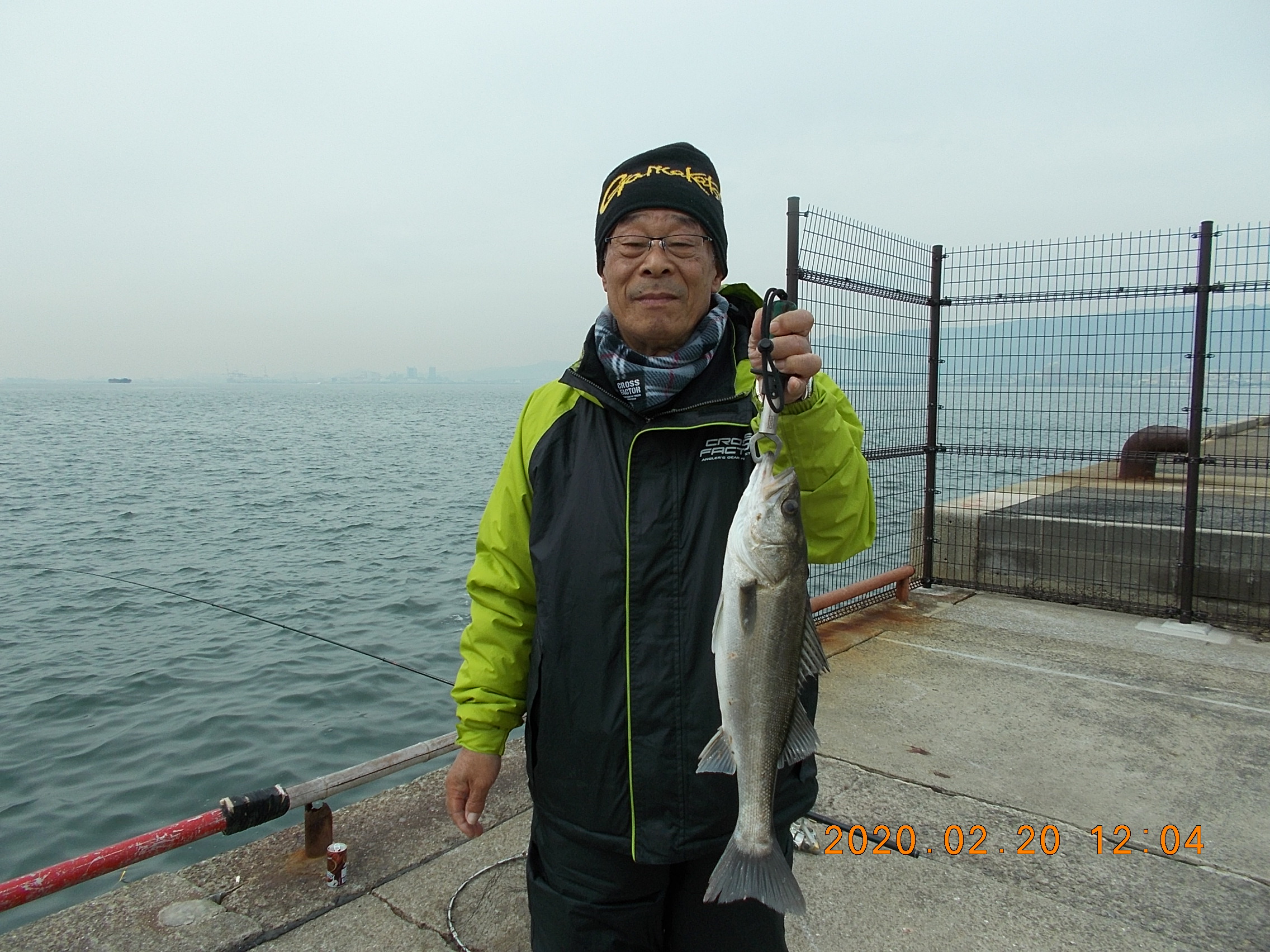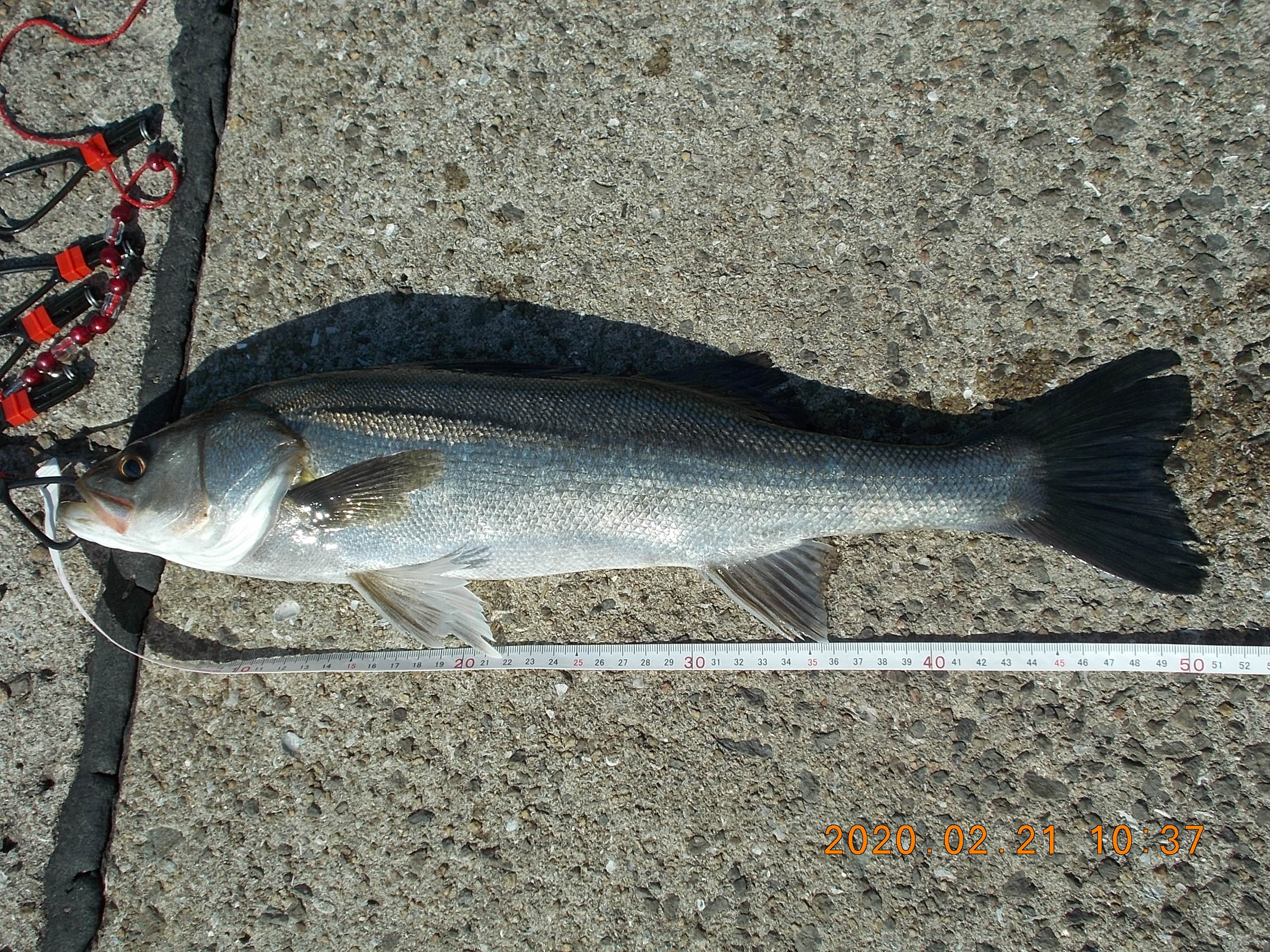 15時20分頃に大阪の豊川様スズキ60cmの釣果。餌シラサズボ釣り棚は2ヒロ半だったそうです。