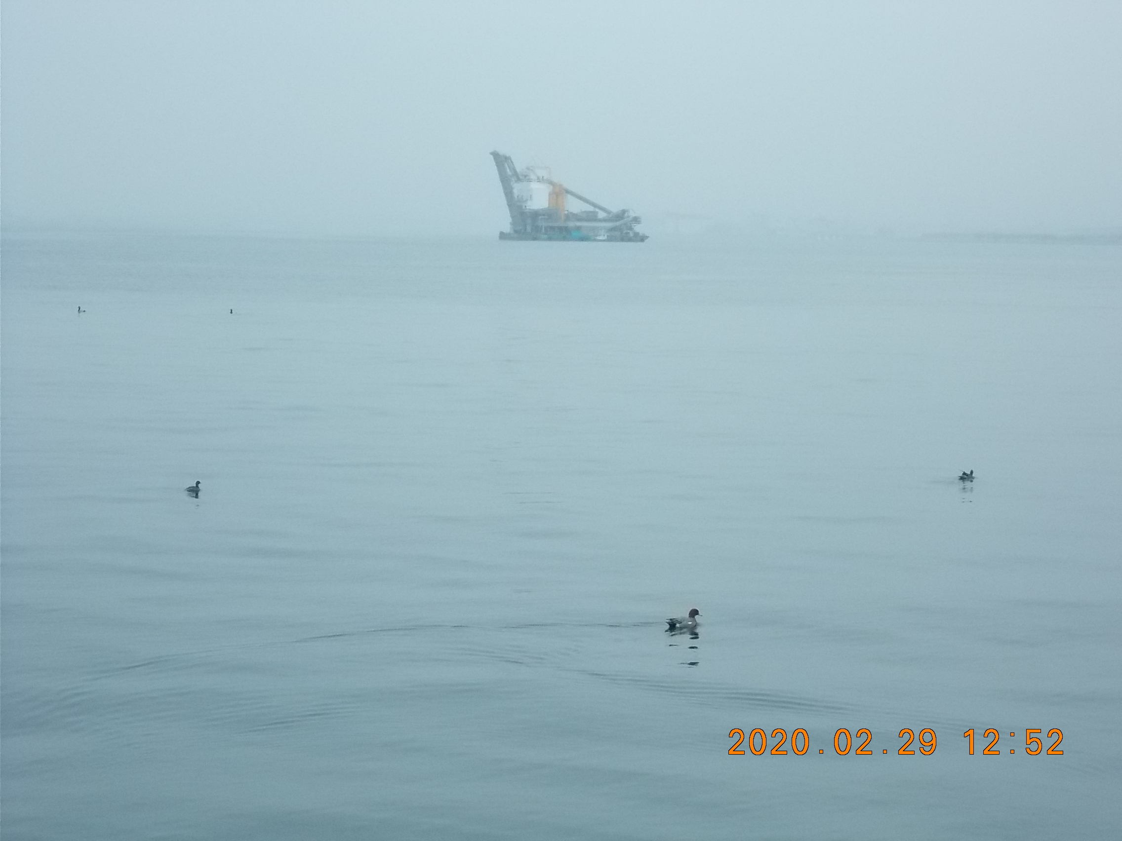 開園時、波風共に静か、曇り空でどんよりとした鳴尾浜。