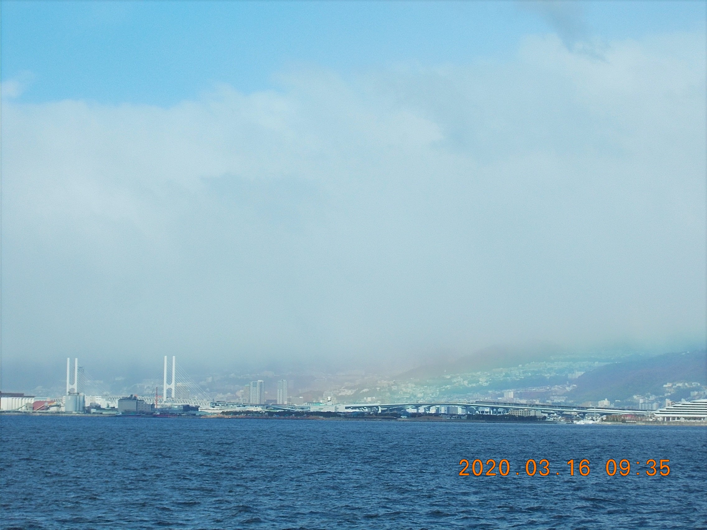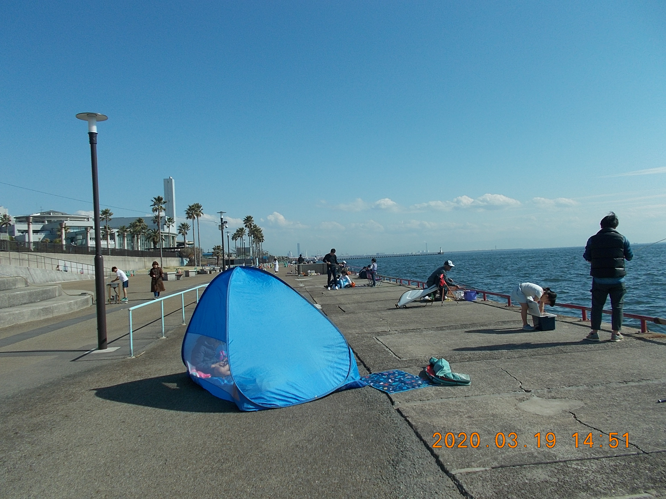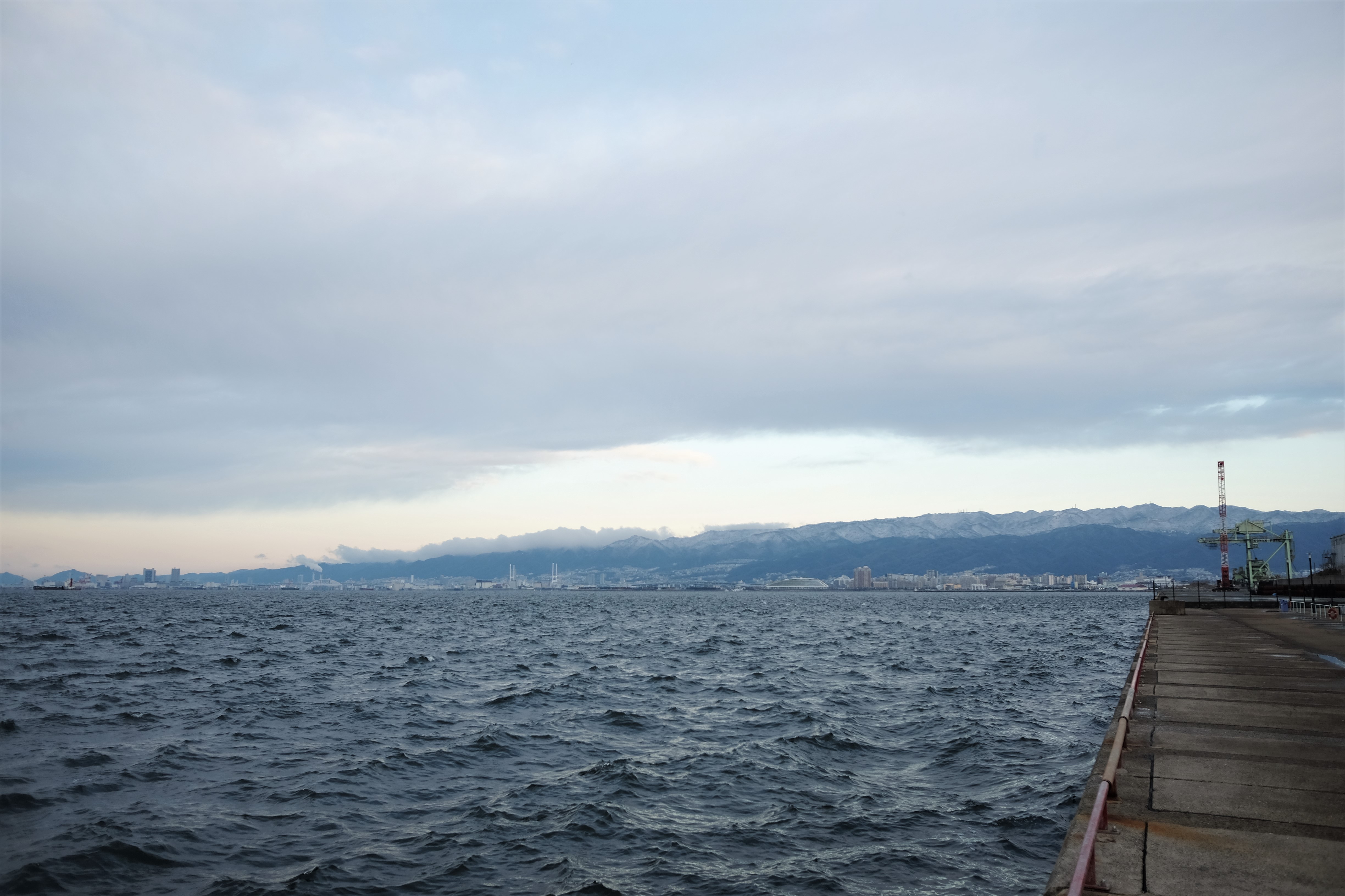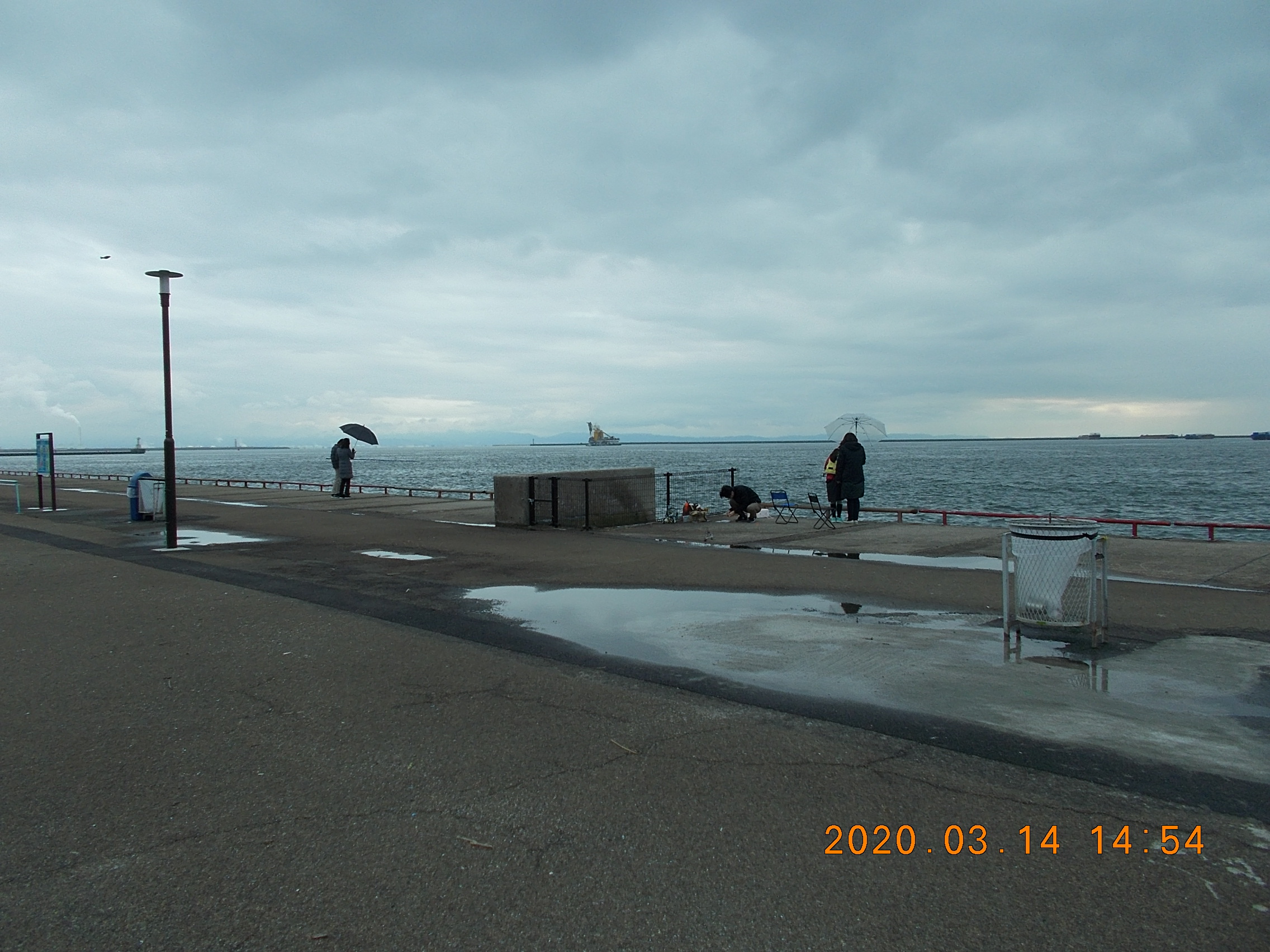 この冬の間、六甲山が雪化粧をしているのをあまり見なかったと思うのですが、今朝六甲は薄く山肌にまとっています。その六甲方面から吹き降ろす冷たい風のため大変寒く感じます。釣行予定の方はしっかりとした防寒着を着込んでください。