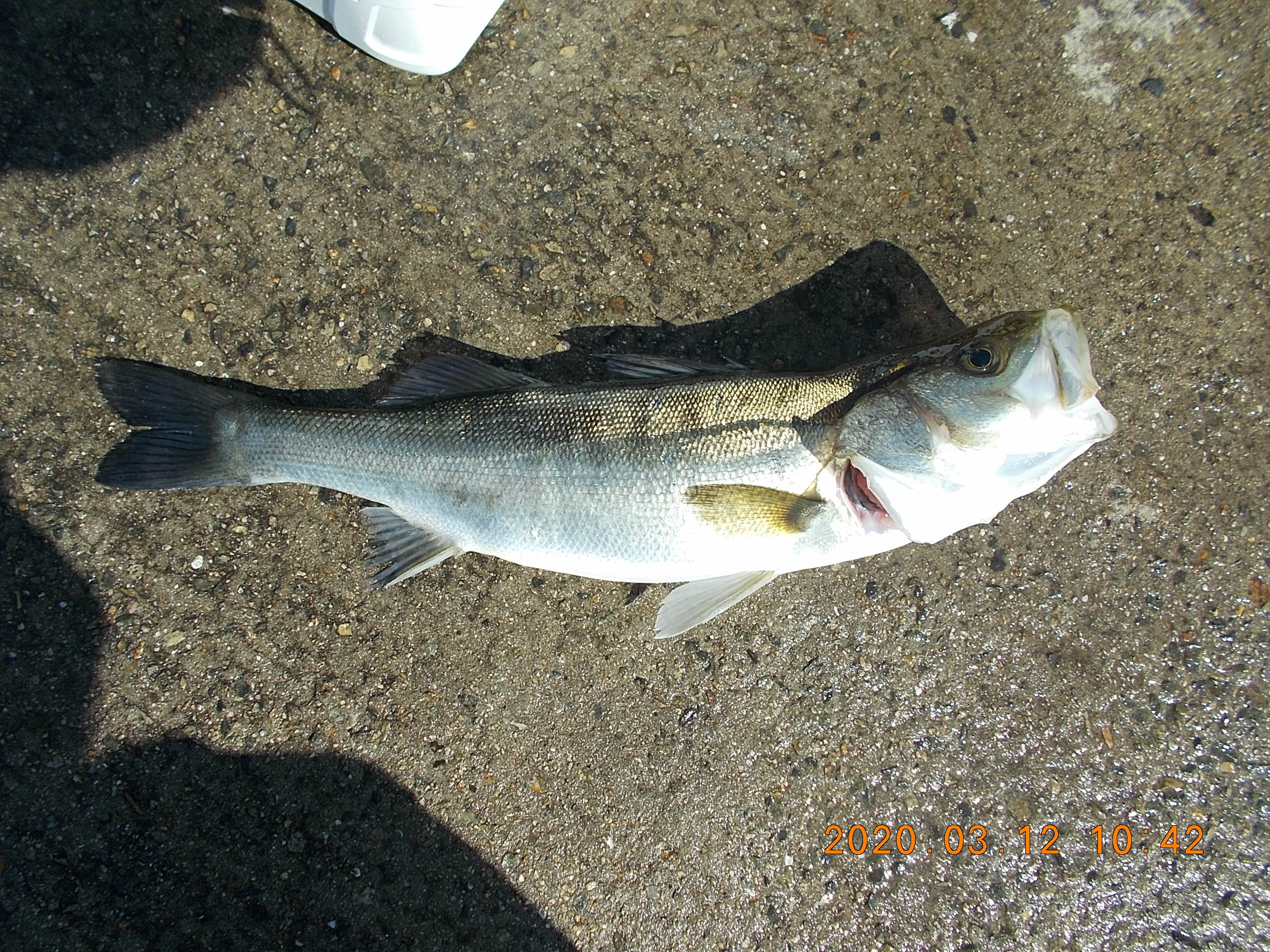 午後3時現在、北北西の風1-3m、波が右から左へ川のように流れています。冬に逆戻りしたかのような天候、小雨がまじって気温8℃。午後も来場者ほとんどなく本日釣果なしかと思われましたが夜に西端でセイゴが上がりました。