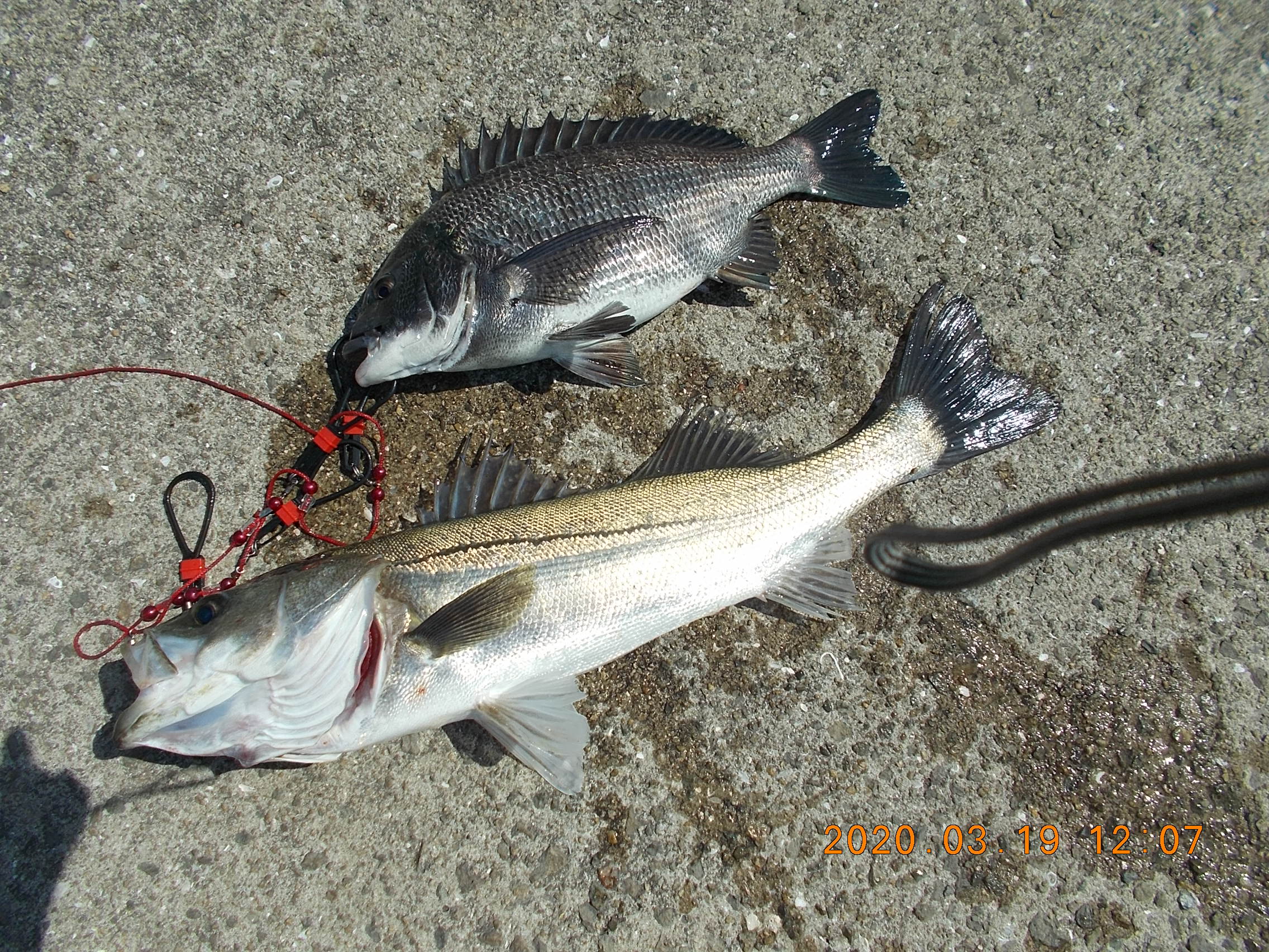 開園間もなく一投目でまずハネ40㎝の釣果、撒き餌を撒く前だったようで幸先の良いスタート。その後ハネとチヌを一匹ずつ追加されていました。
