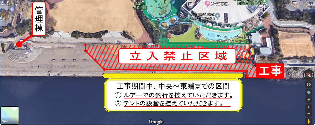 チヌやハネを狙い、約10人の方がエビ撒き釣りやフカセ釣りをチャレンジされ、午前中はフカセ釣りにてチヌの1匹のみとなっています。(正午の水温は11.8℃ありました。)