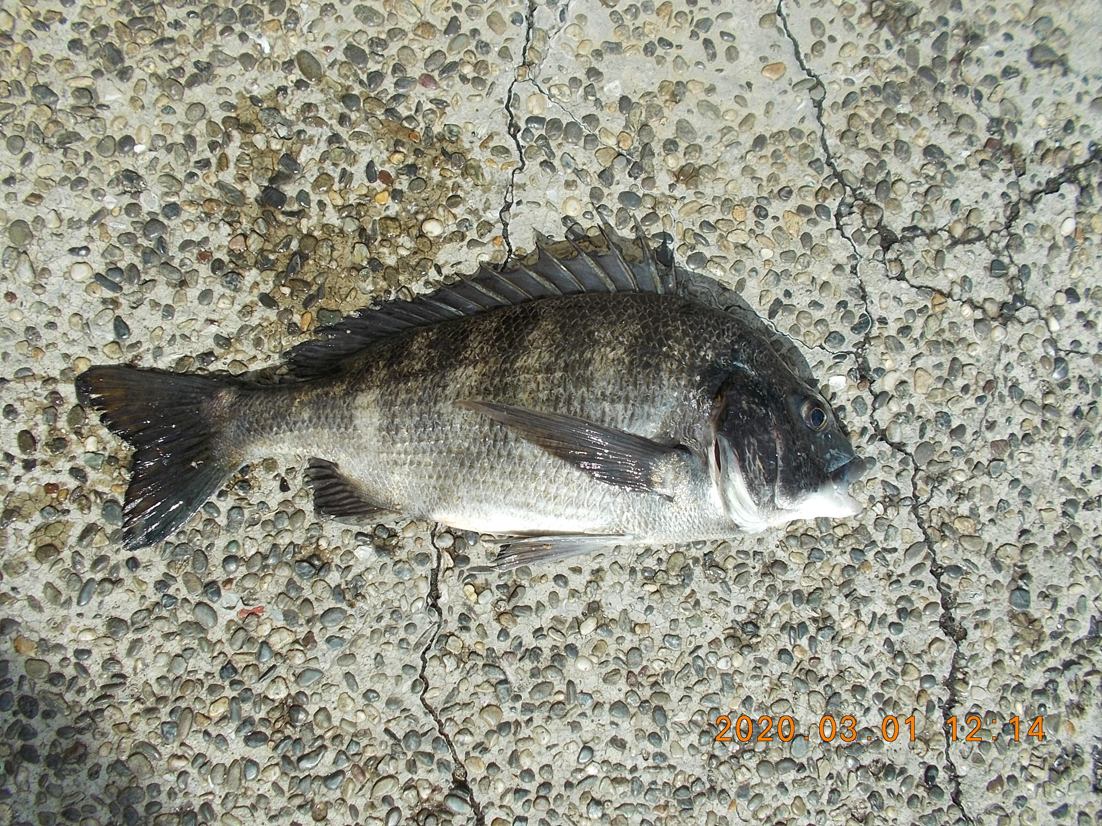 14時30分頃に本日2匹めのチヌが釣れました43.5cmで落とし込み2ヒロ餌はカニのワームだそうです、3月からチヌ、ハネのダービーが始まりますのでエントリーしていただきました。